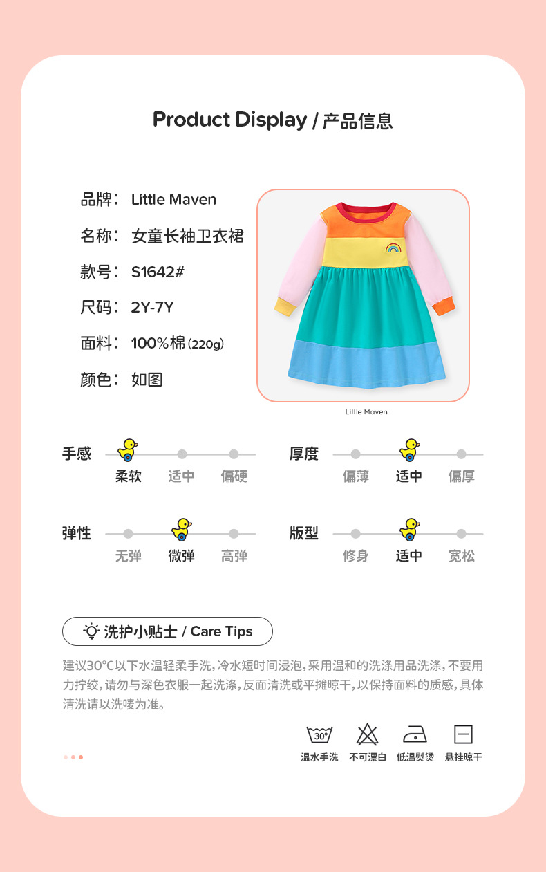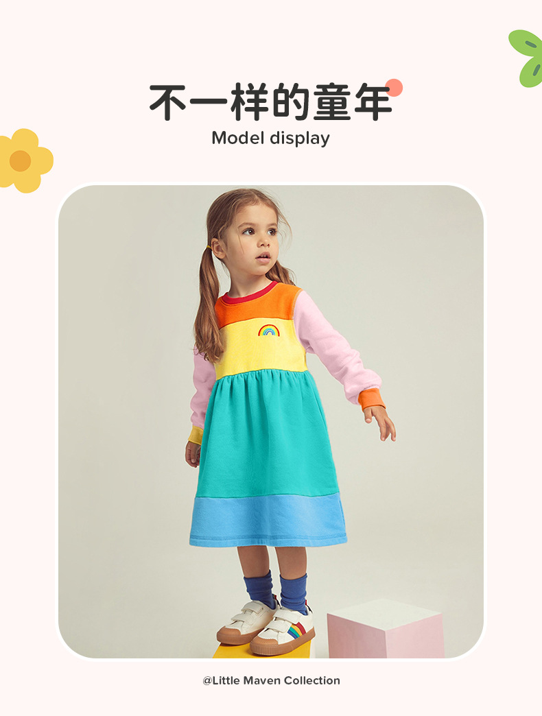 S1642DS-Little maven autumn pure cotton children's long-sleeved rainbow dress
