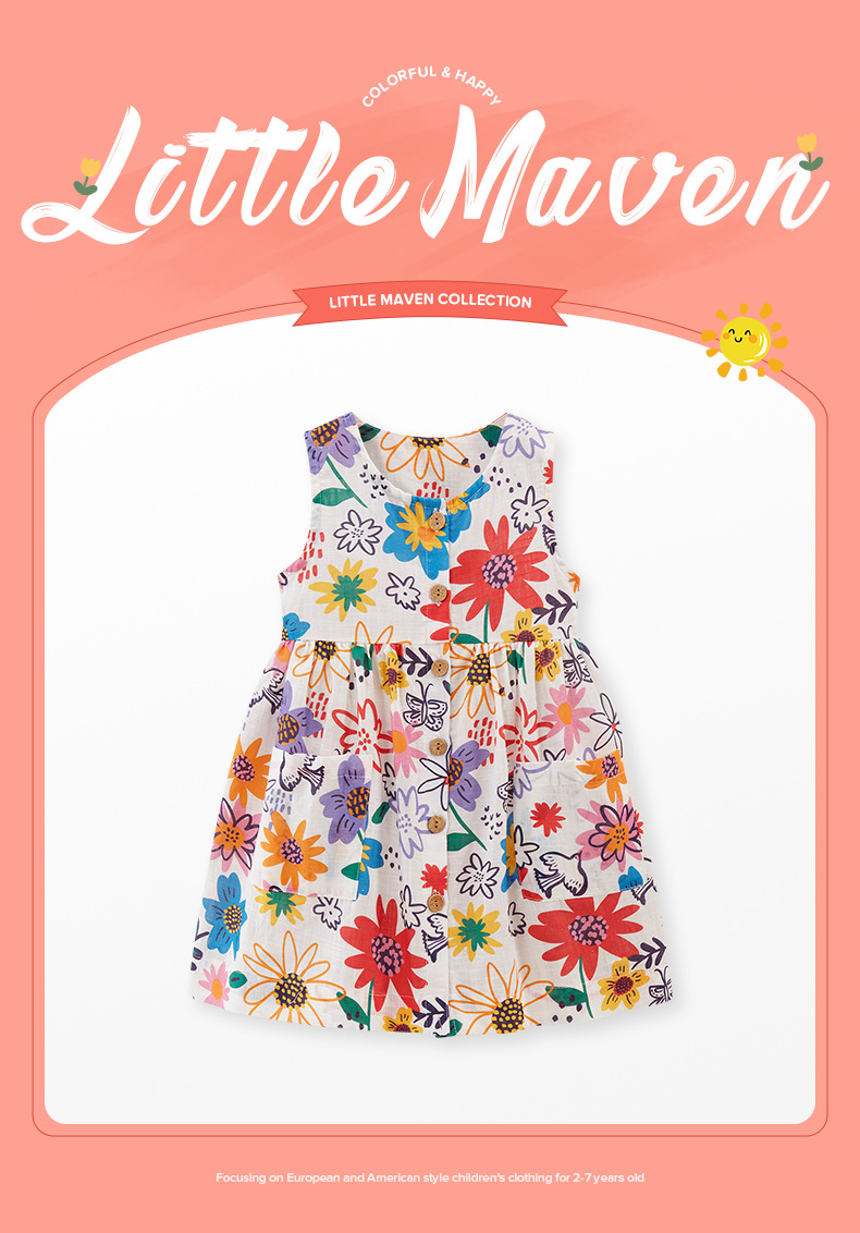 S1830DS-Summer sleeveless floral cute princess tassel dress