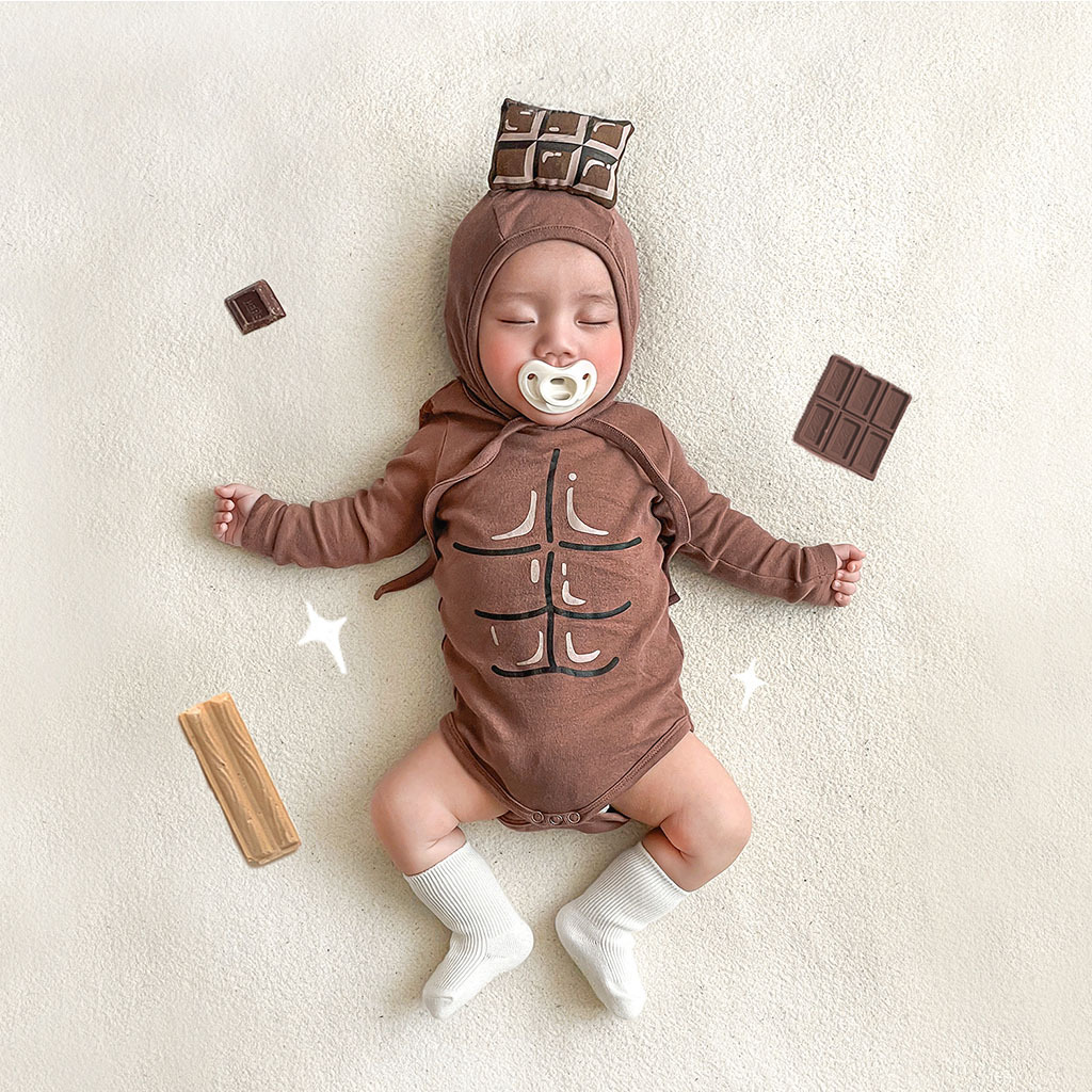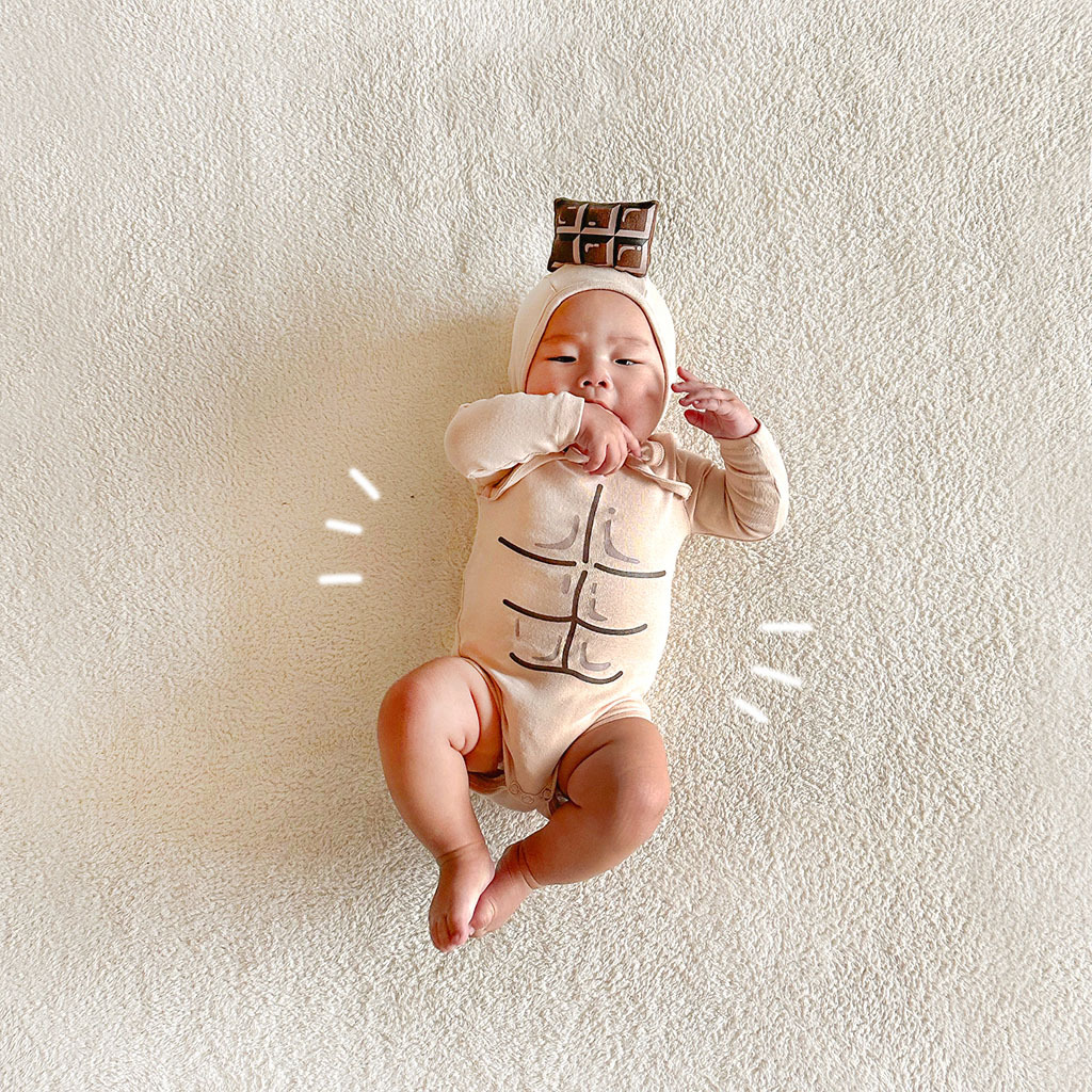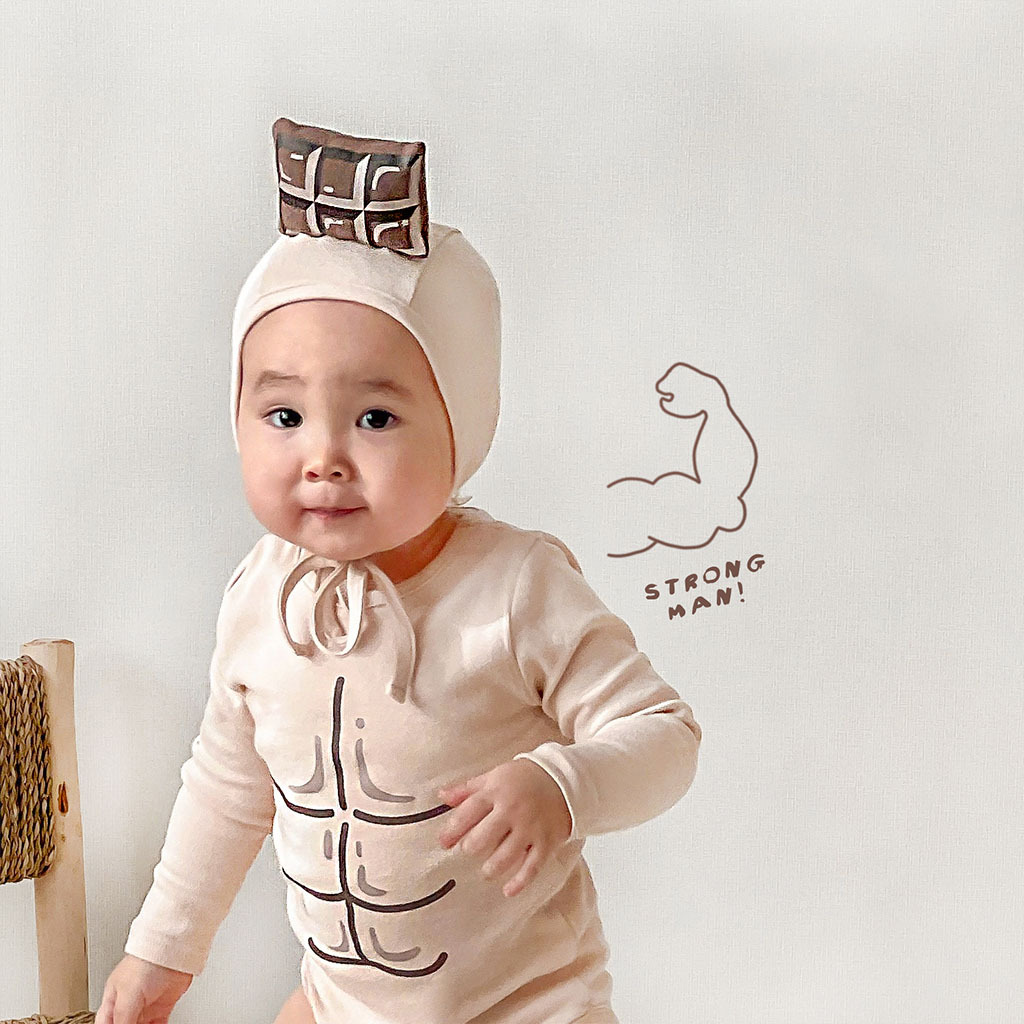 TM20704LS-Spring and summer Korean version of chocolate abdominal muscle shape baby fart clothes + hat two-piece set