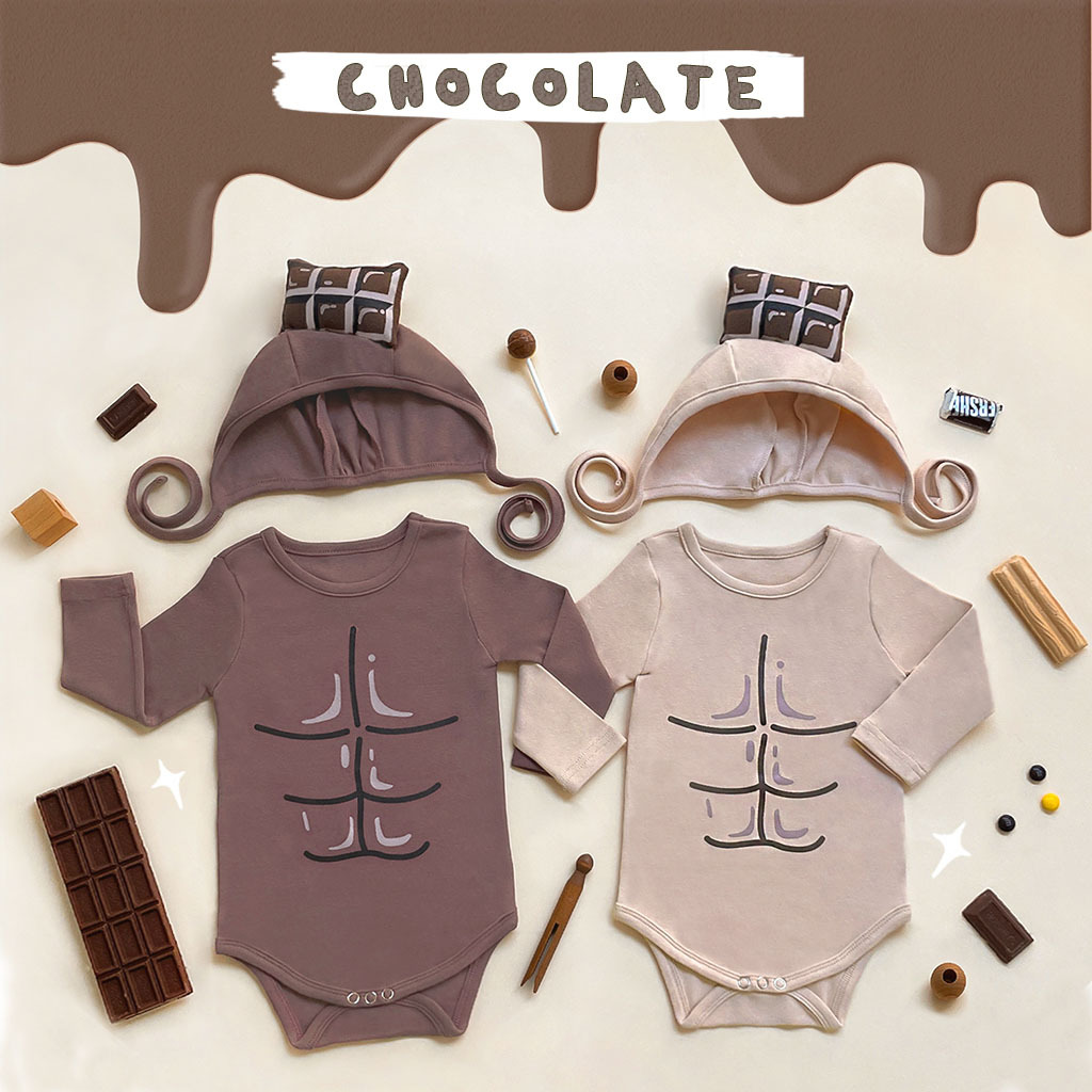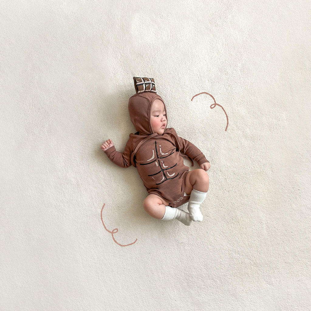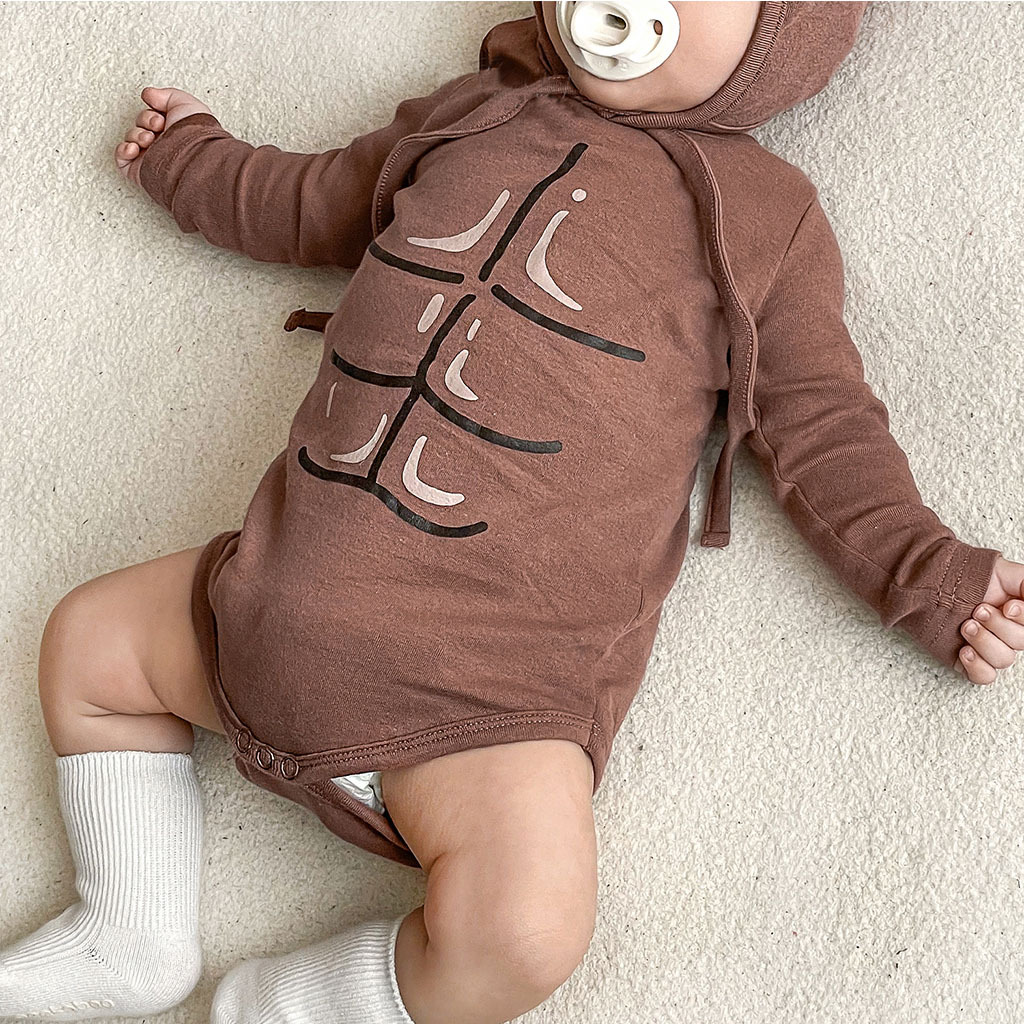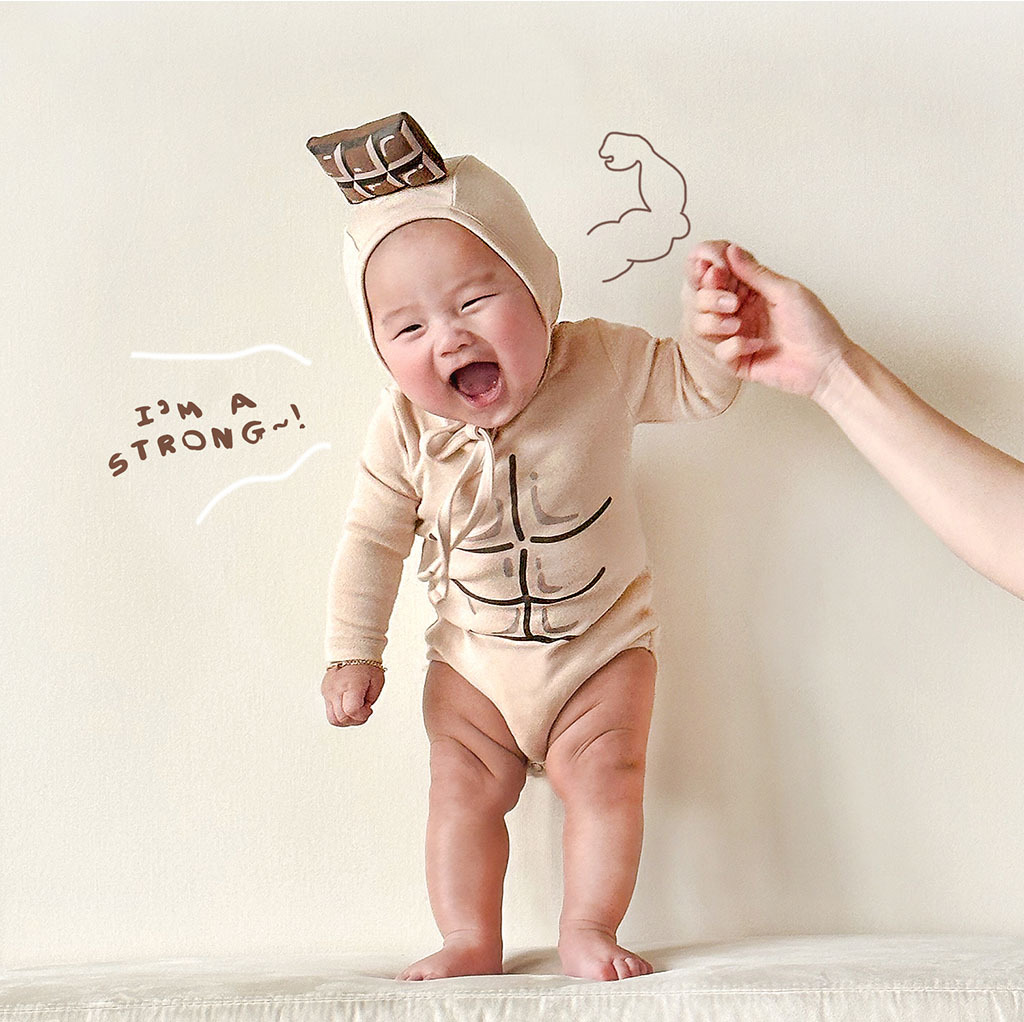 TM20704LS-Spring and summer Korean version of chocolate abdominal muscle shape baby fart clothes + hat two-piece set