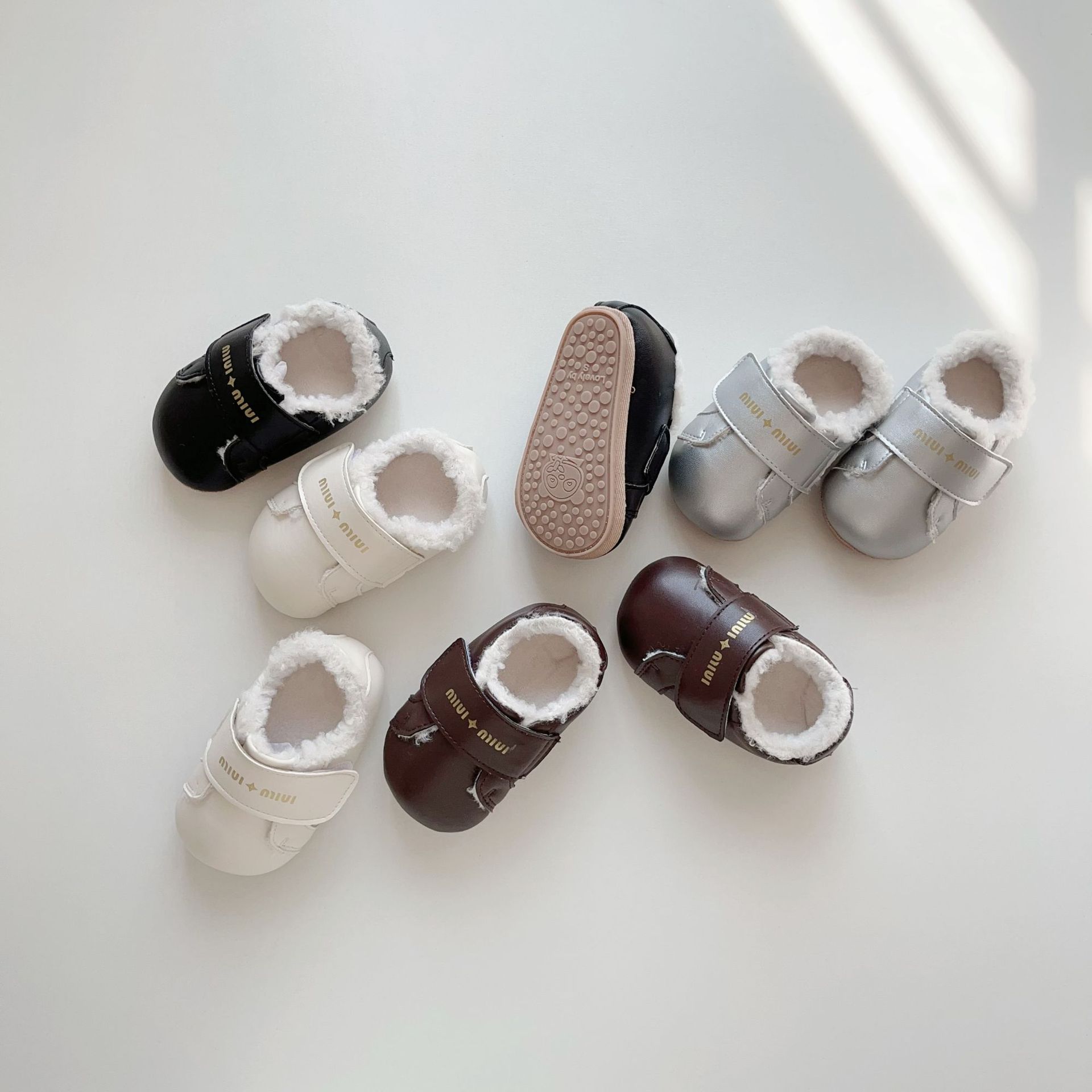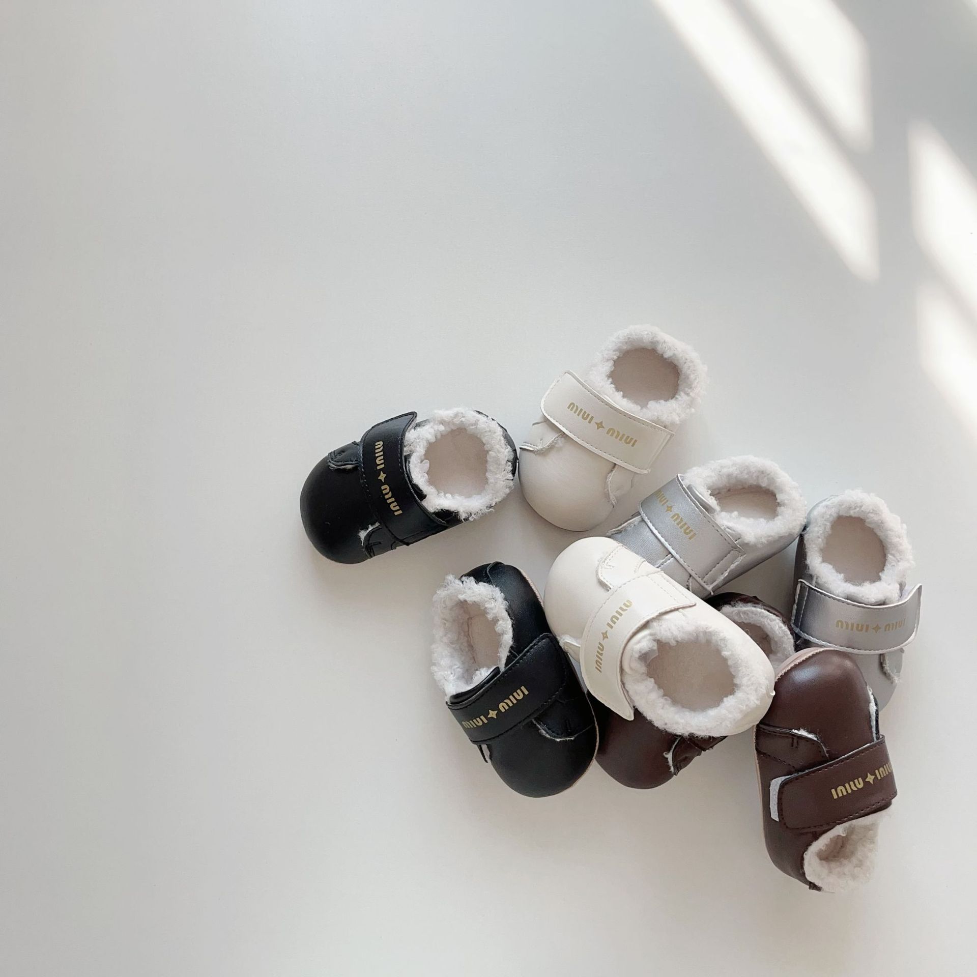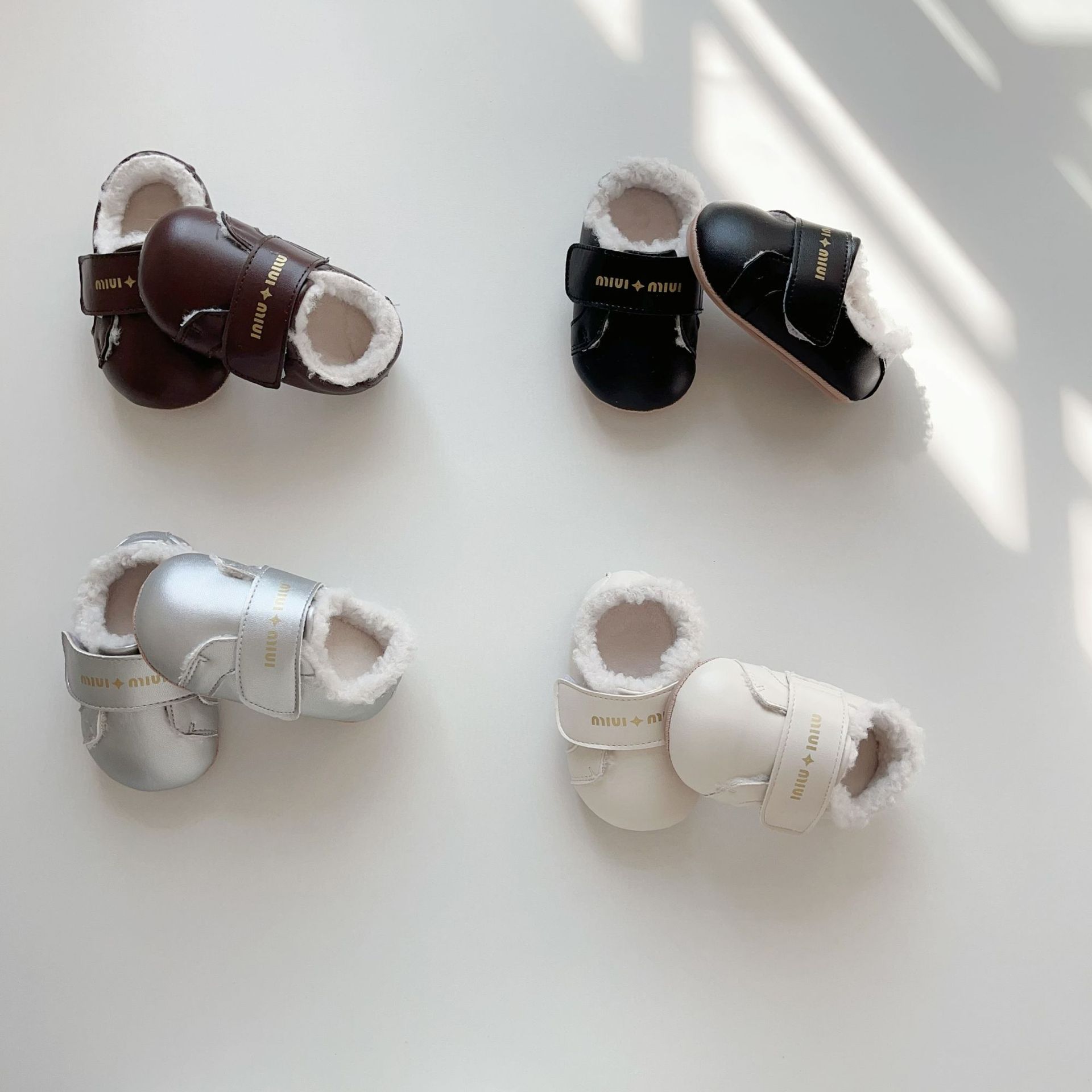 X942AC-Winter Plus Velvet Shoes Korean Version Thickened PU Non-slip Baby Warm Toddler Shoes