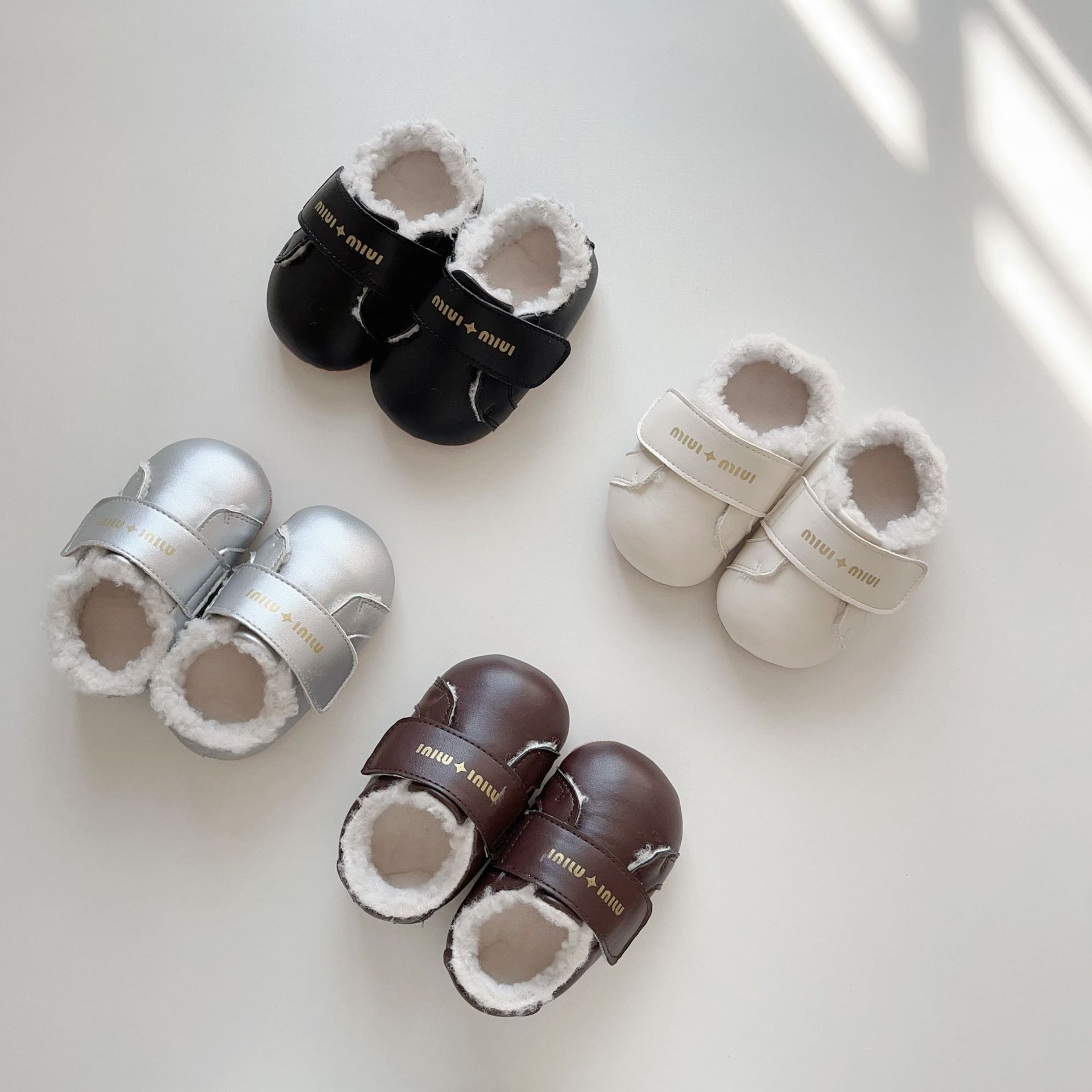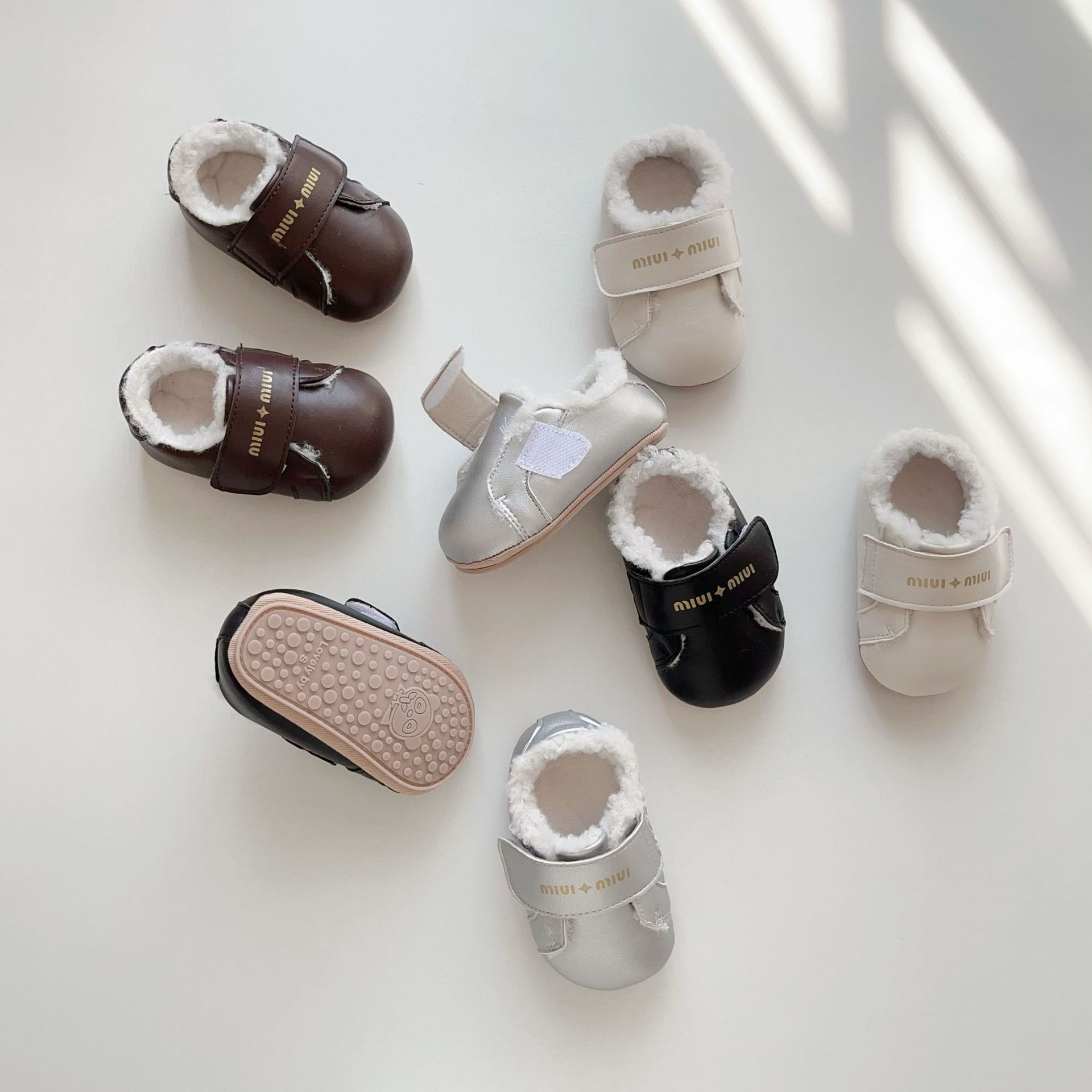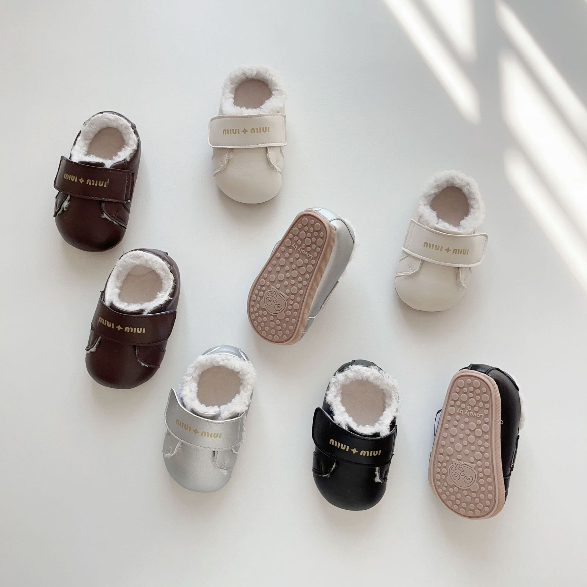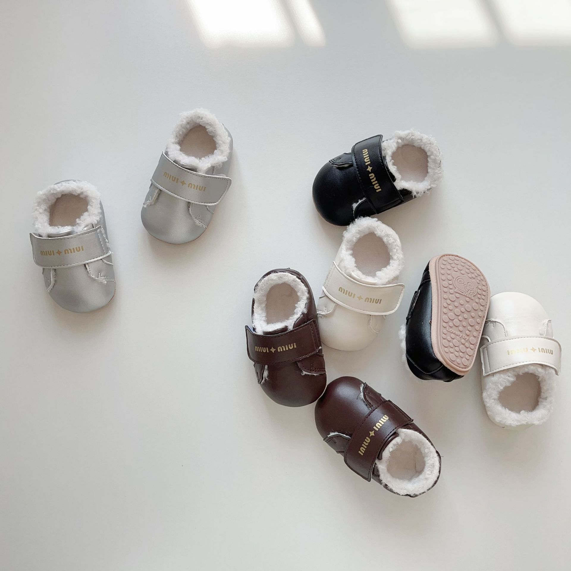 X942AC-Winter Plus Velvet Shoes Korean Version Thickened PU Non-slip Baby Warm Toddler Shoes