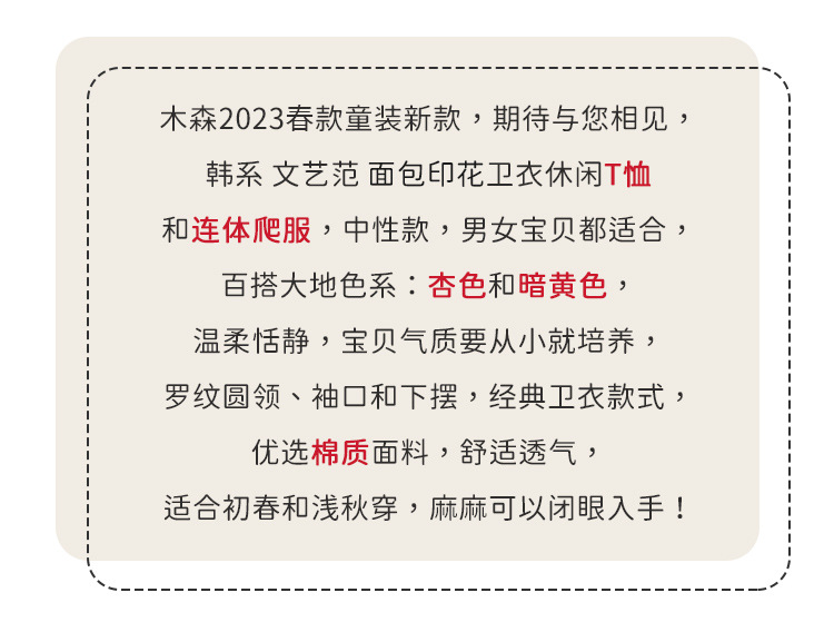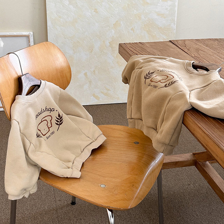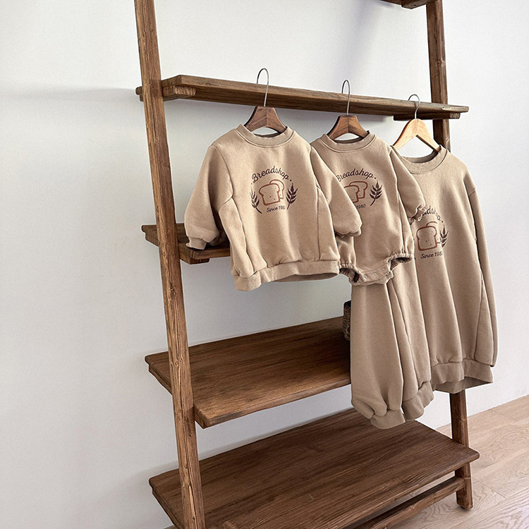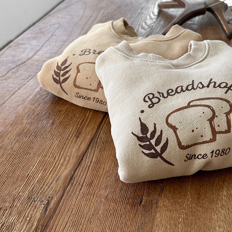 Y7308SE-Spring Korean style bread print round neck long-sleeved top & long-sleeved butt