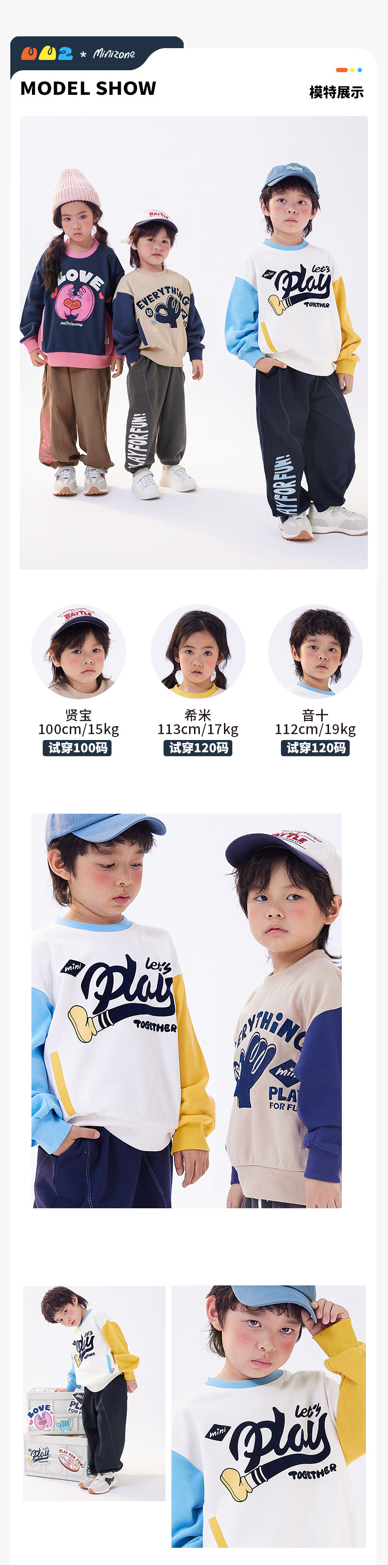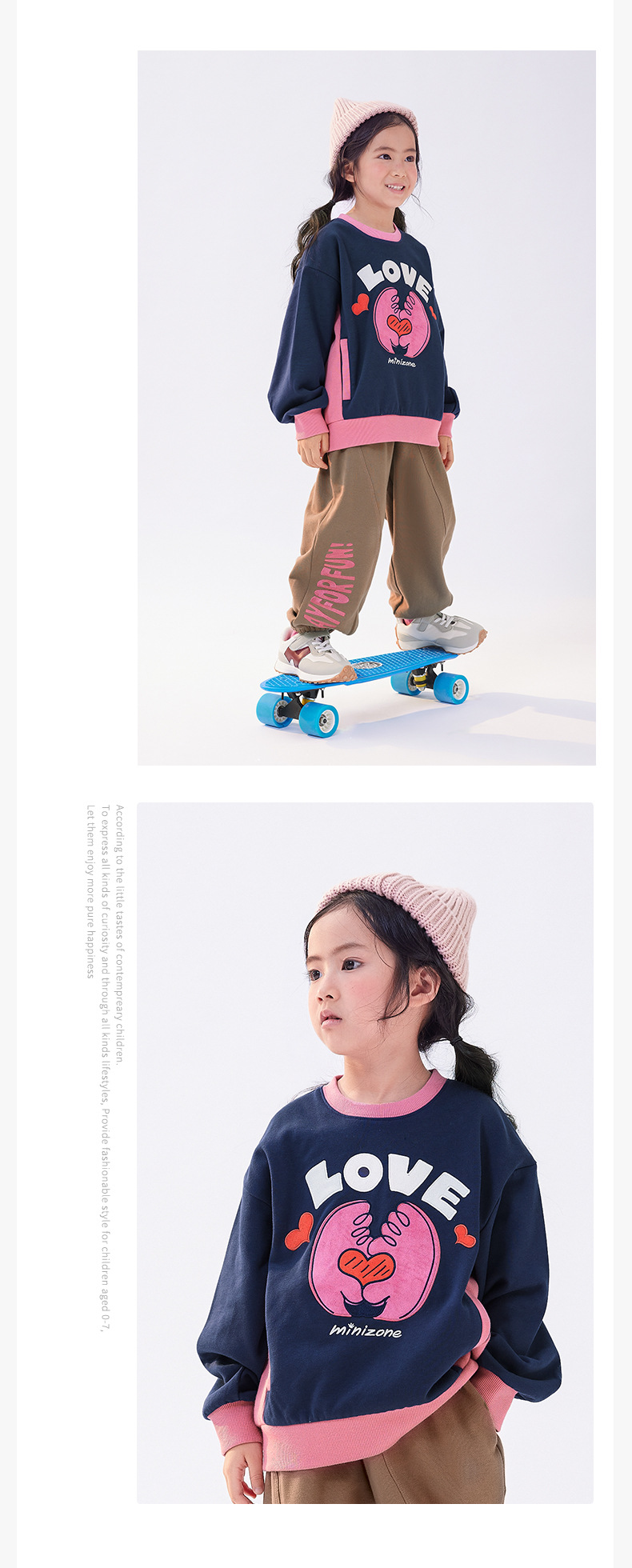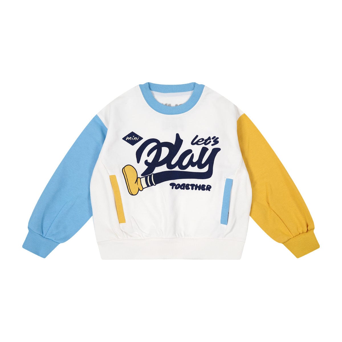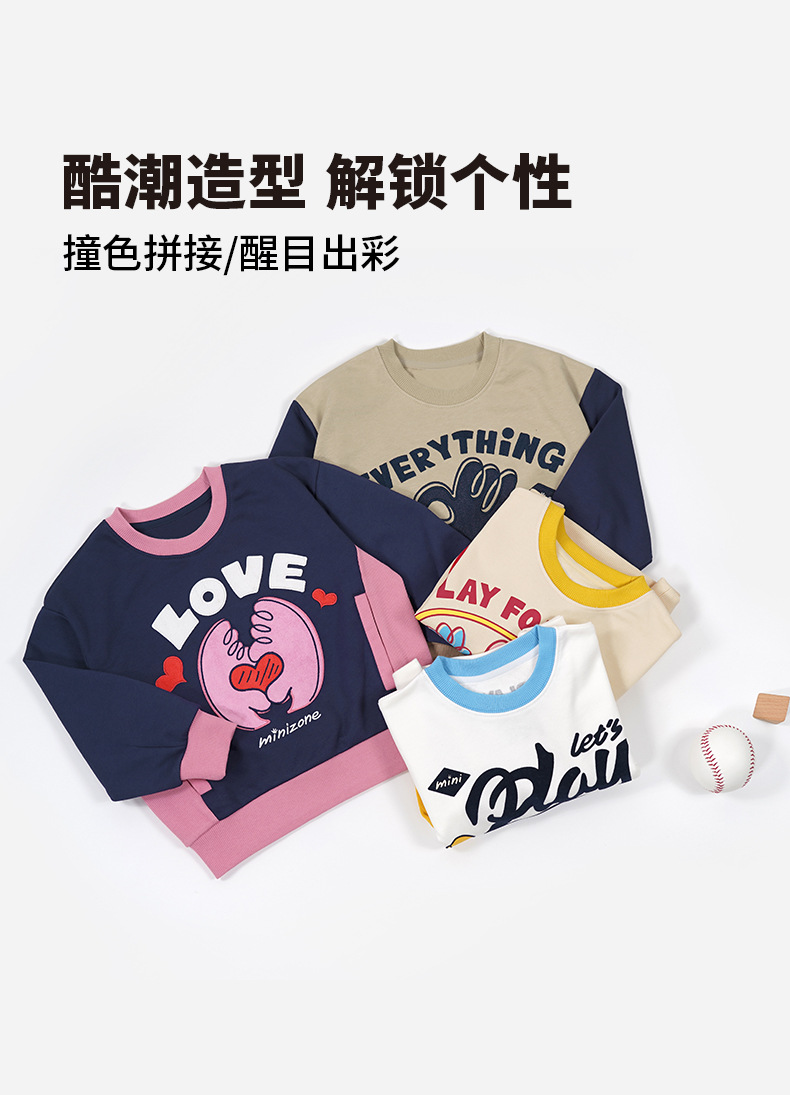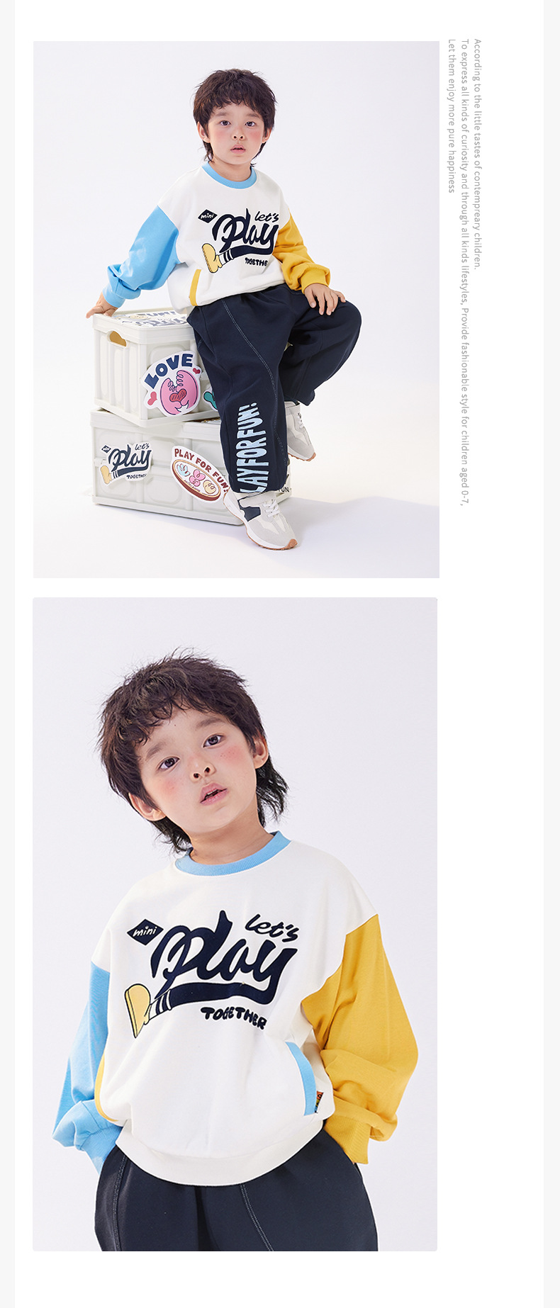 YM3502SE-Autumn and winter stitching sleeves terry loose contrast color round neck long sleeve top