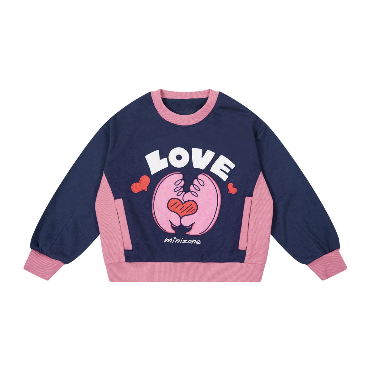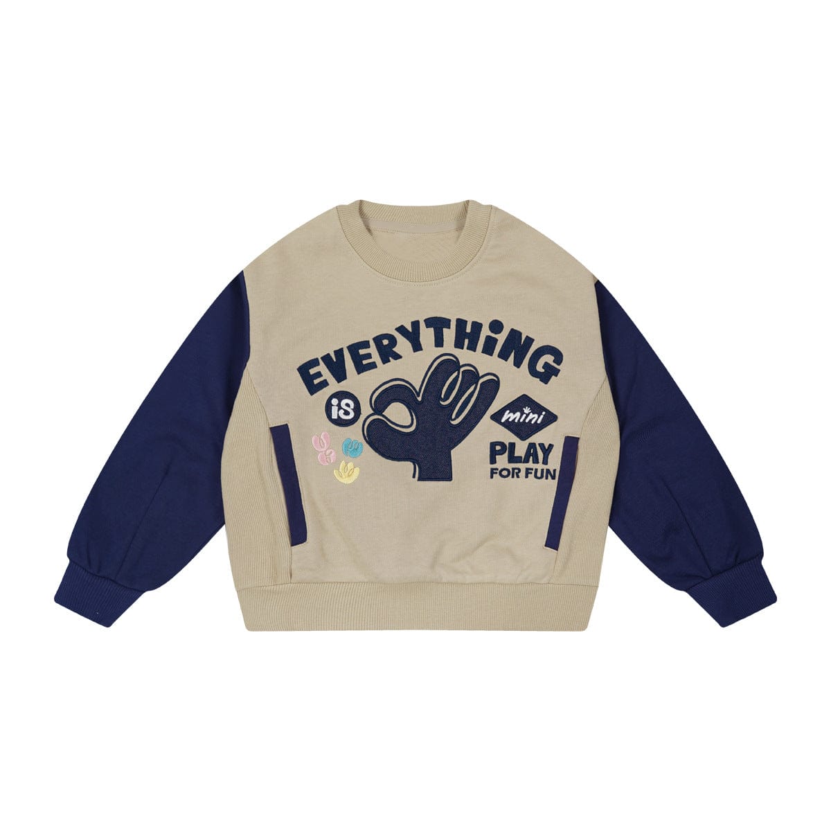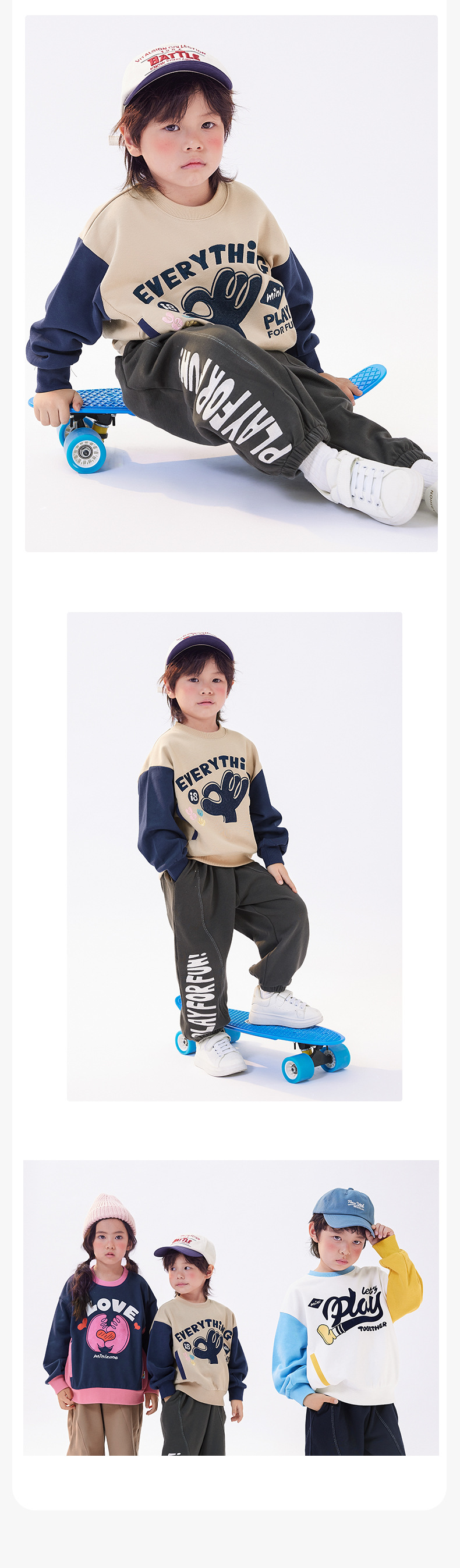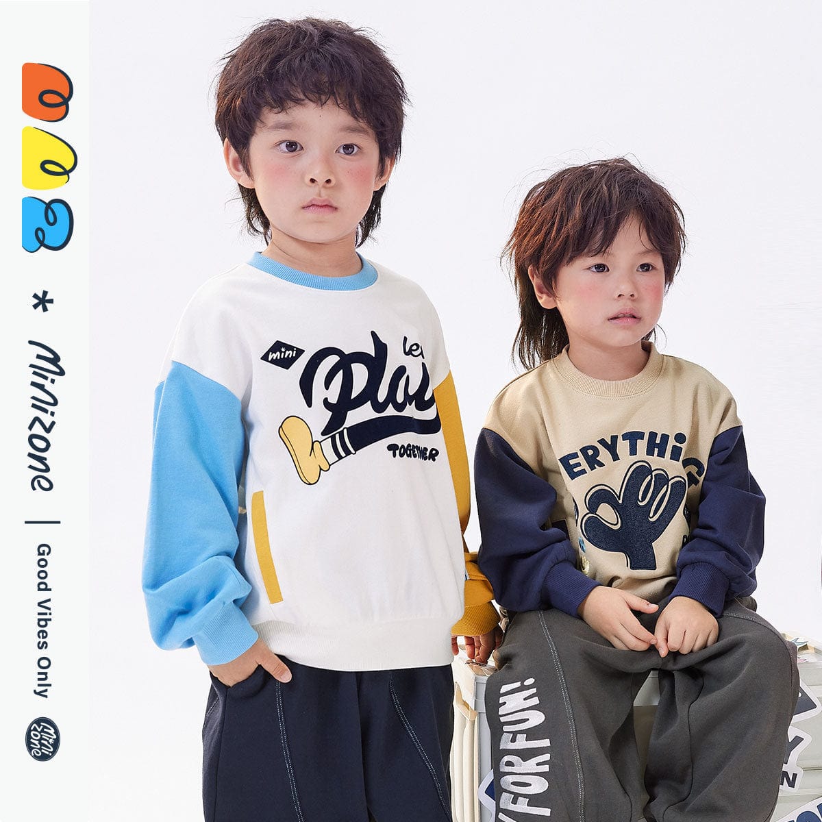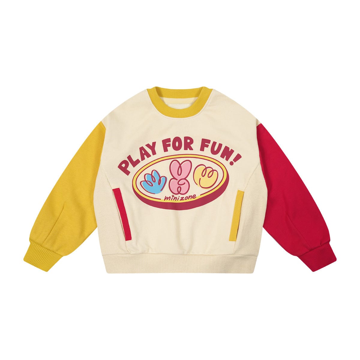 YM3502SE-Autumn and winter stitching sleeves terry loose contrast color round neck long sleeve top