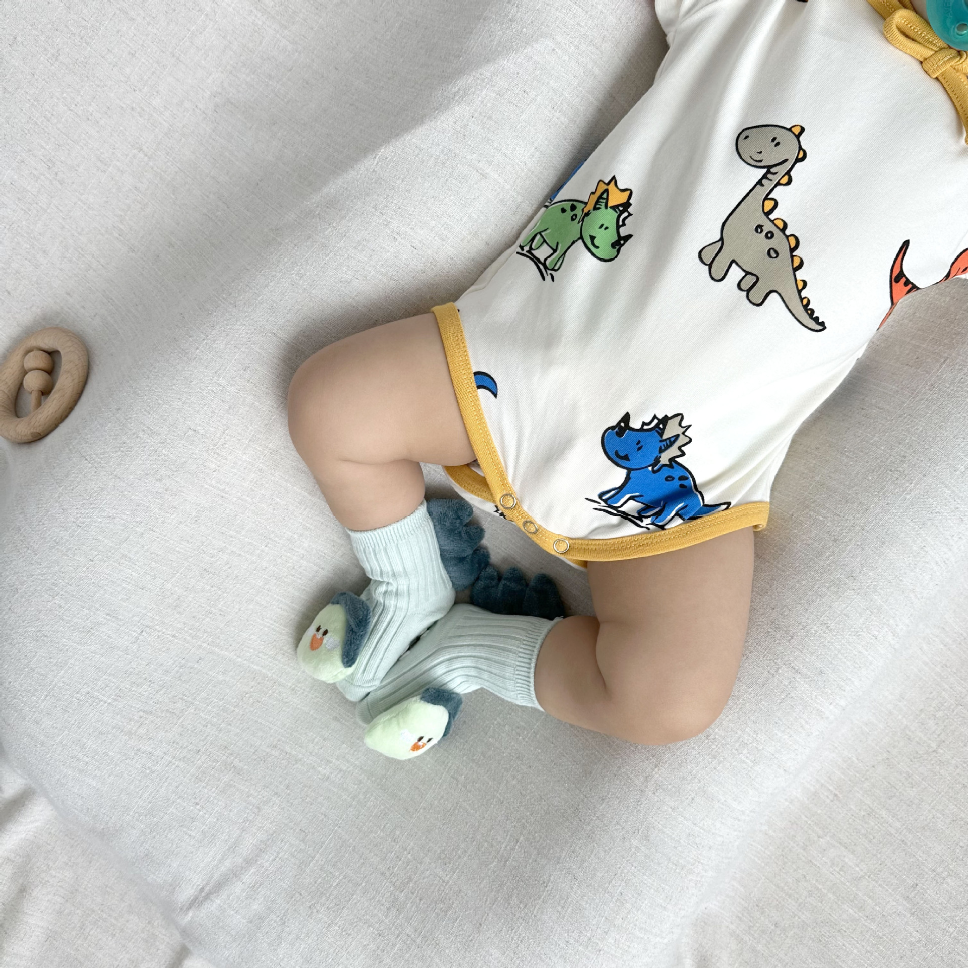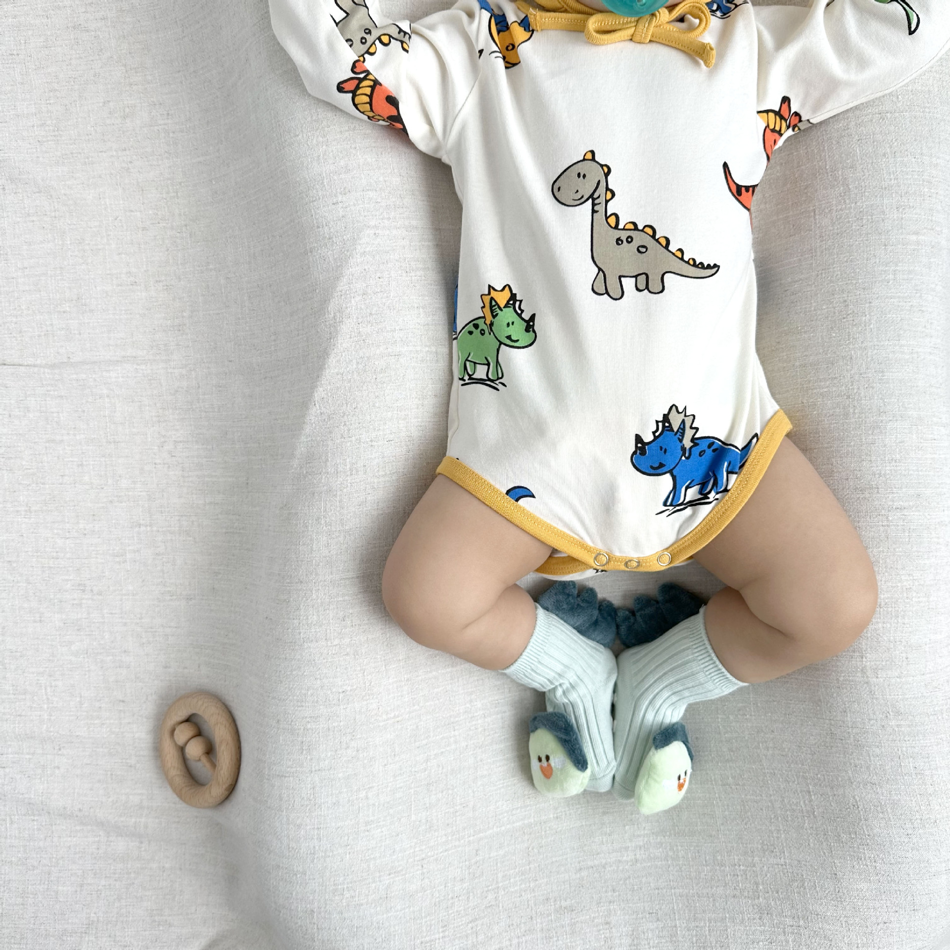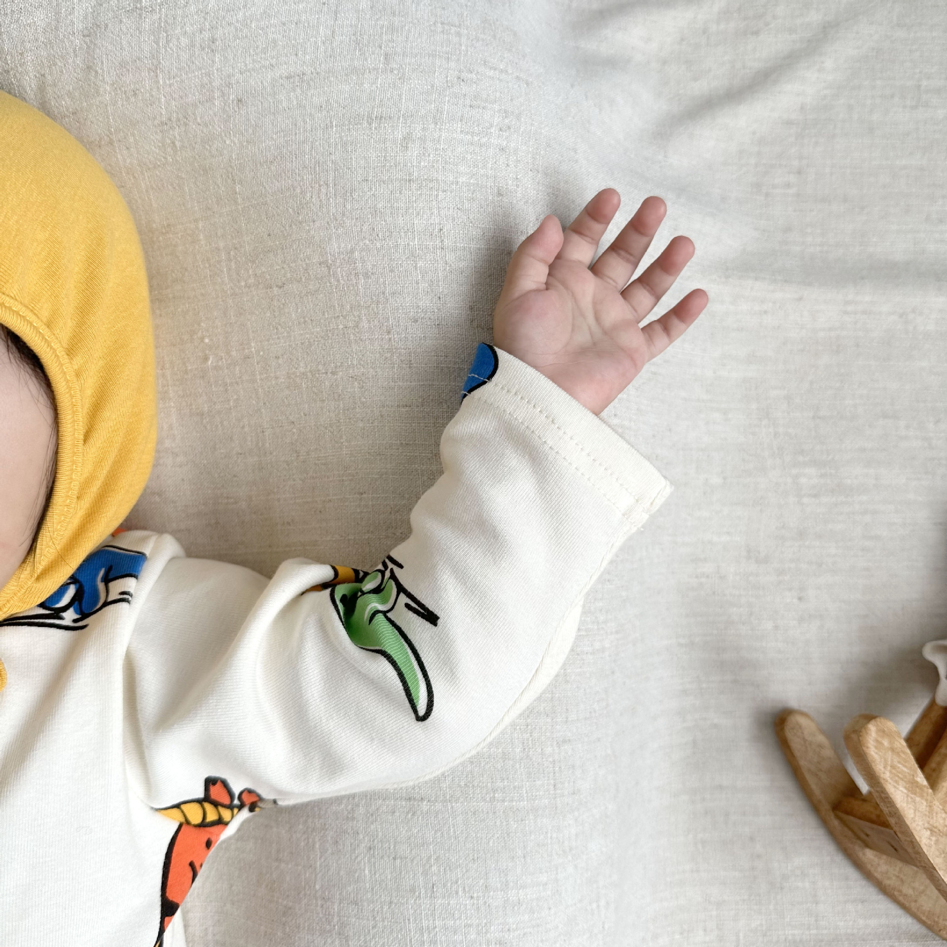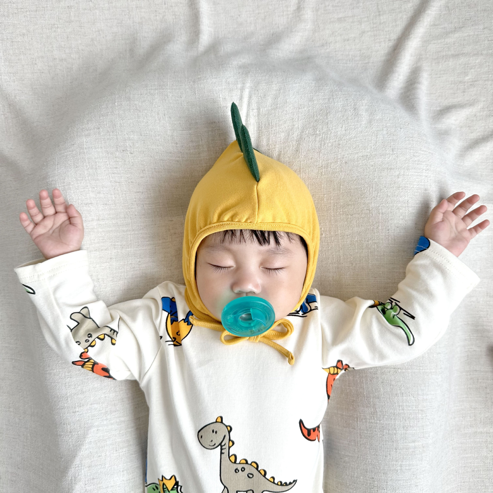 081507LS-寶寶長袖恐龍滿印嬰兒包屁衣+帽子