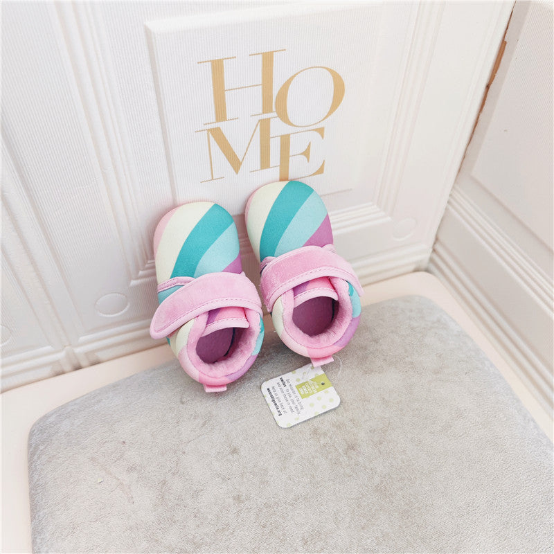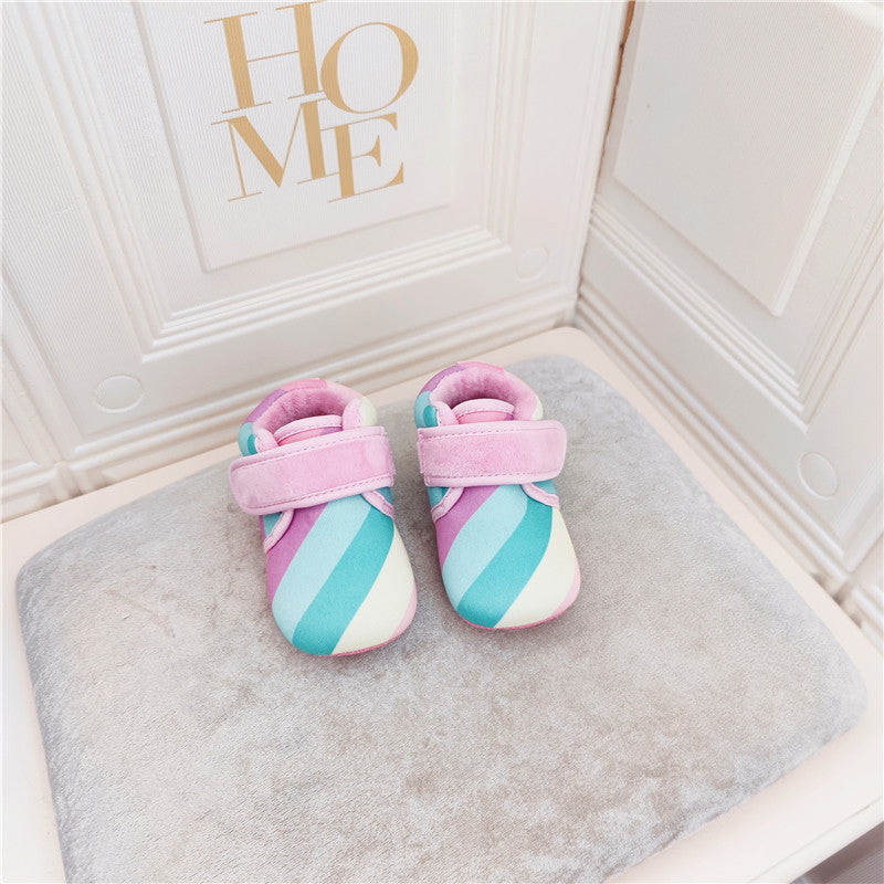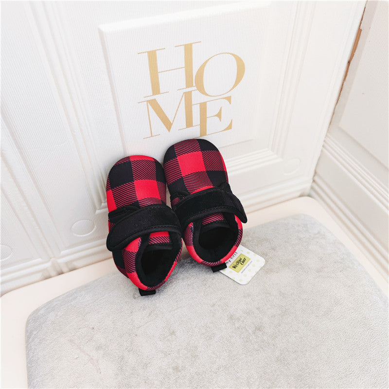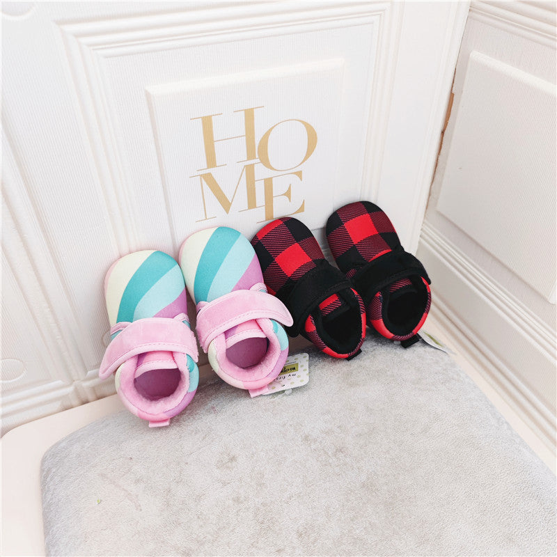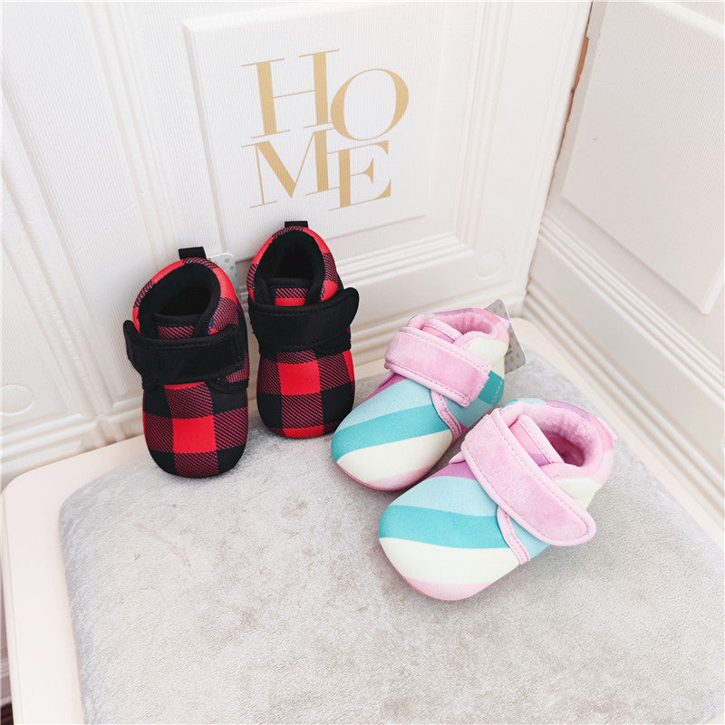 100709AC-秋冬魔鬼氈格條紋學步鞋