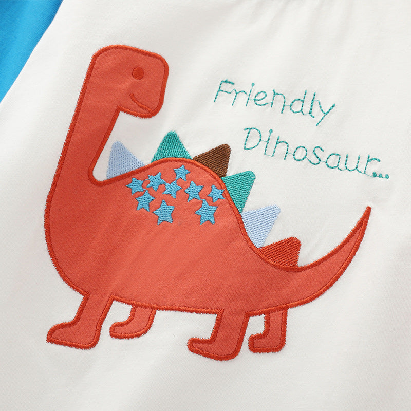 10598TG-秋冬圓領恐龍長袖上衣+長褲套