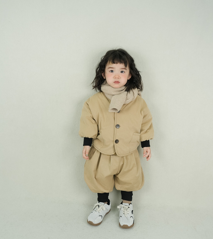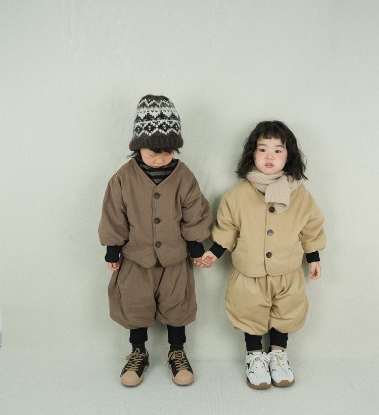 1087TG-冬季復古男女童加絨棉服外套&加絨休閒褲兩件套