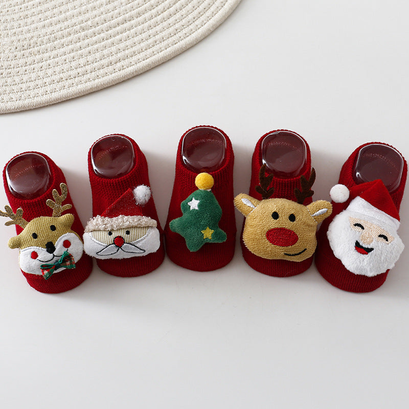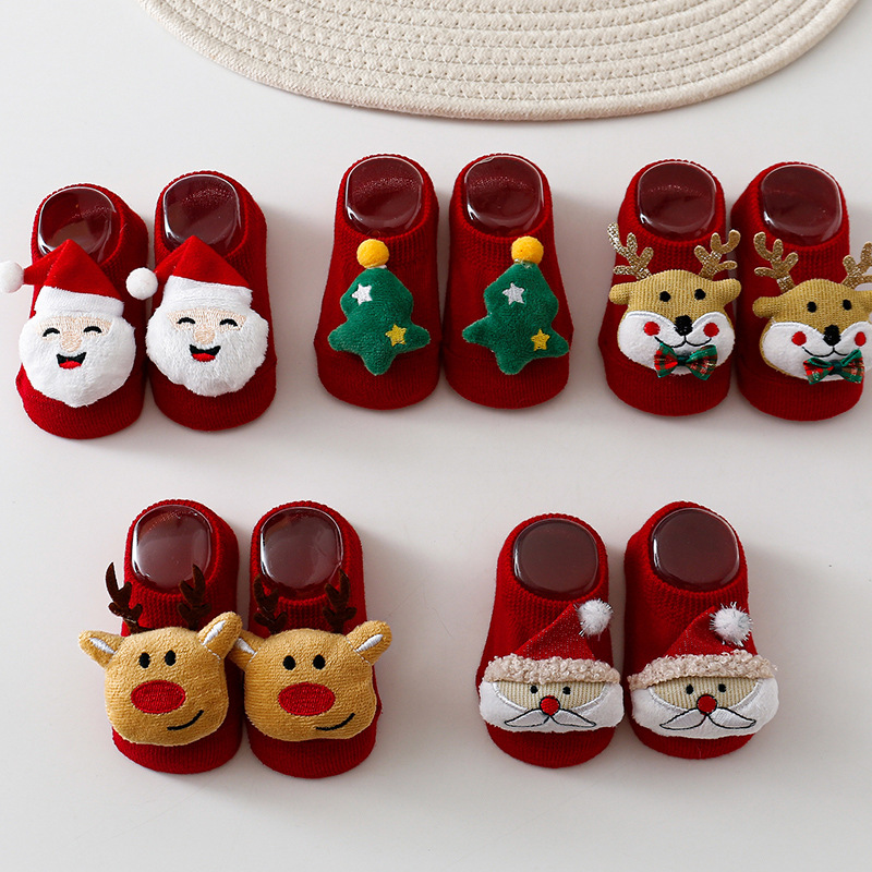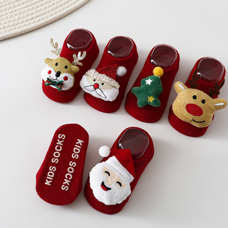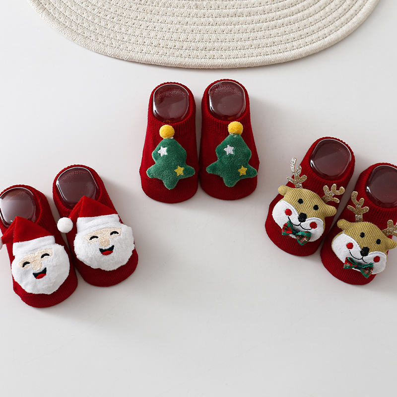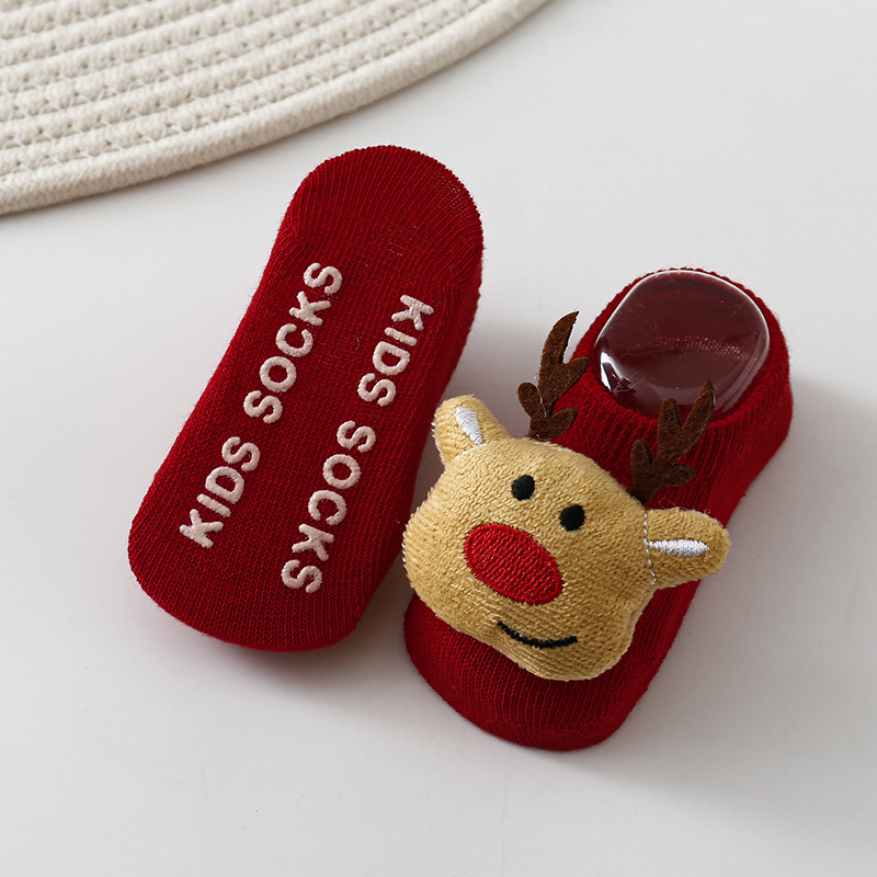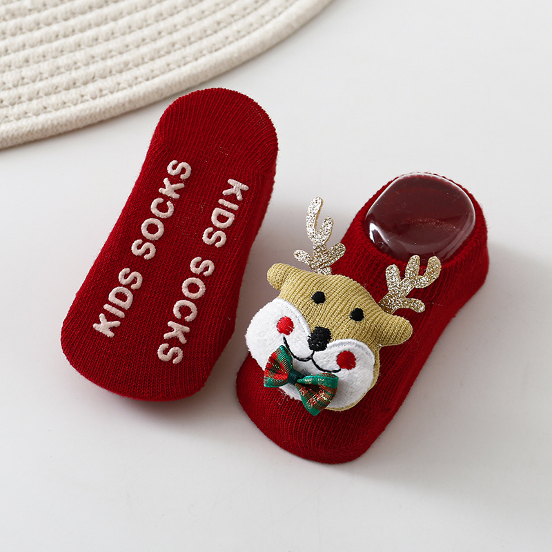 1108AC-INS聖誕節麋鹿防滑學步防滑船型短襪 (三雙起批)