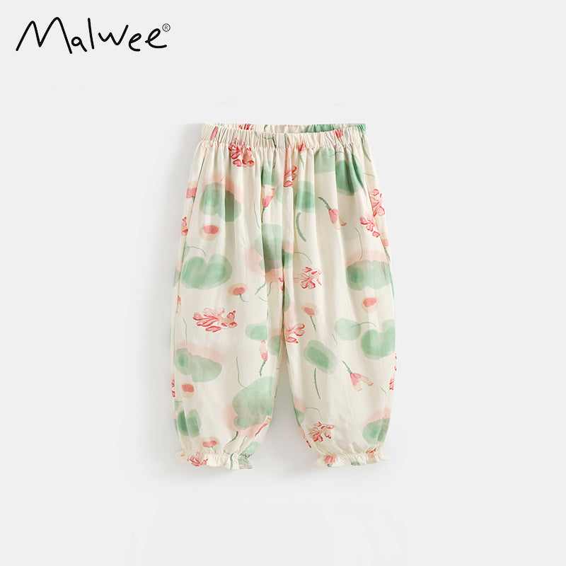 113033PA-夏季女童鬆緊腰防蚊長褲