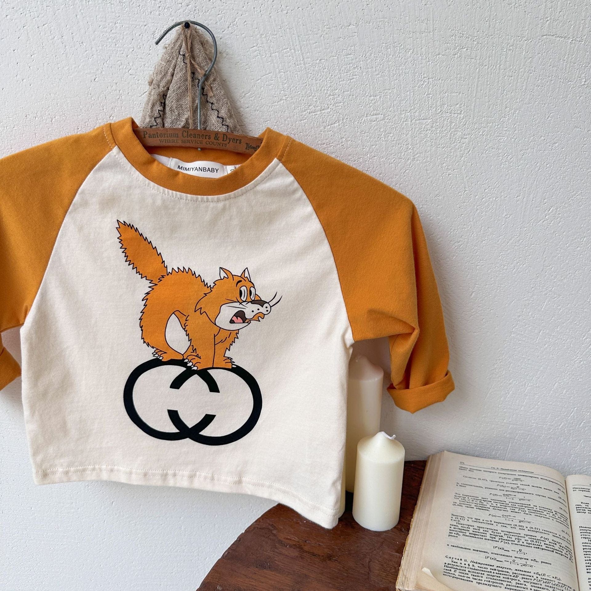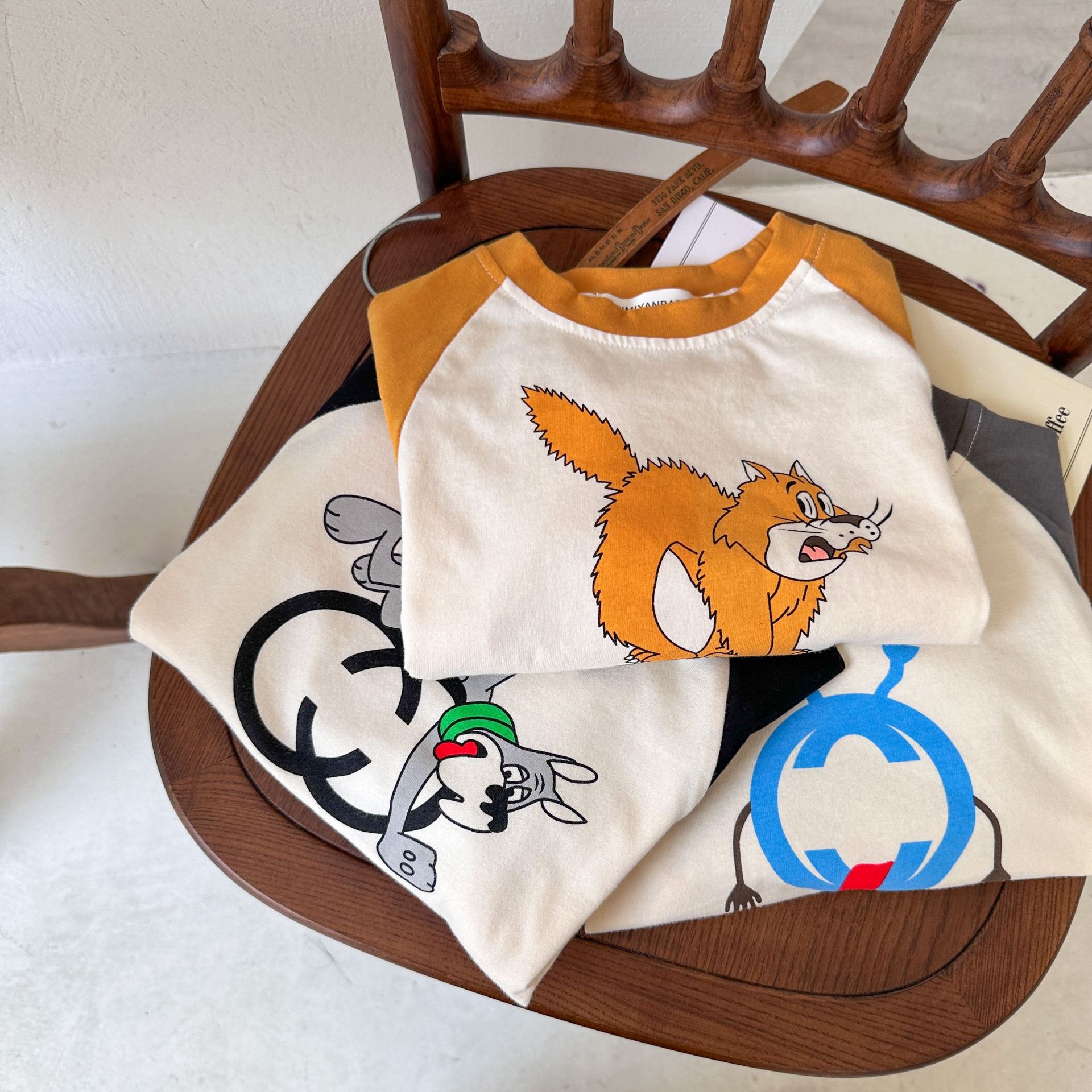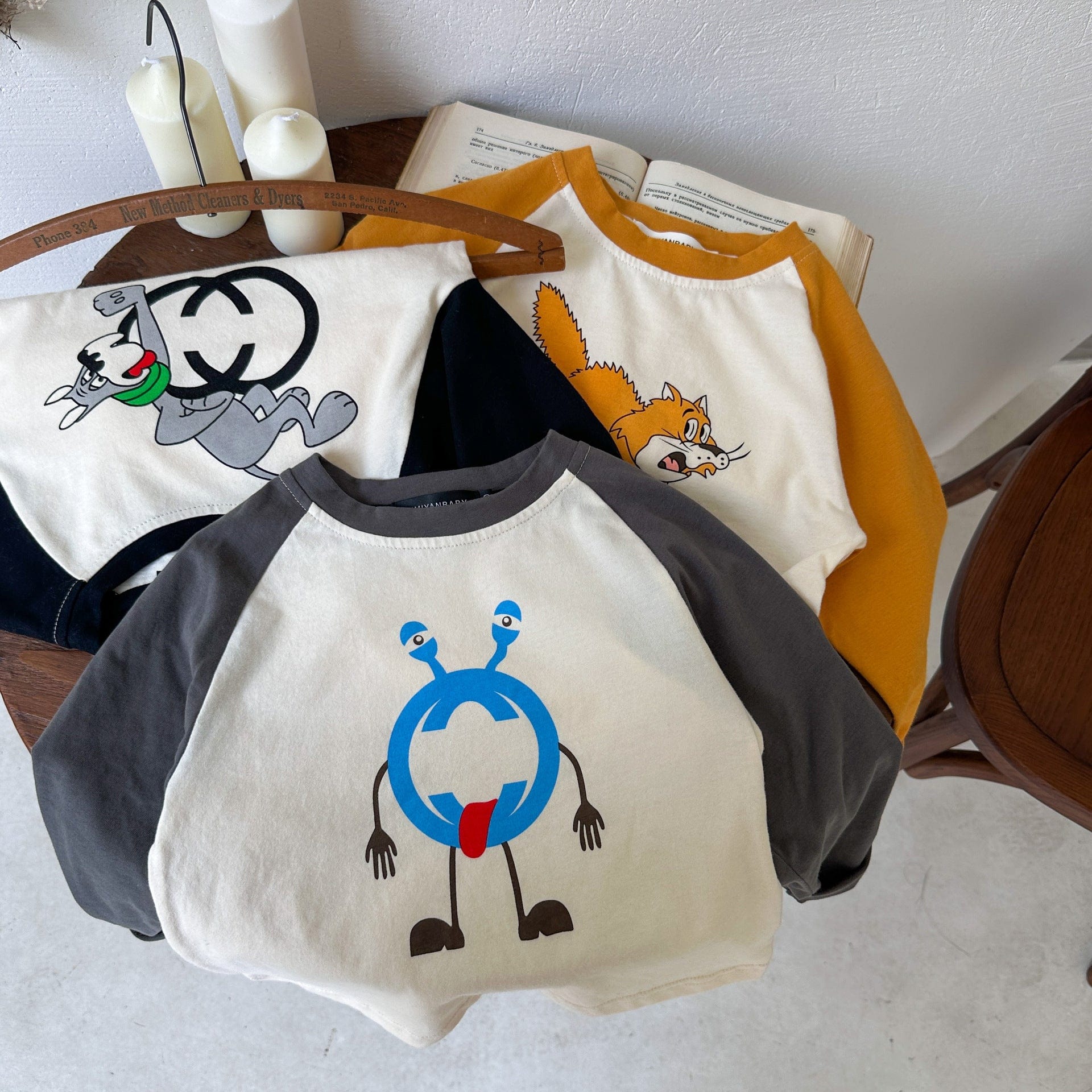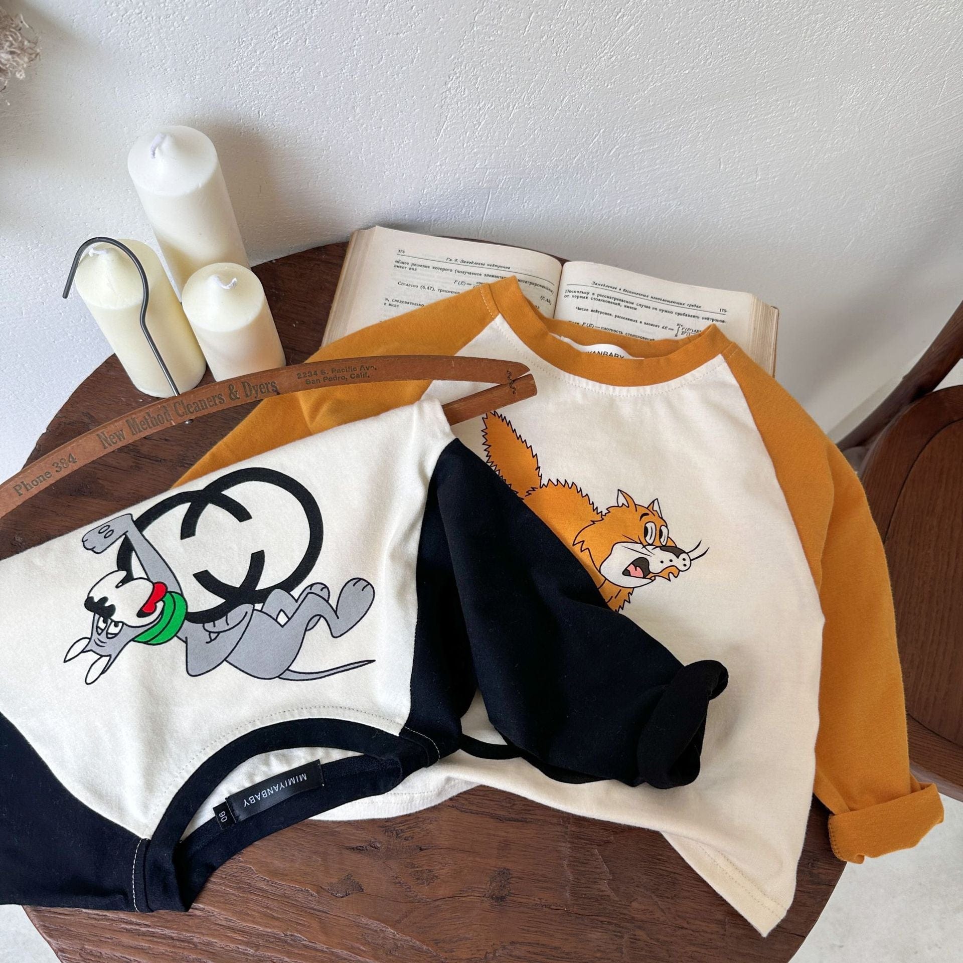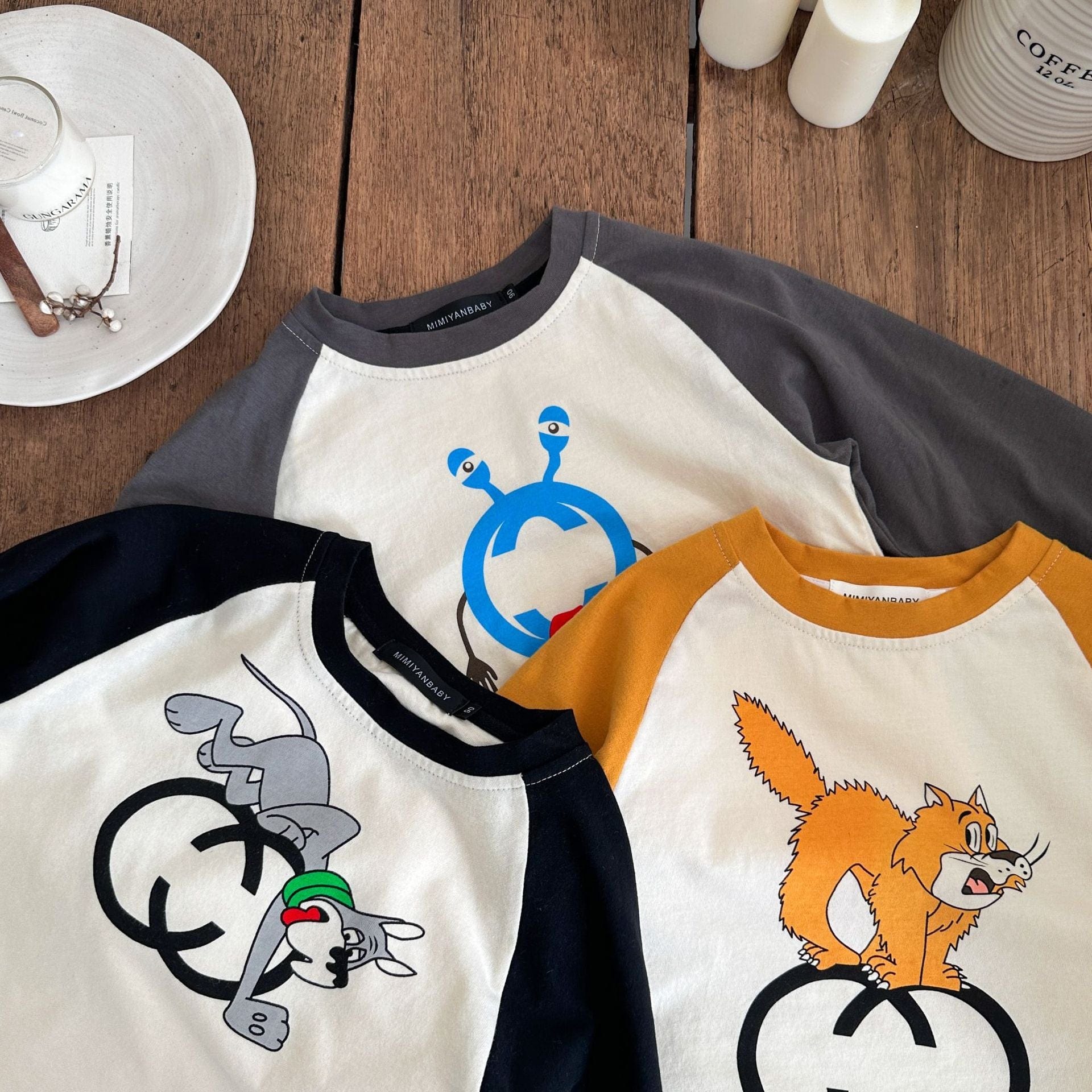 1542SE-秋季韓版圓領撞色卡通長袖上衣