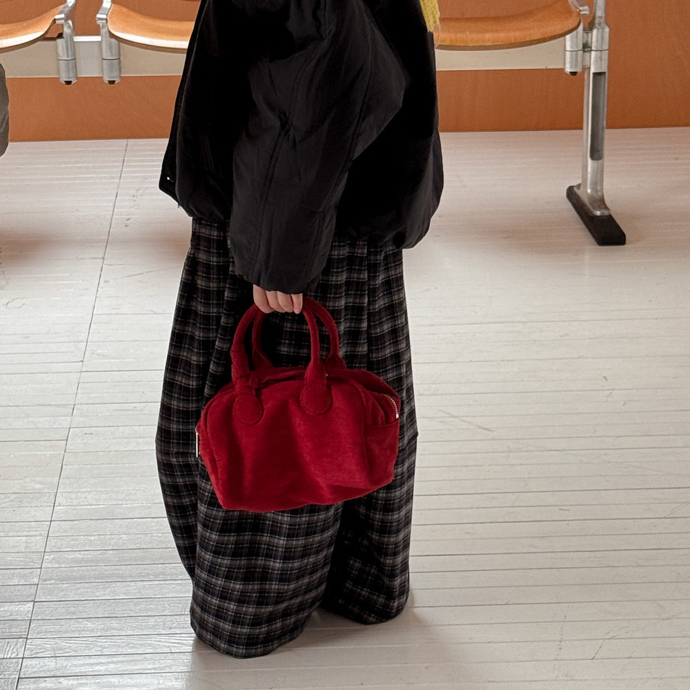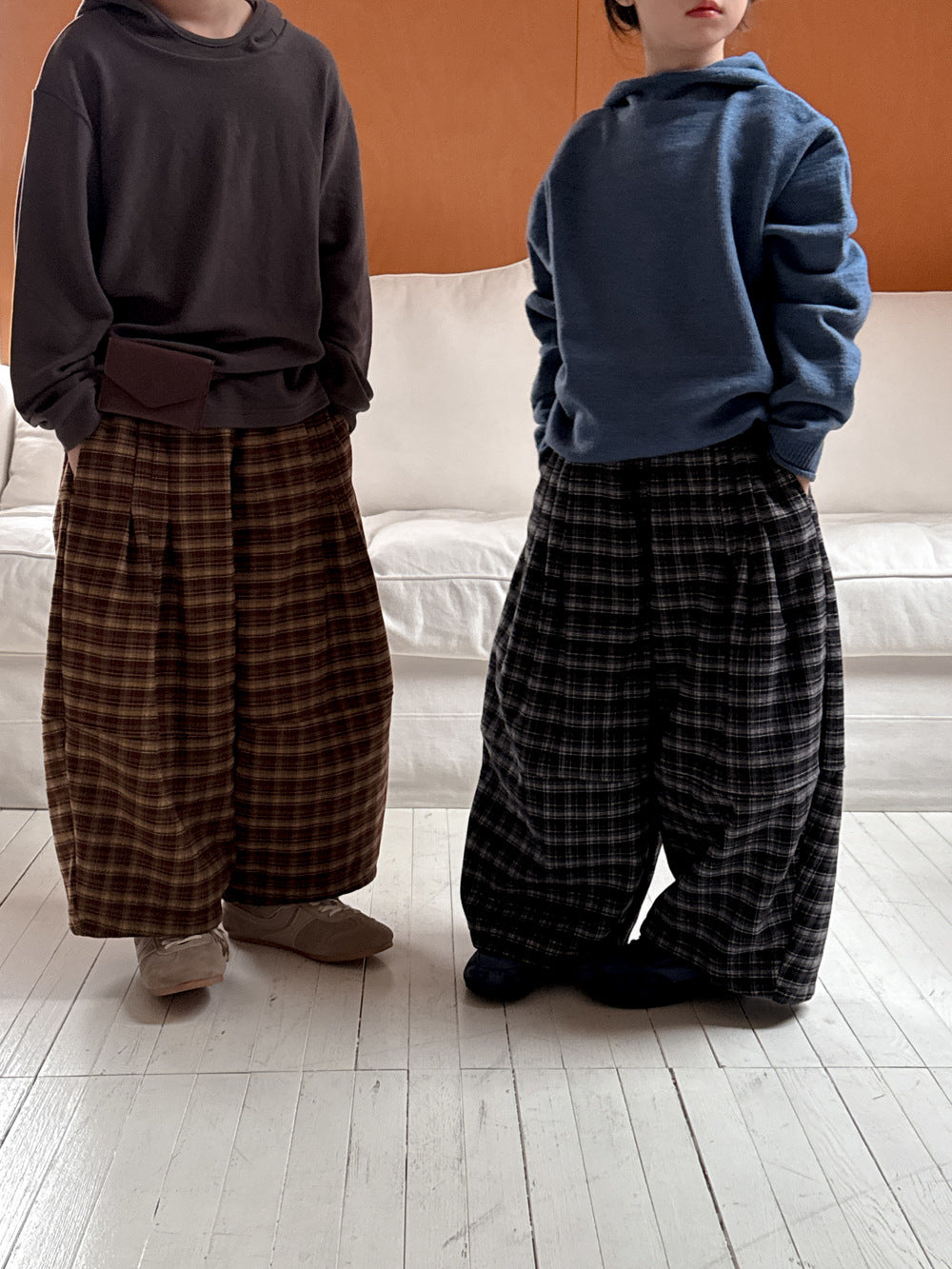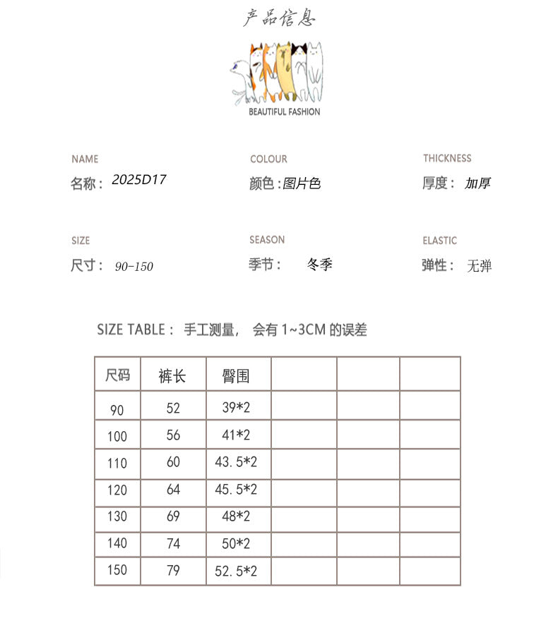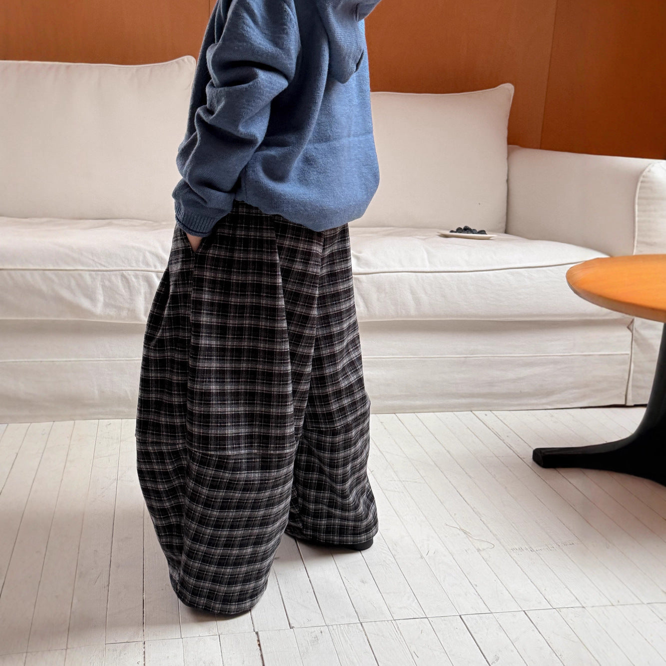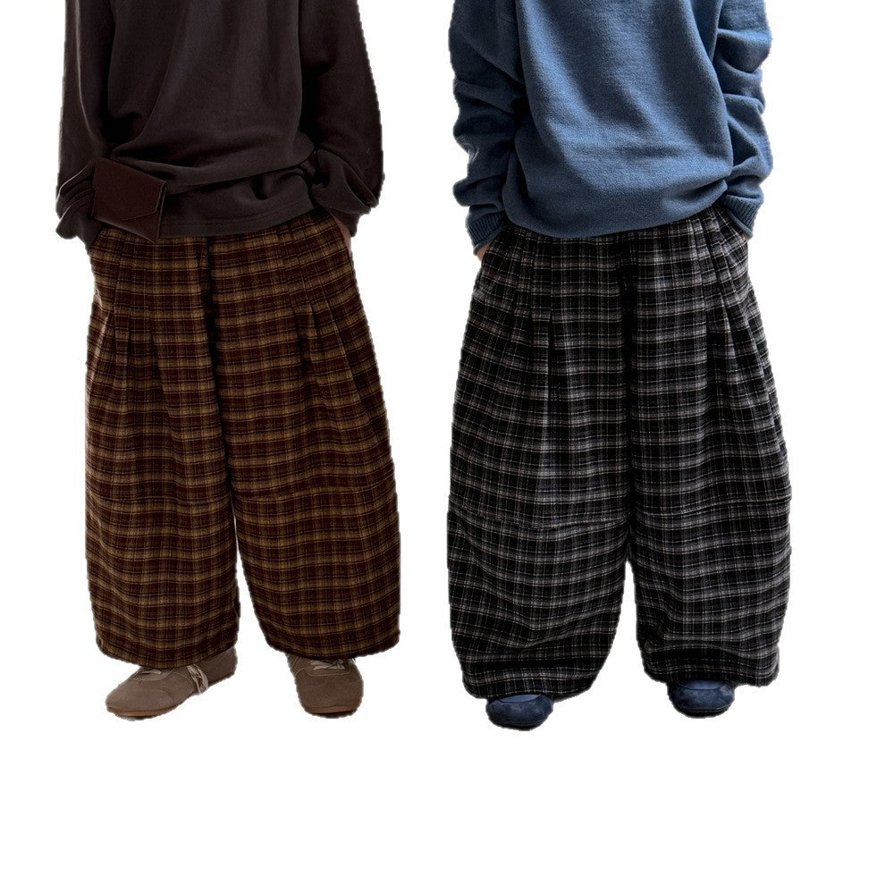 2025D17PA-秋冬季韓版格紋加絨休閒寬鬆闊腿褲