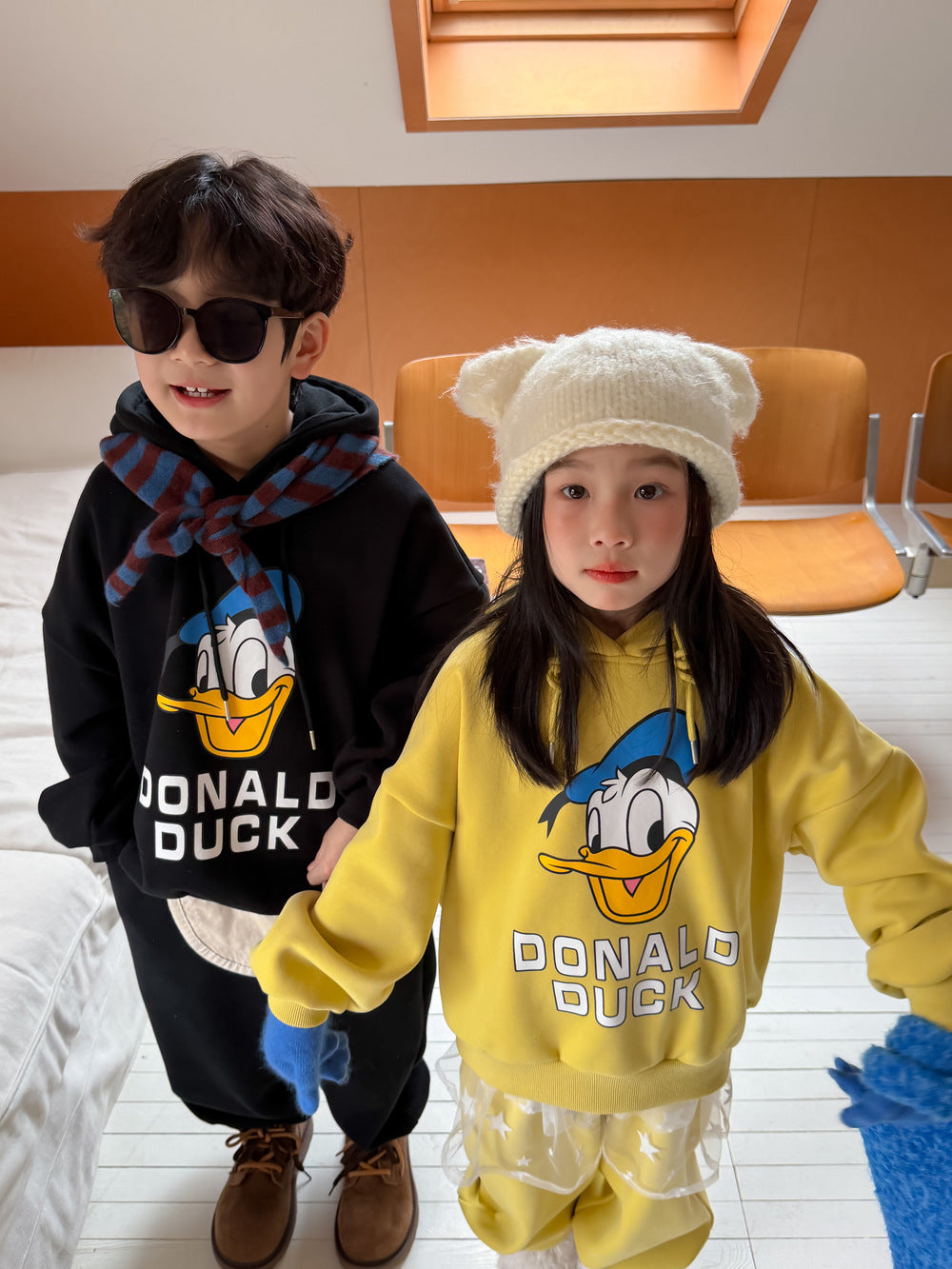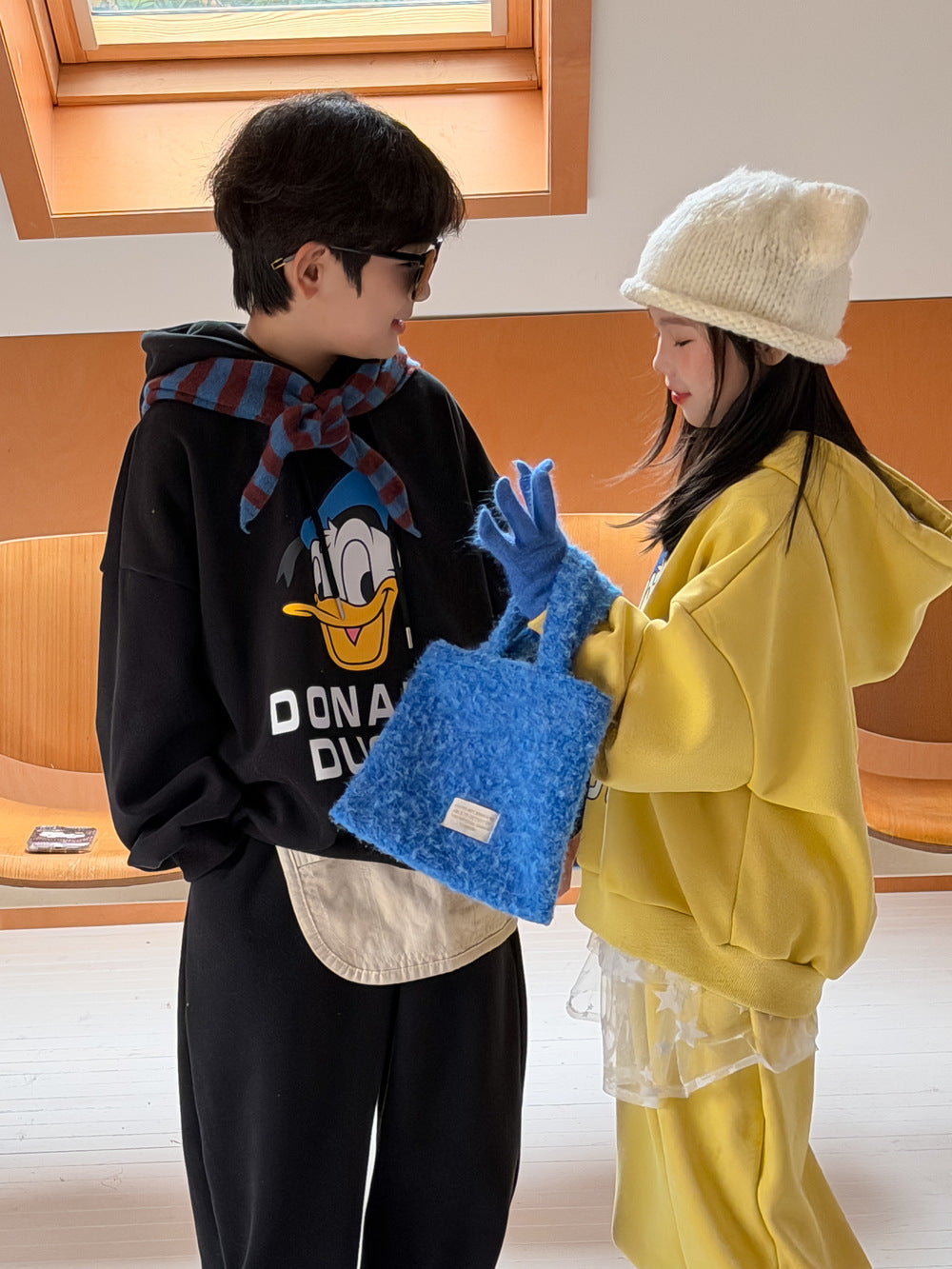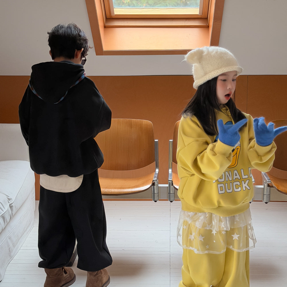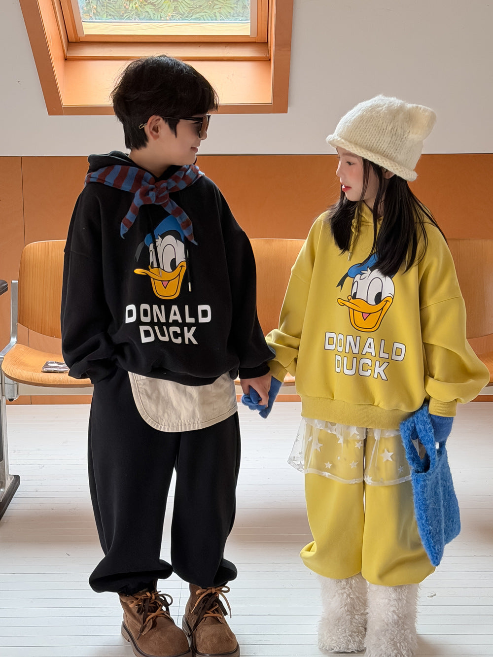 2025D184TG-冬季韓版卡通鴨印花連帽加絨兩件套