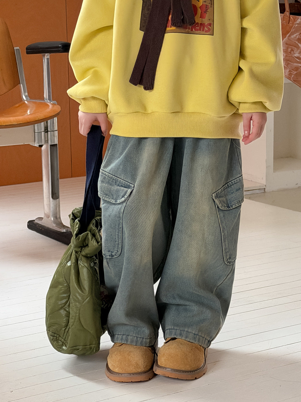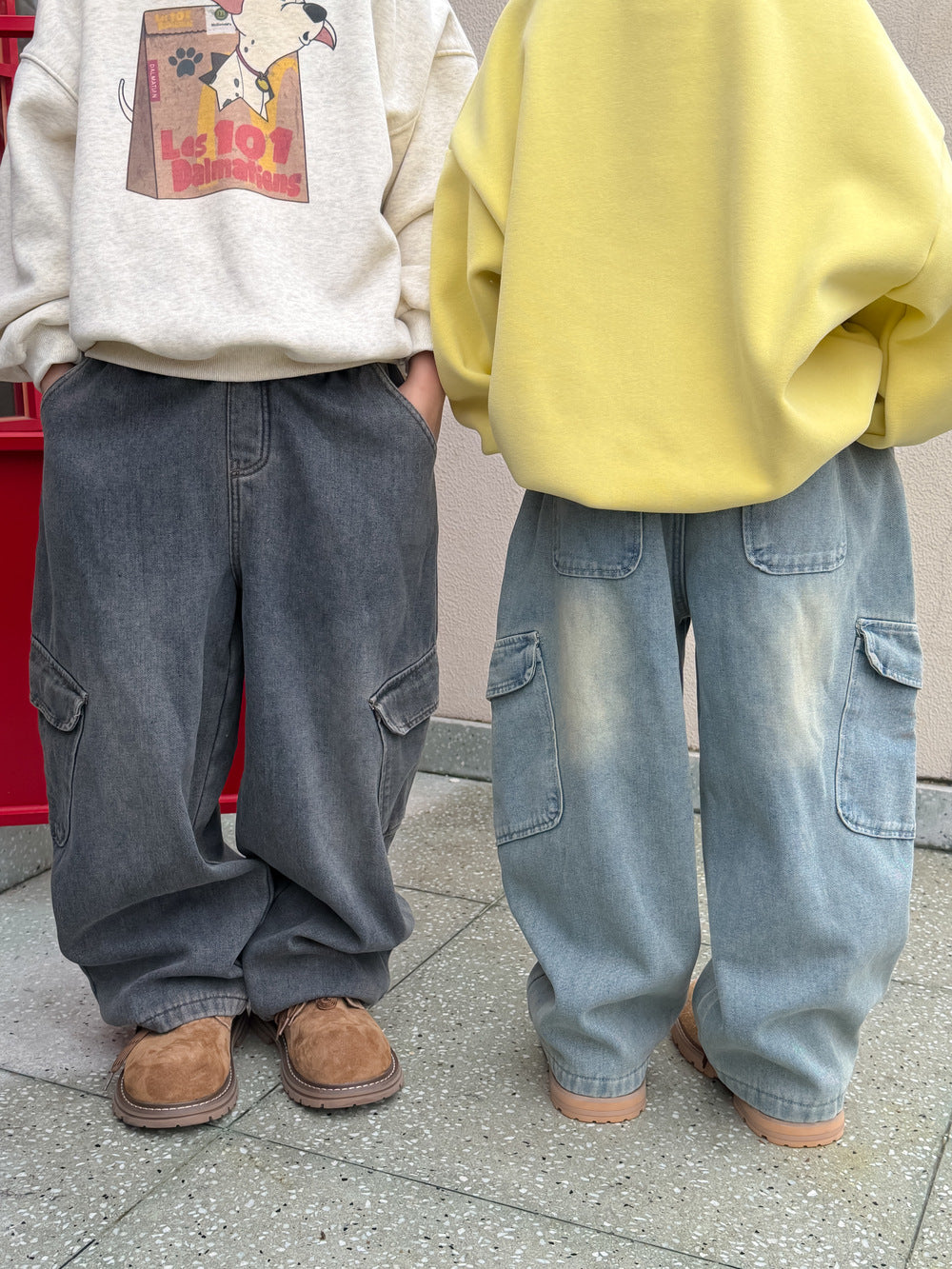 2025D194PA-冬季韓版加絨口袋牛仔工裝褲