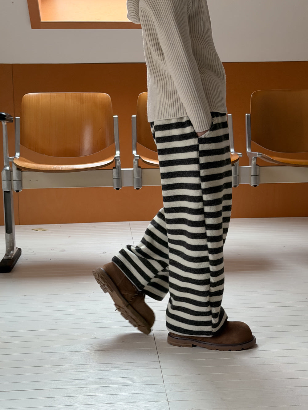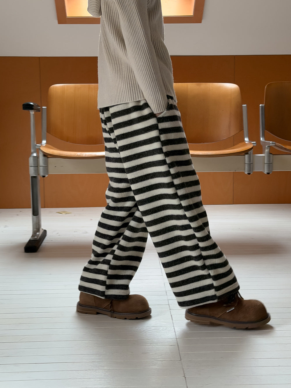 2025D204PA-冬季條紋針織加厚休閒直筒長褲