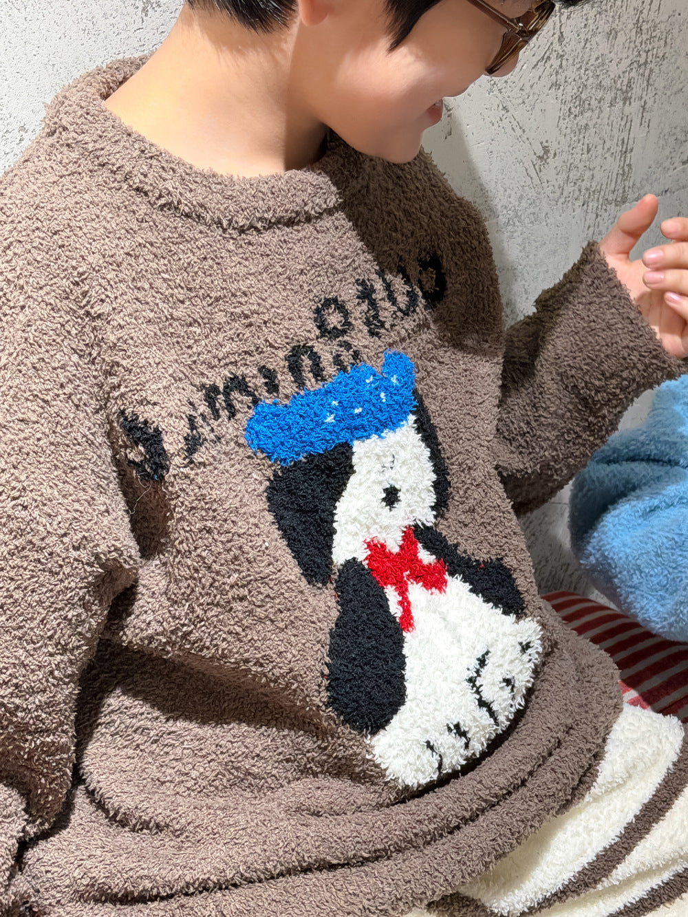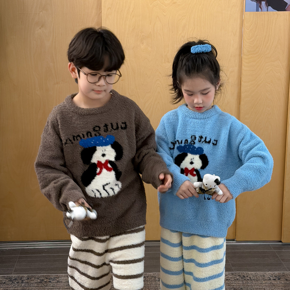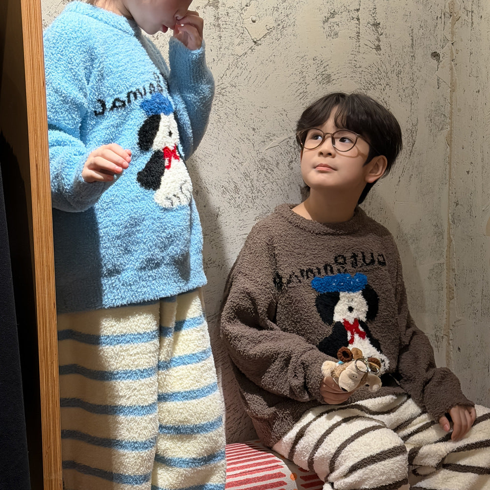 2025D209TG-冬款狗狗條紋珊瑚絨居家兩件套