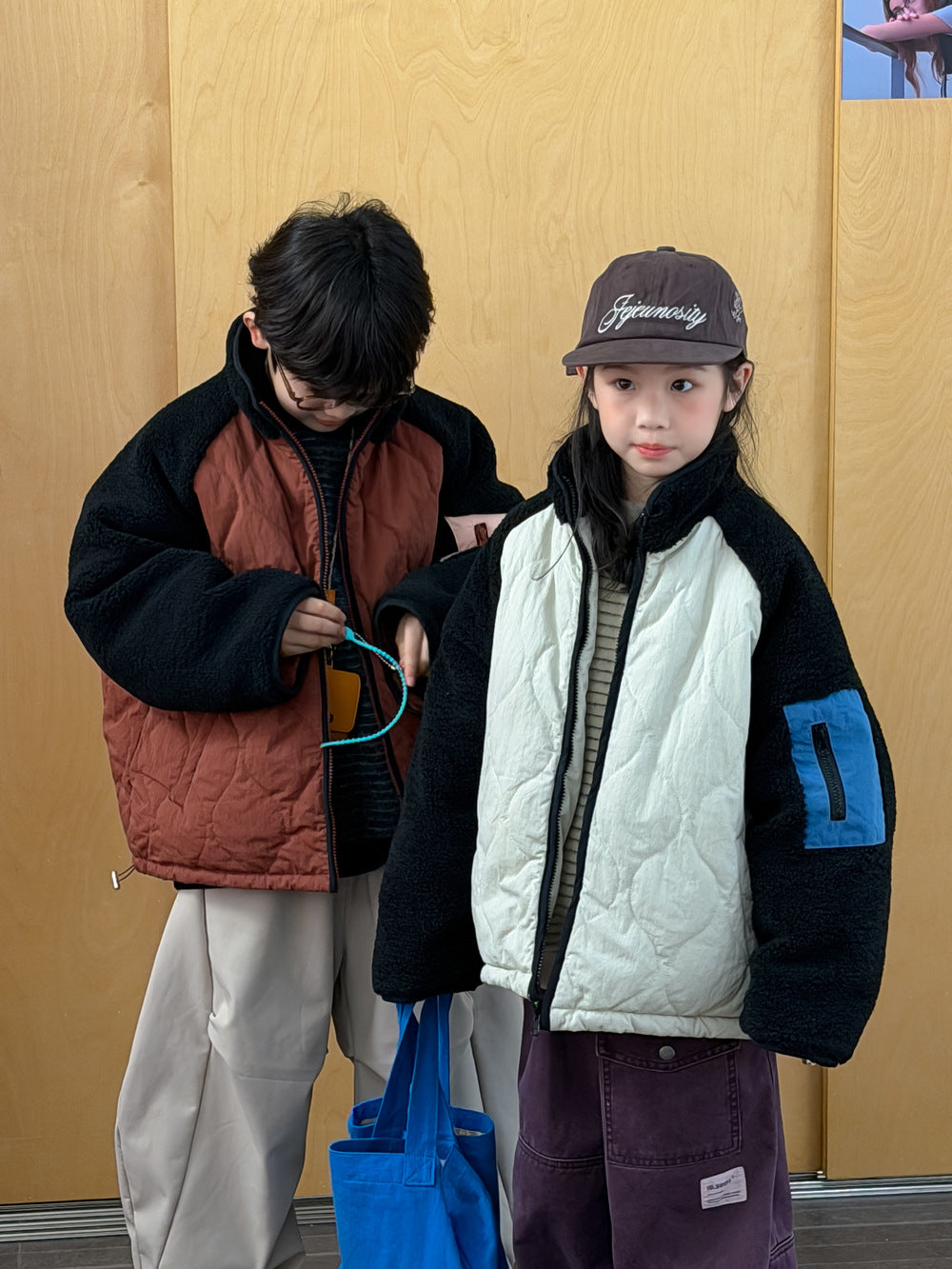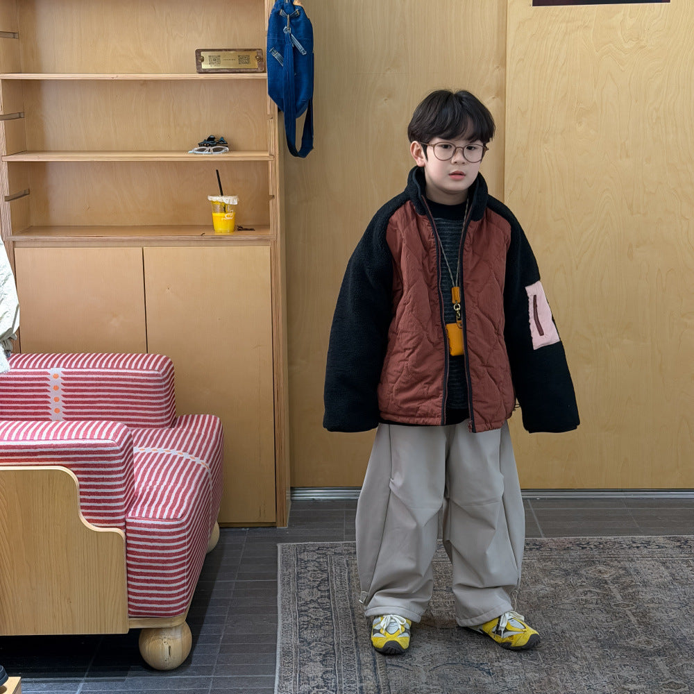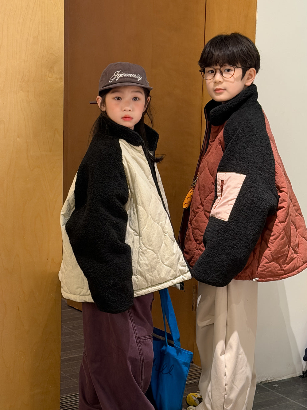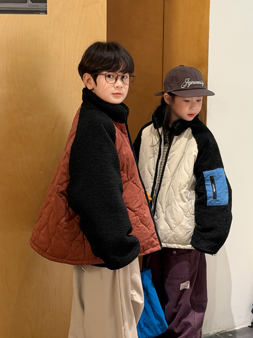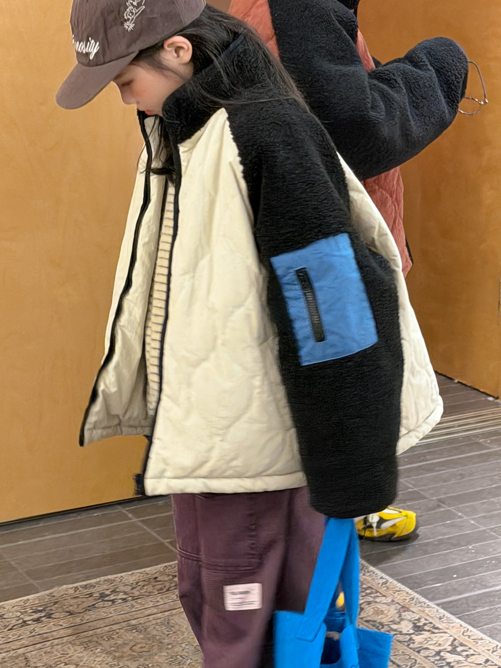2025D221SE-冬季韓版菱形壓紋拼接袖保暖外套