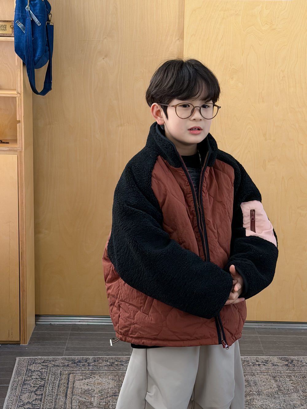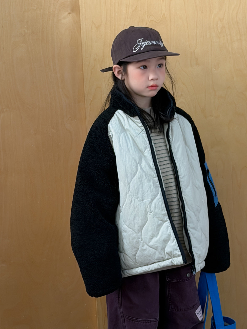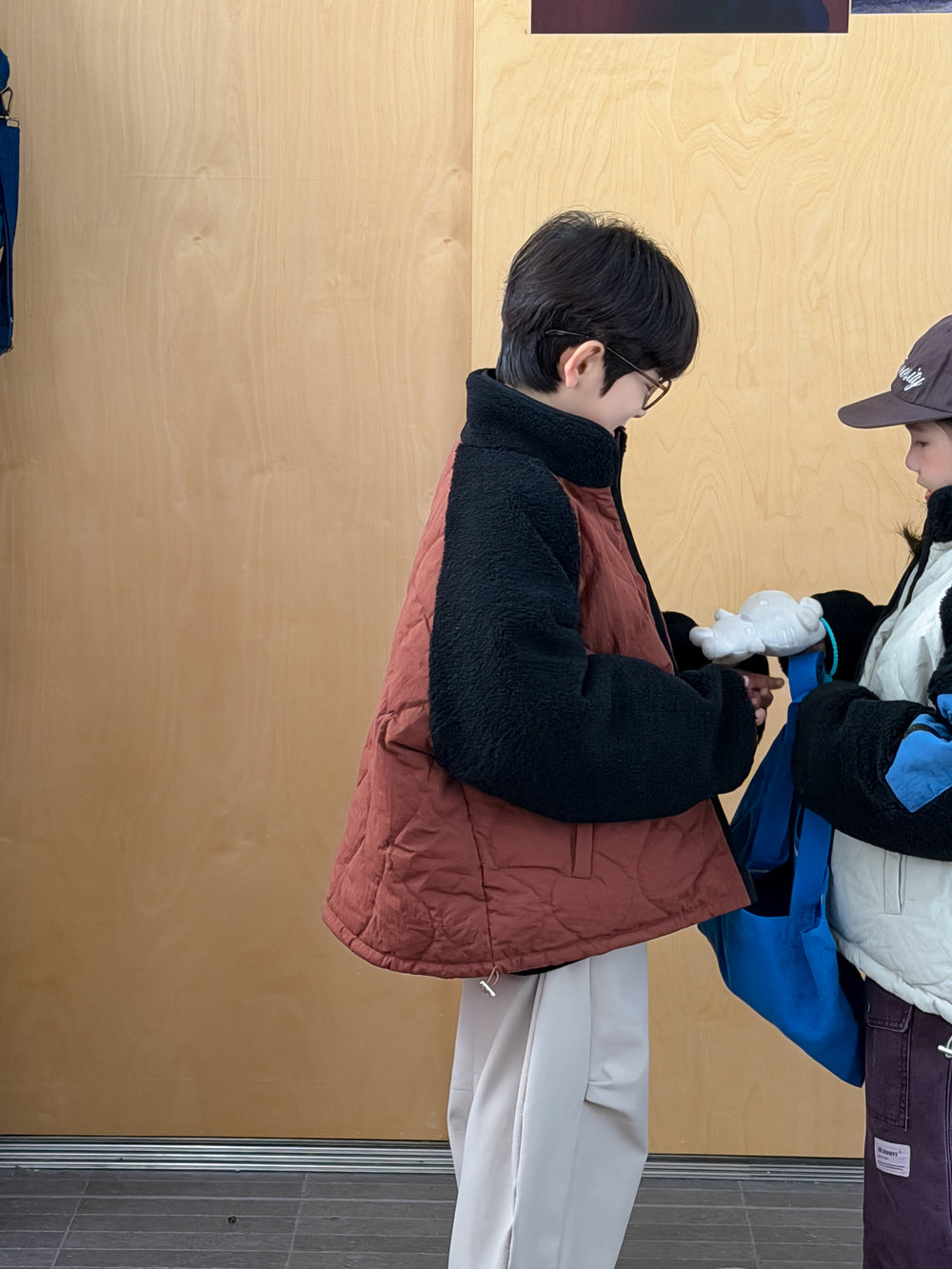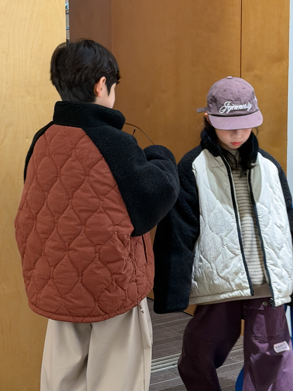 2025D221SE-冬季韓版菱形壓紋拼接袖保暖外套