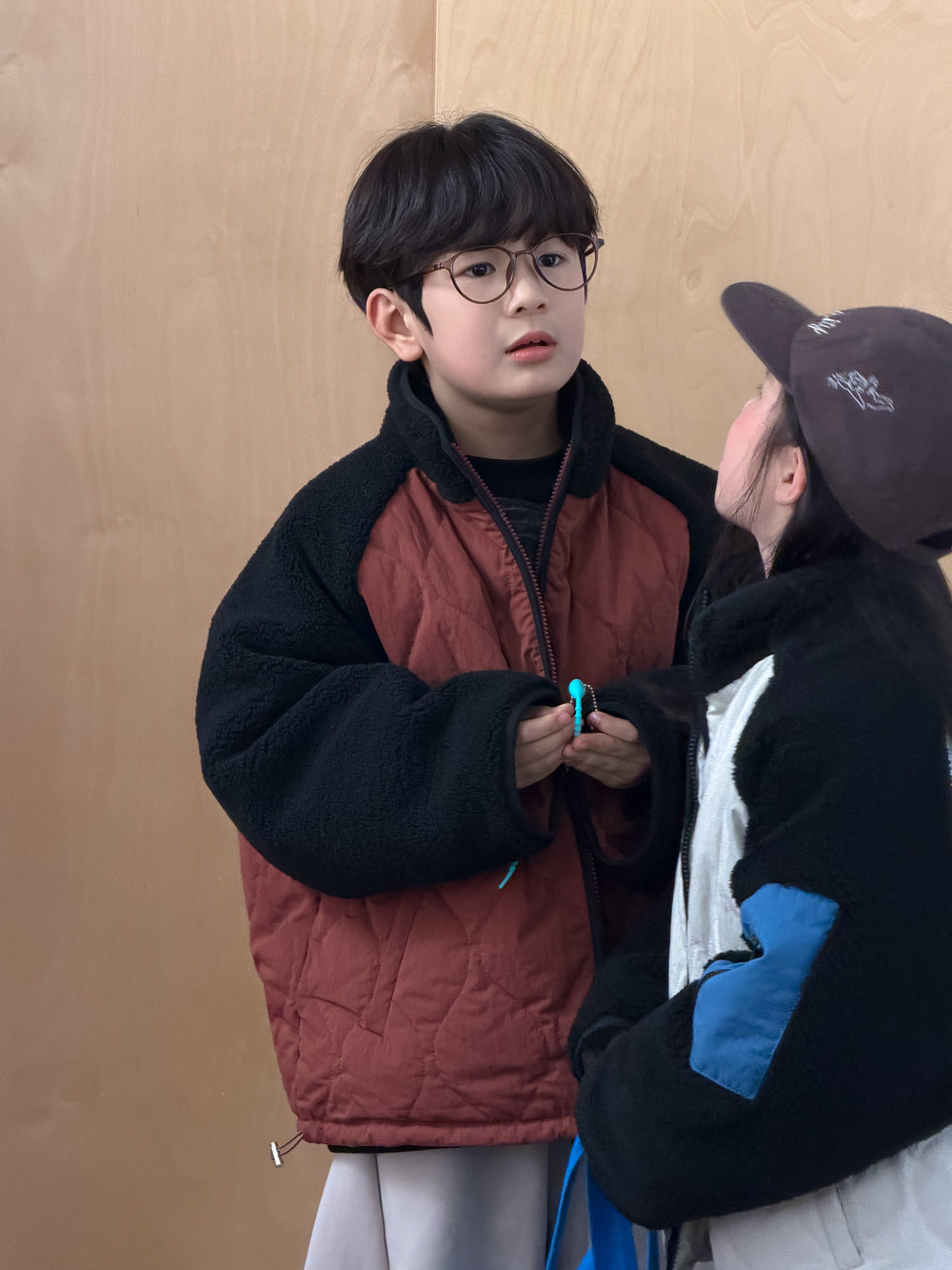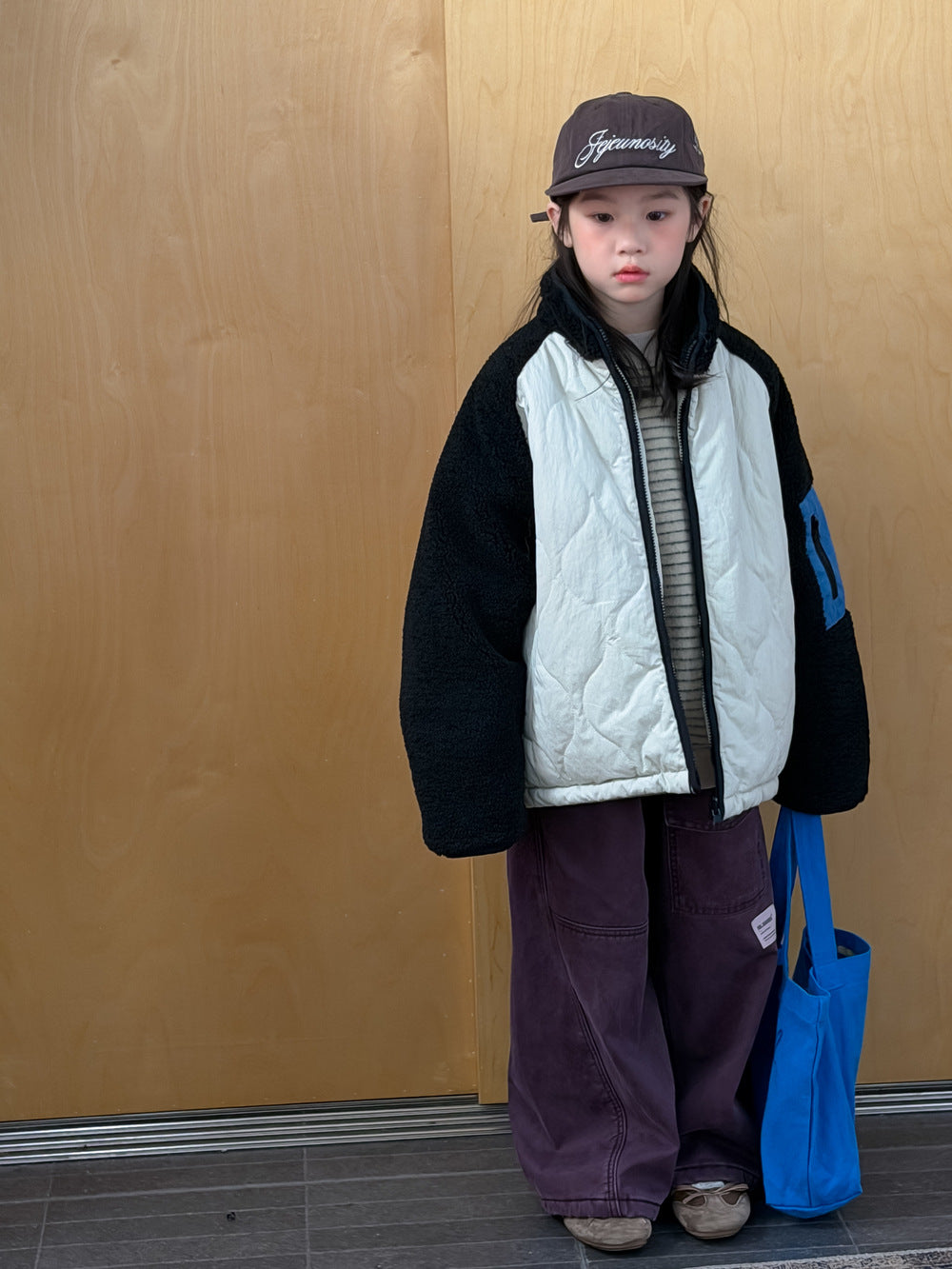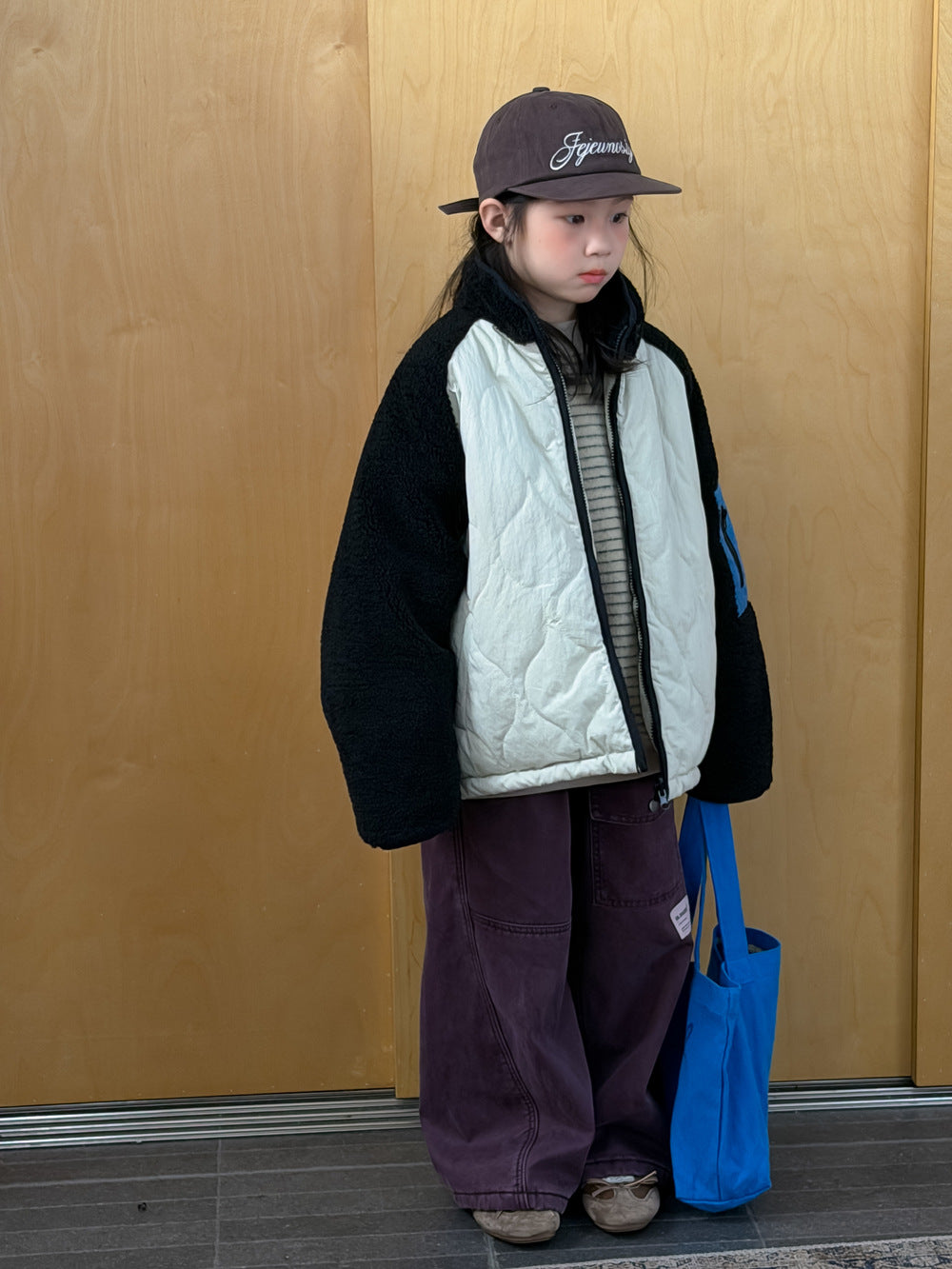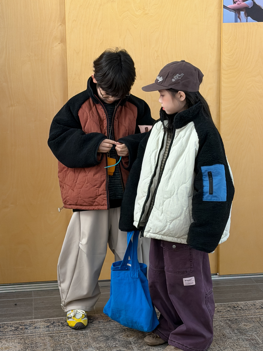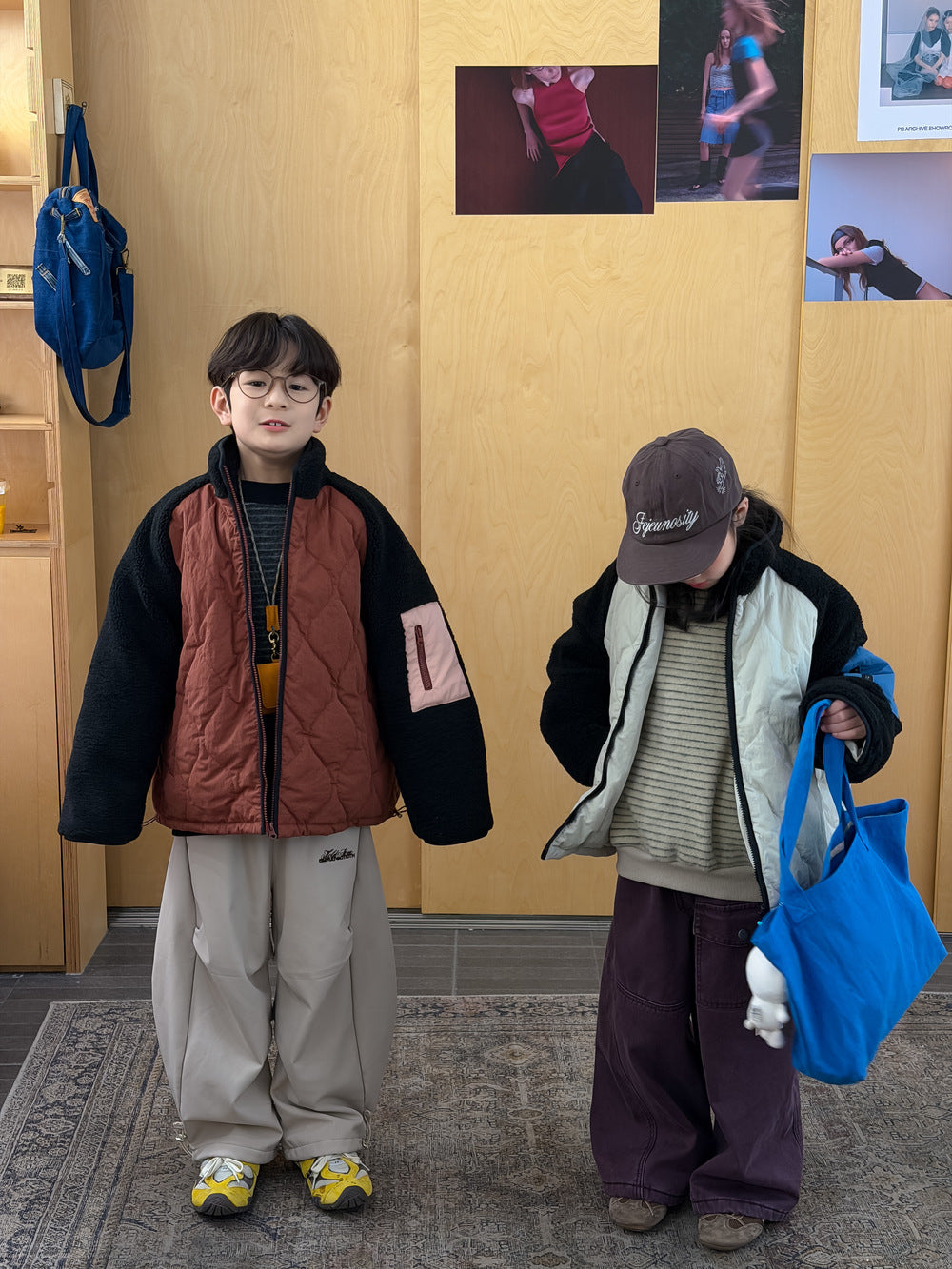 2025D221SE-冬季韓版菱形壓紋拼接袖保暖外套
