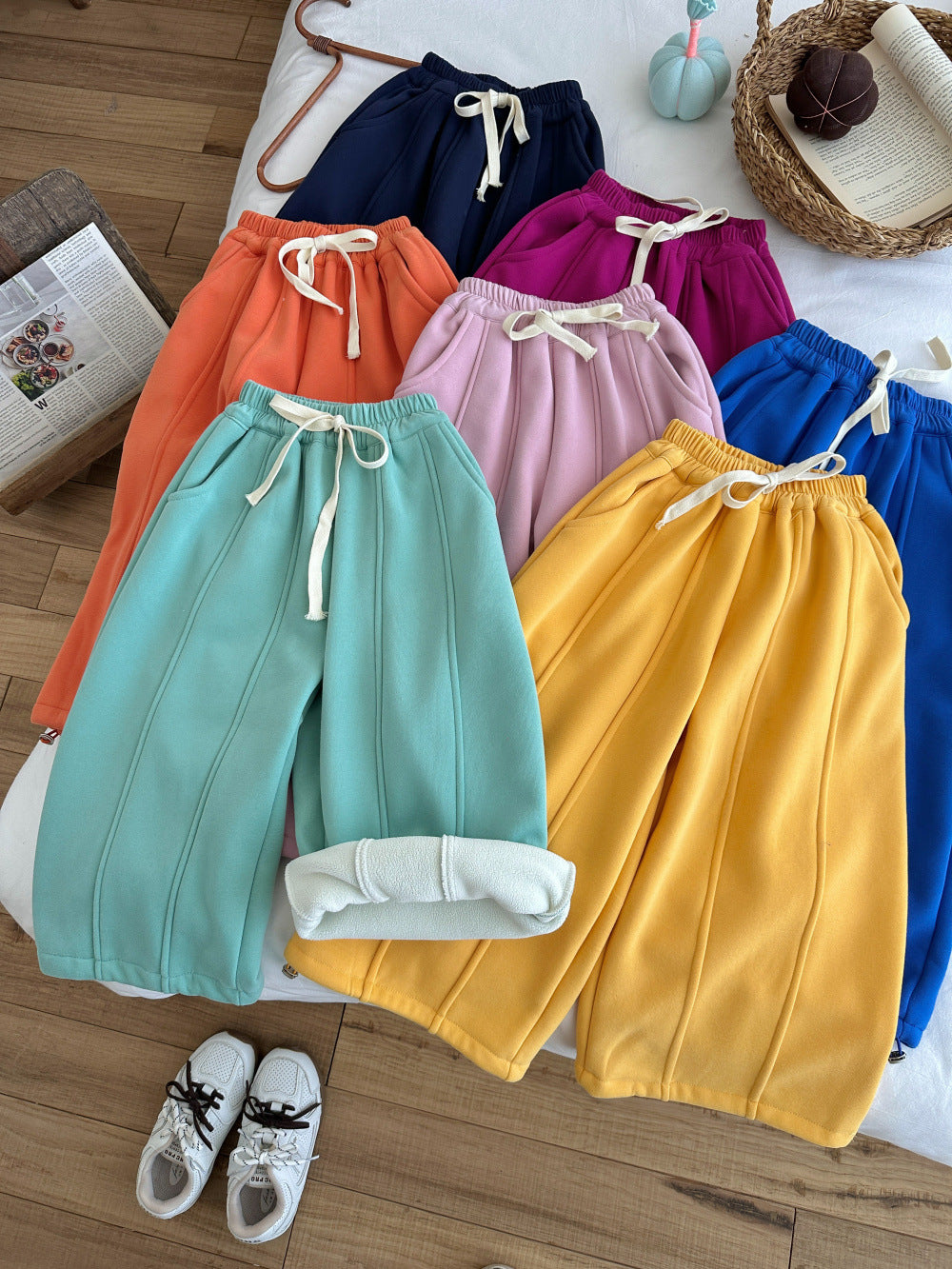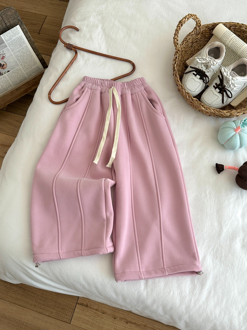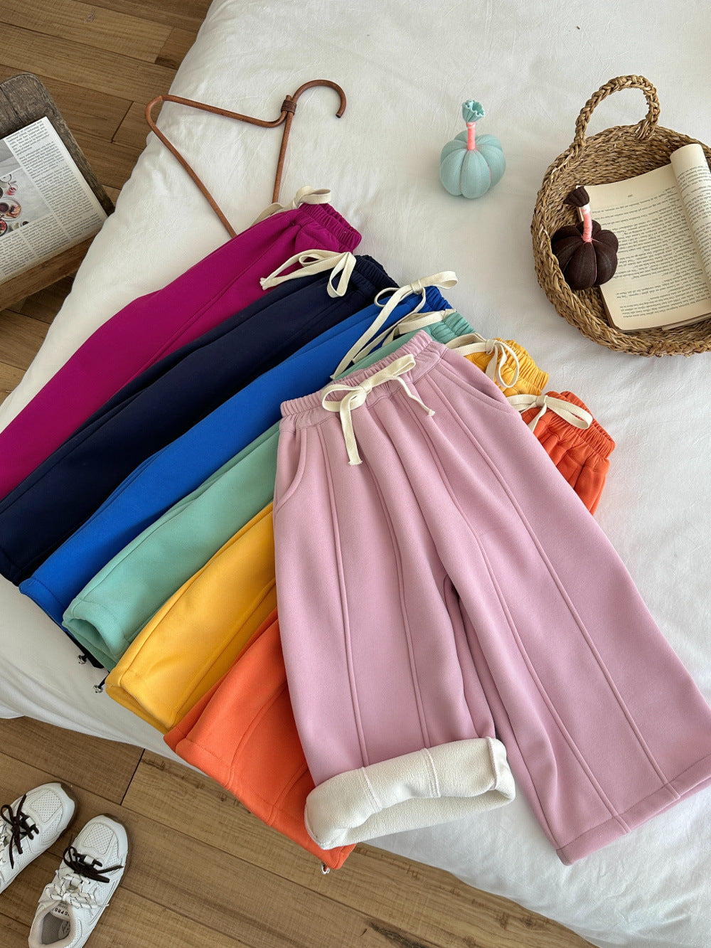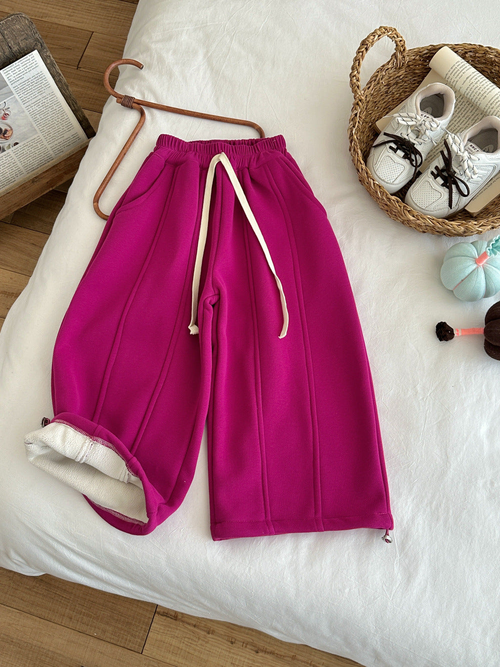 2025D299PA-秋冬季百搭休閒寬鬆加絨收腳長褲