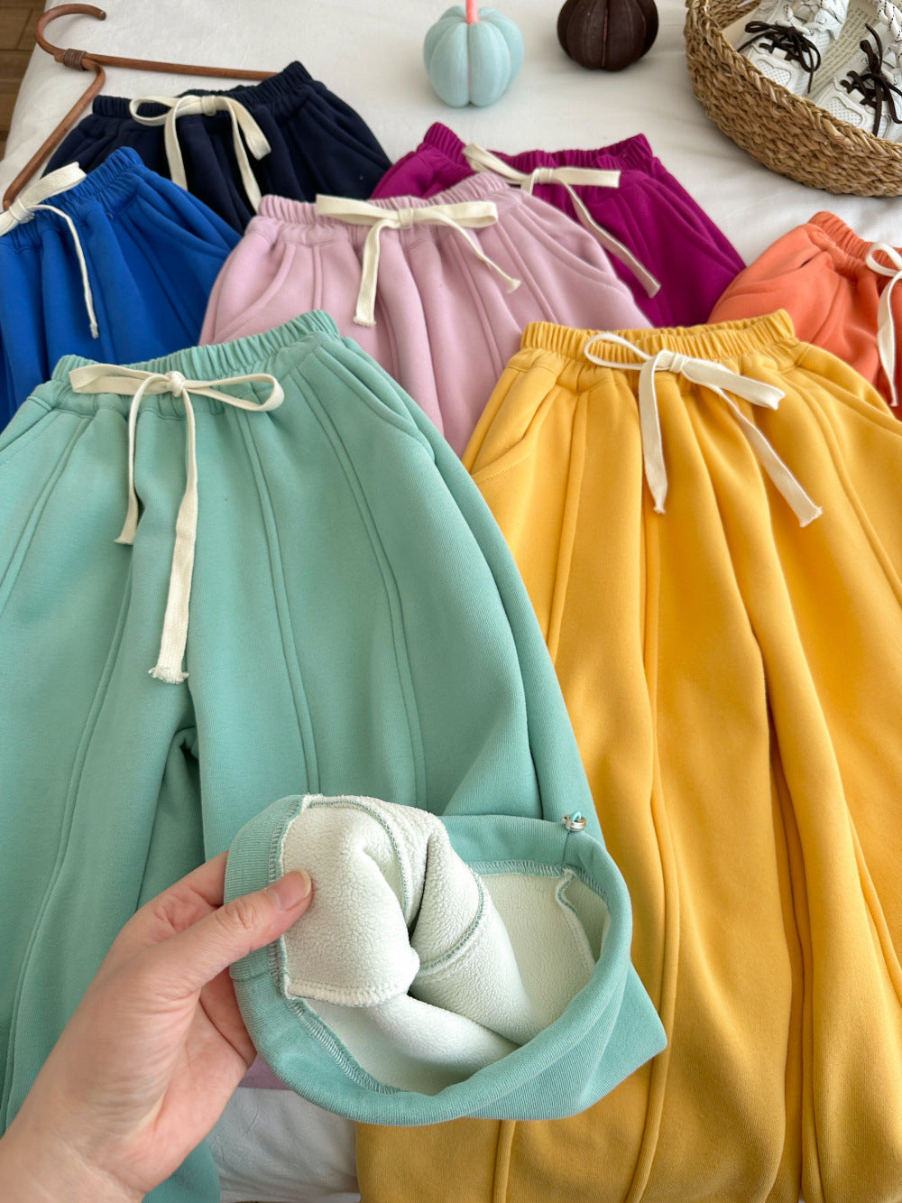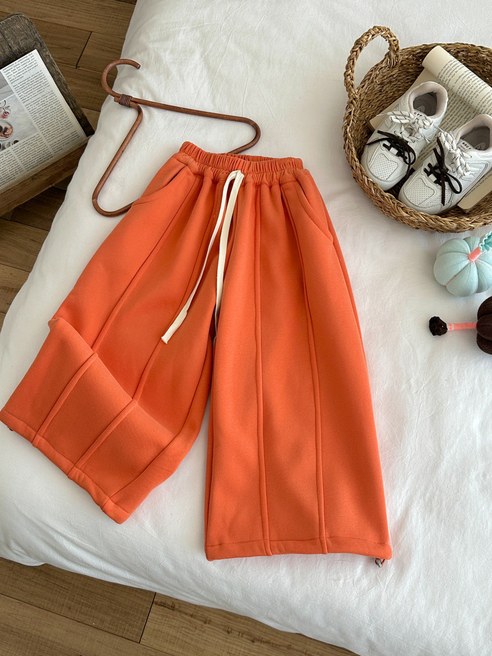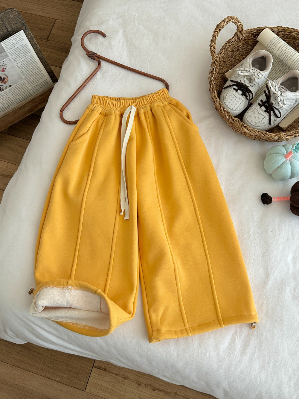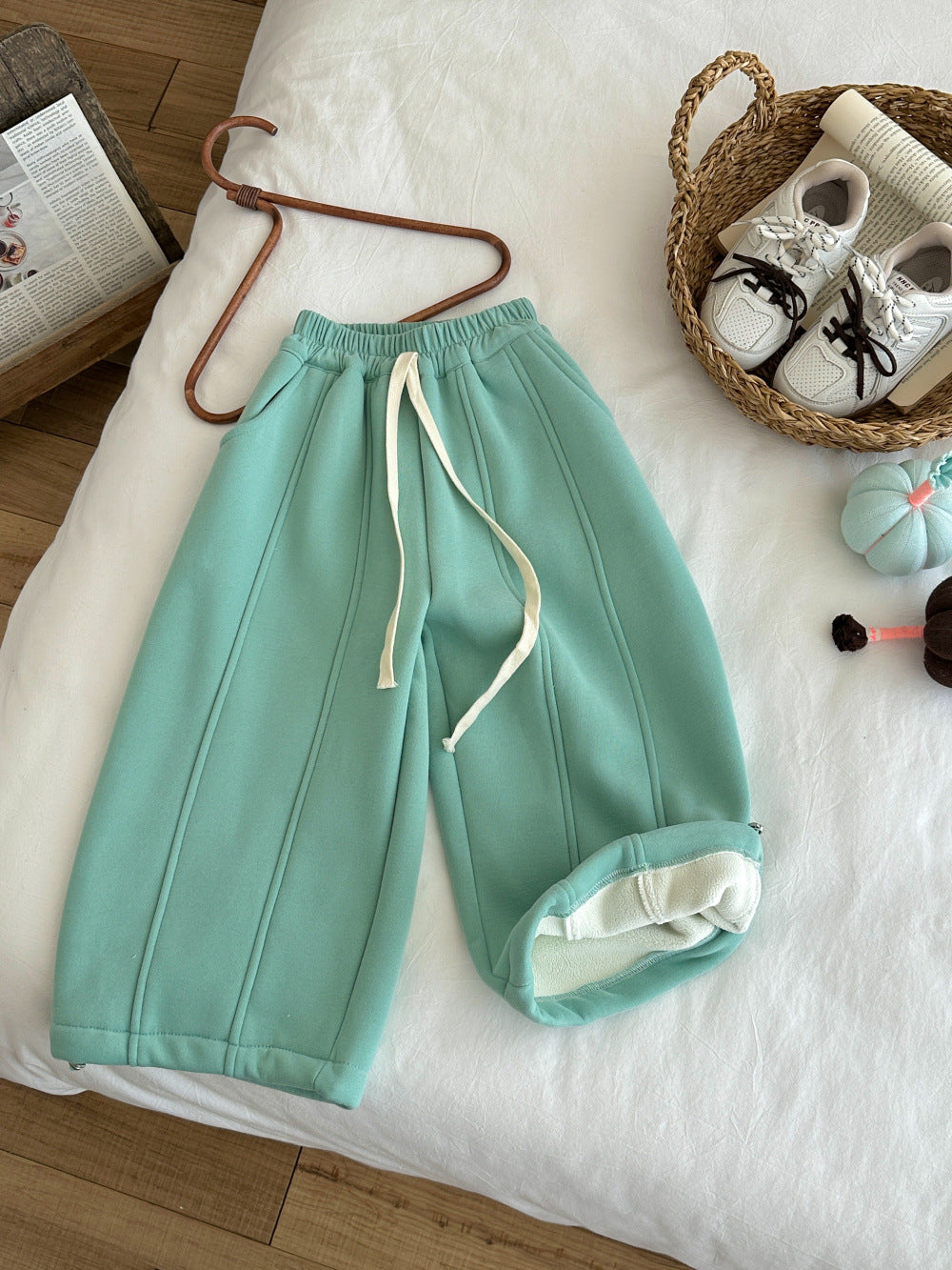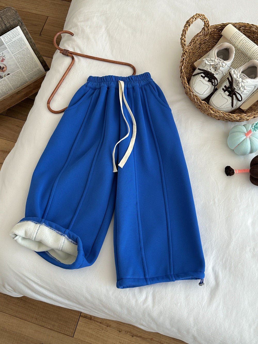2025D299PA-秋冬季百搭休閒寬鬆加絨收腳長褲