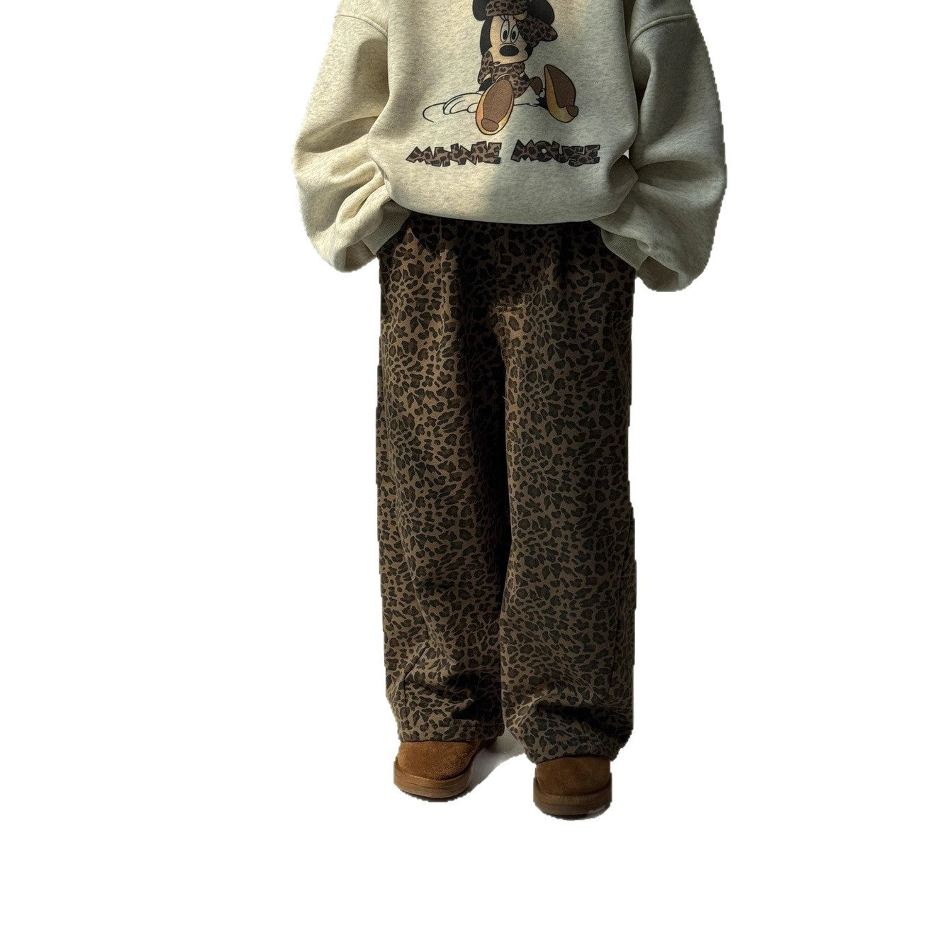 2025D80PA-冬季韓版豹紋加絨直筒長褲