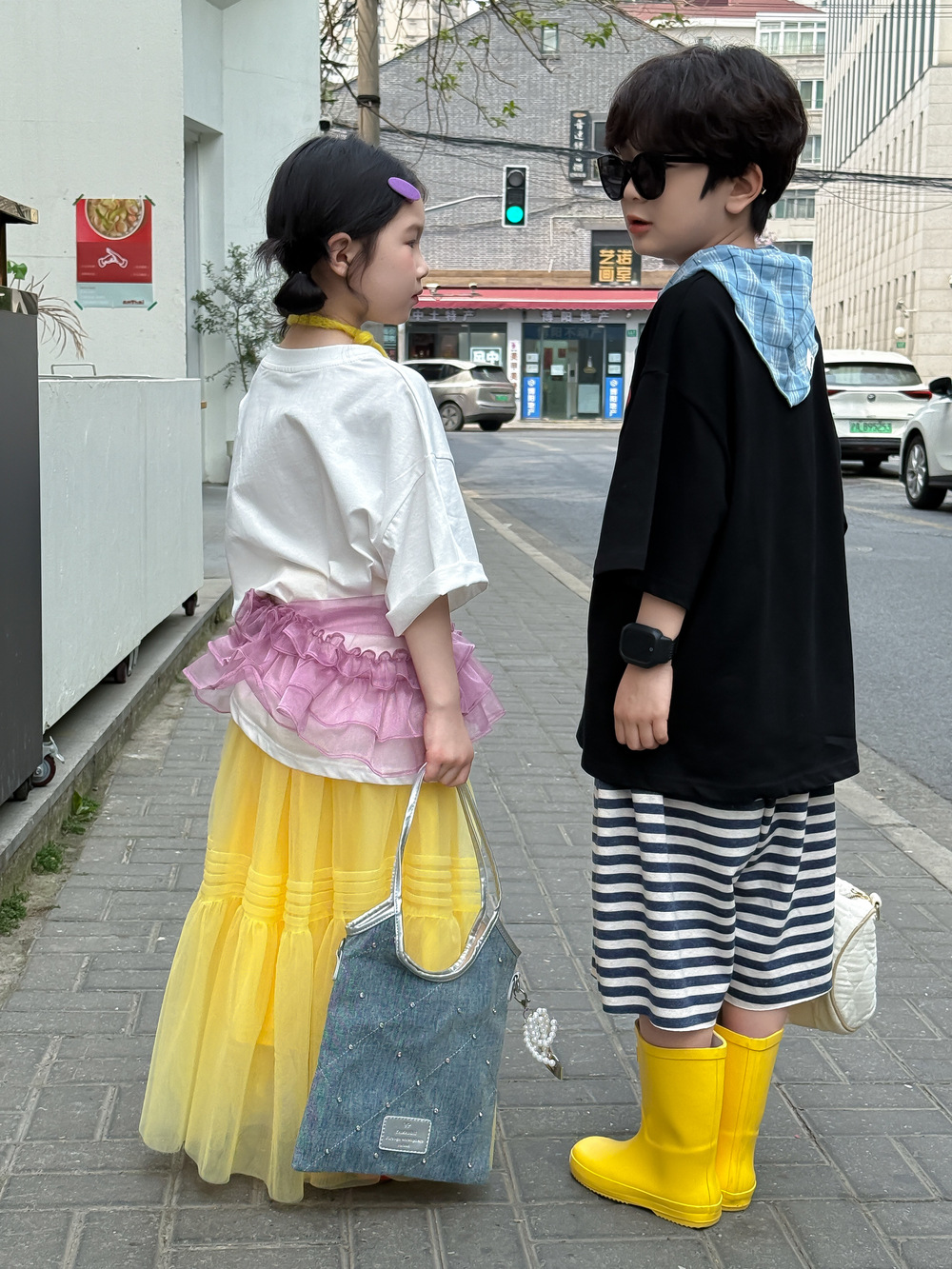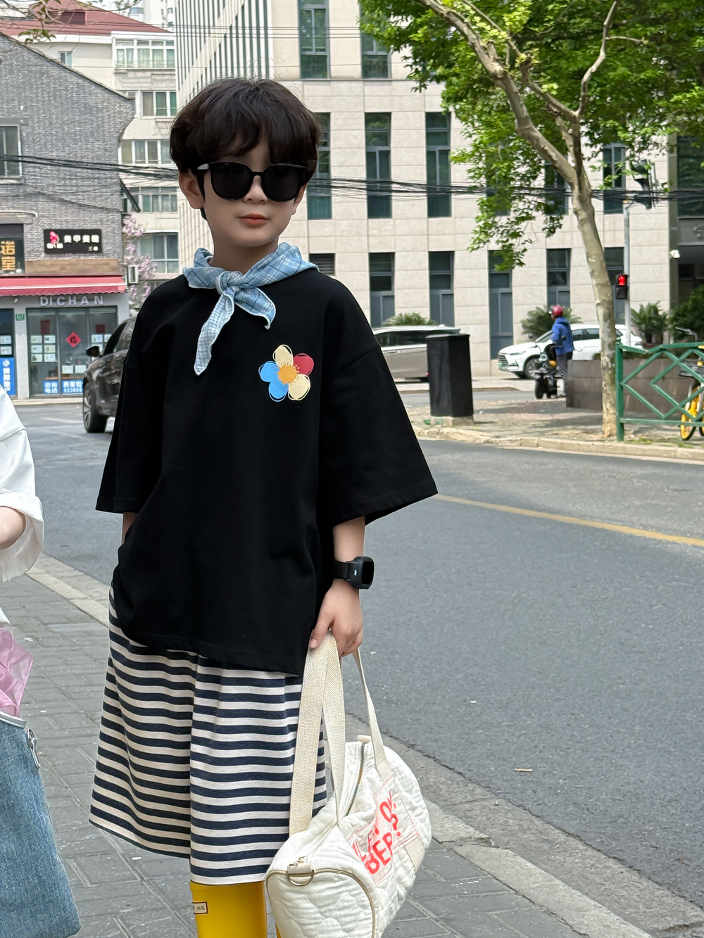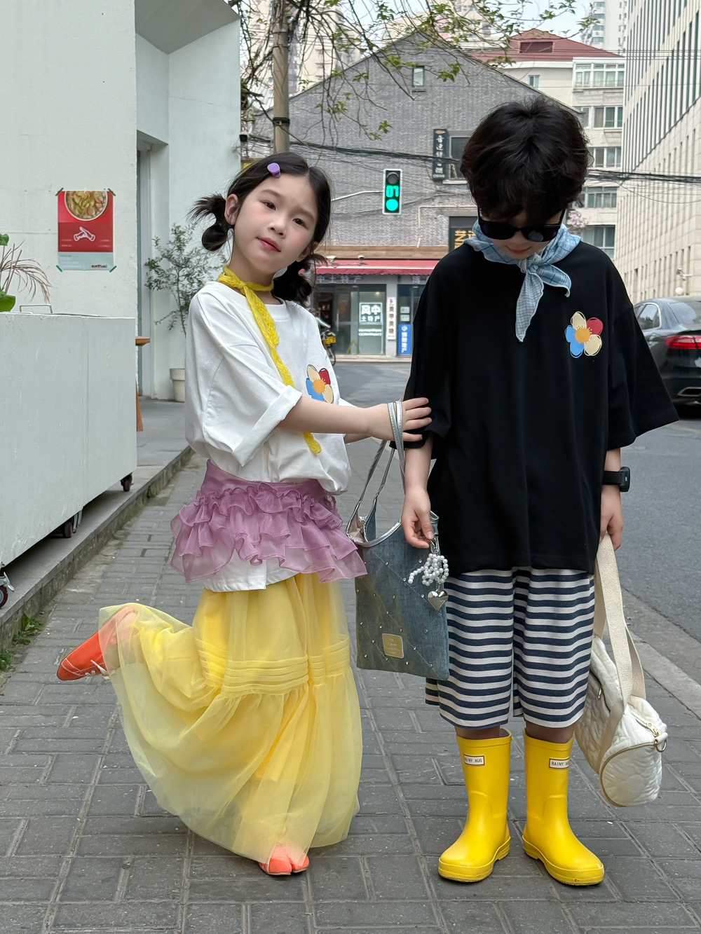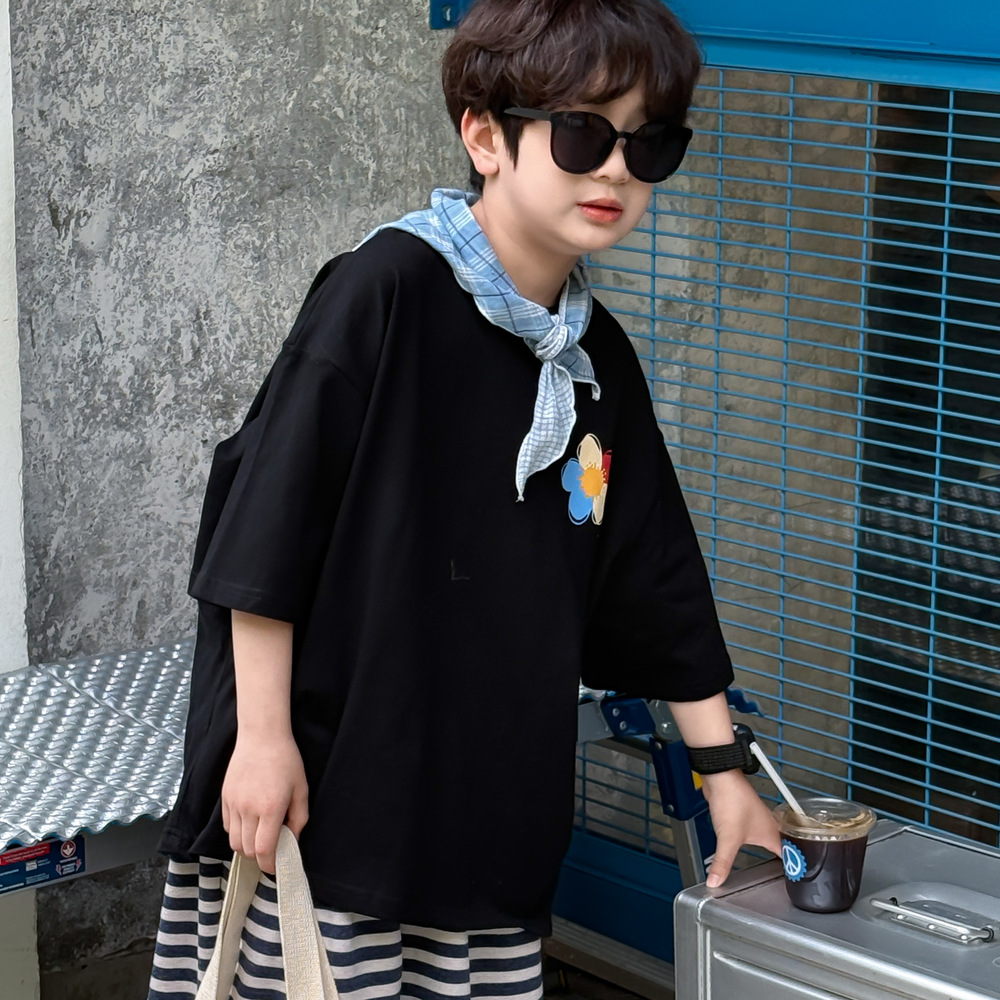 2025X112SE-夏季男女童韓版太陽花休閒短袖圓領寬鬆上衣
