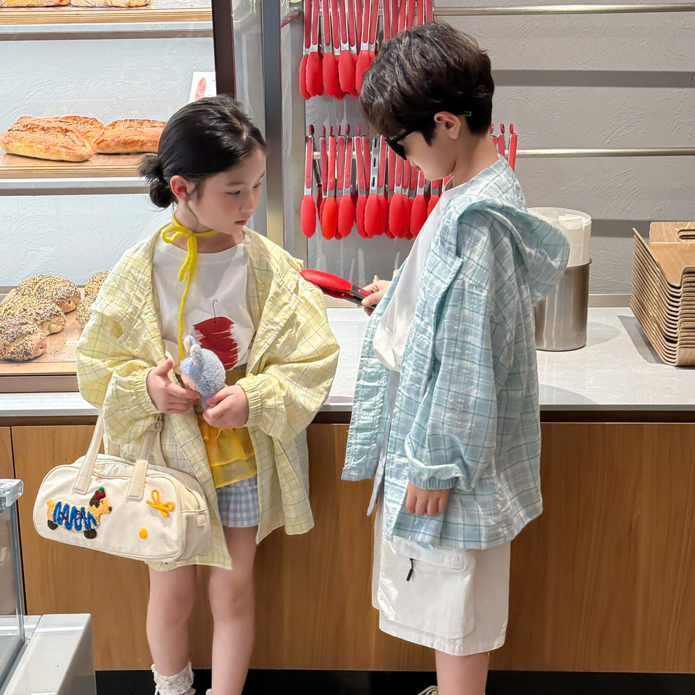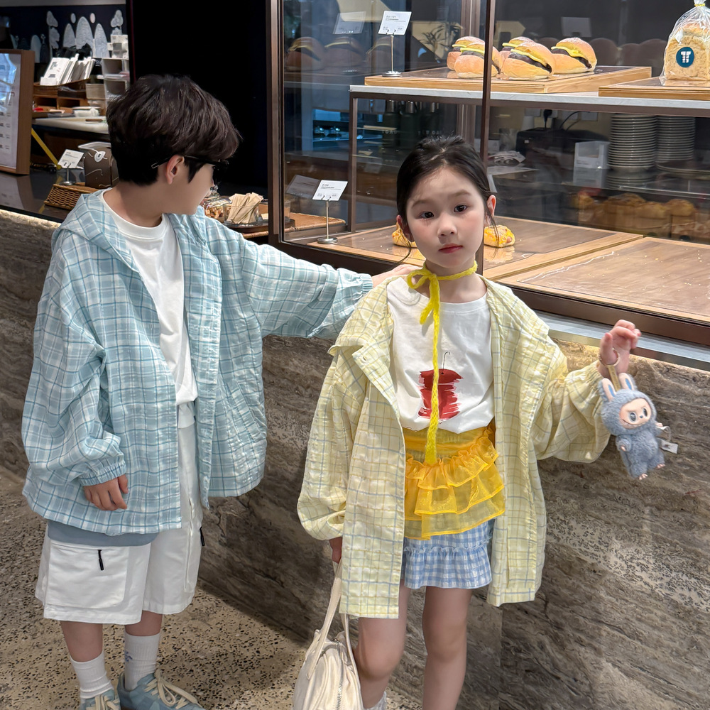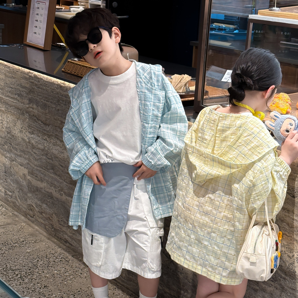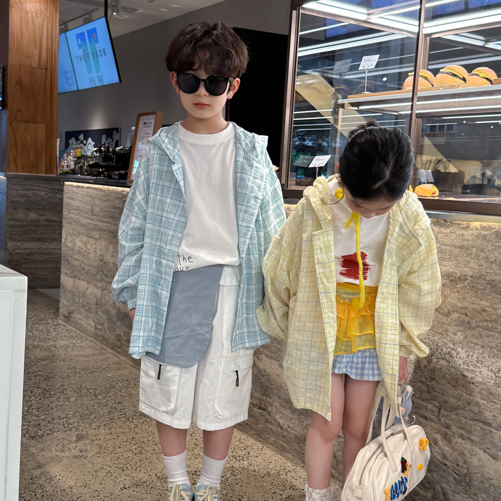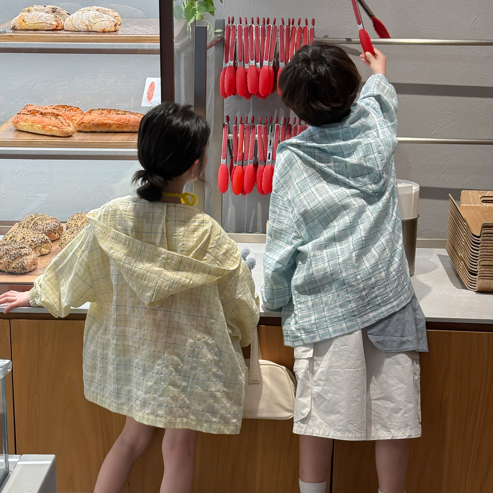 2025X122SE-夏季男女童韓版格紋連帽防曬衣