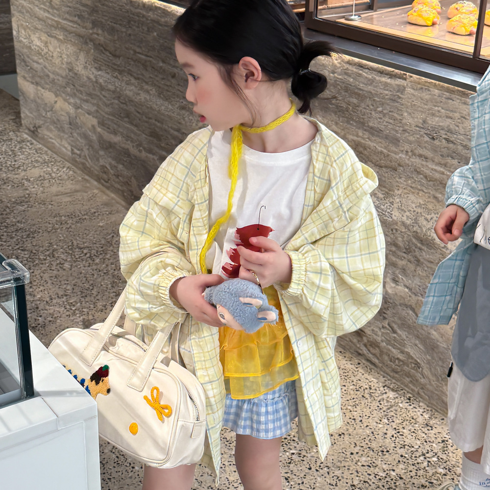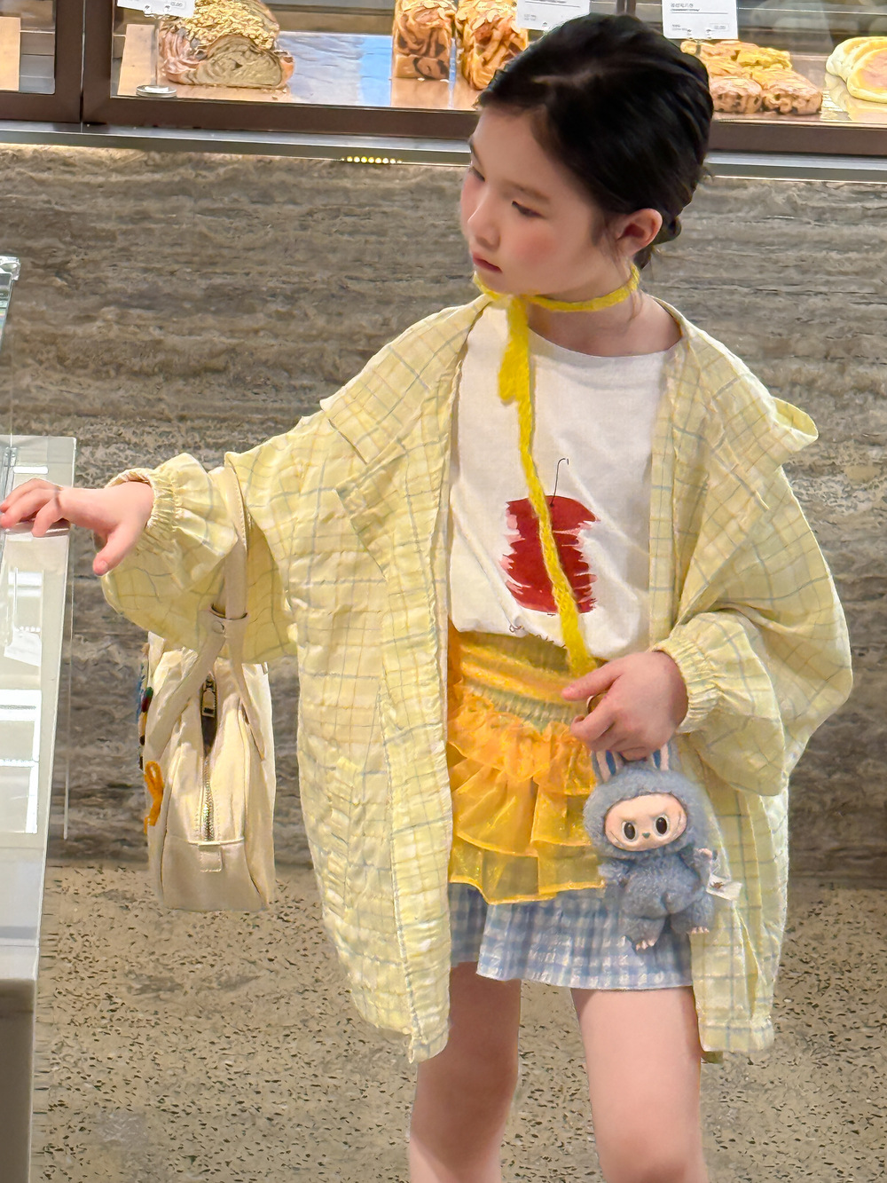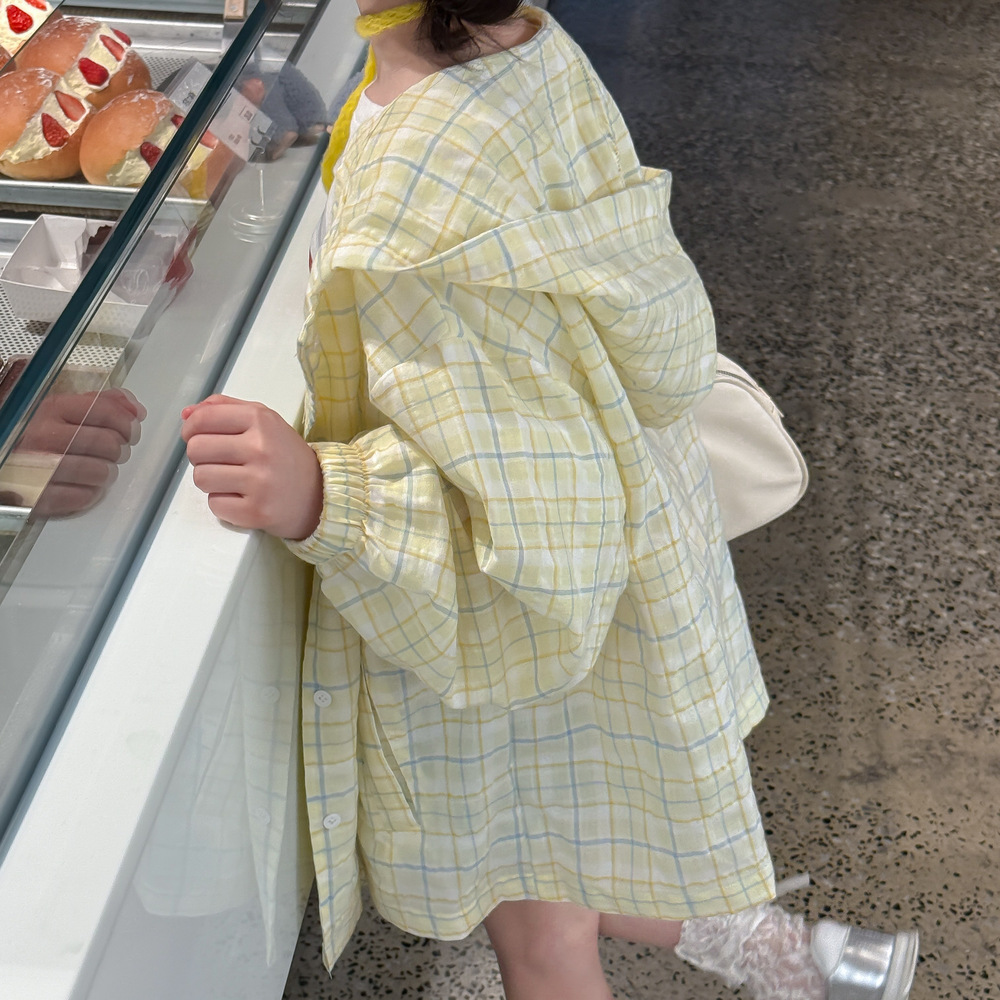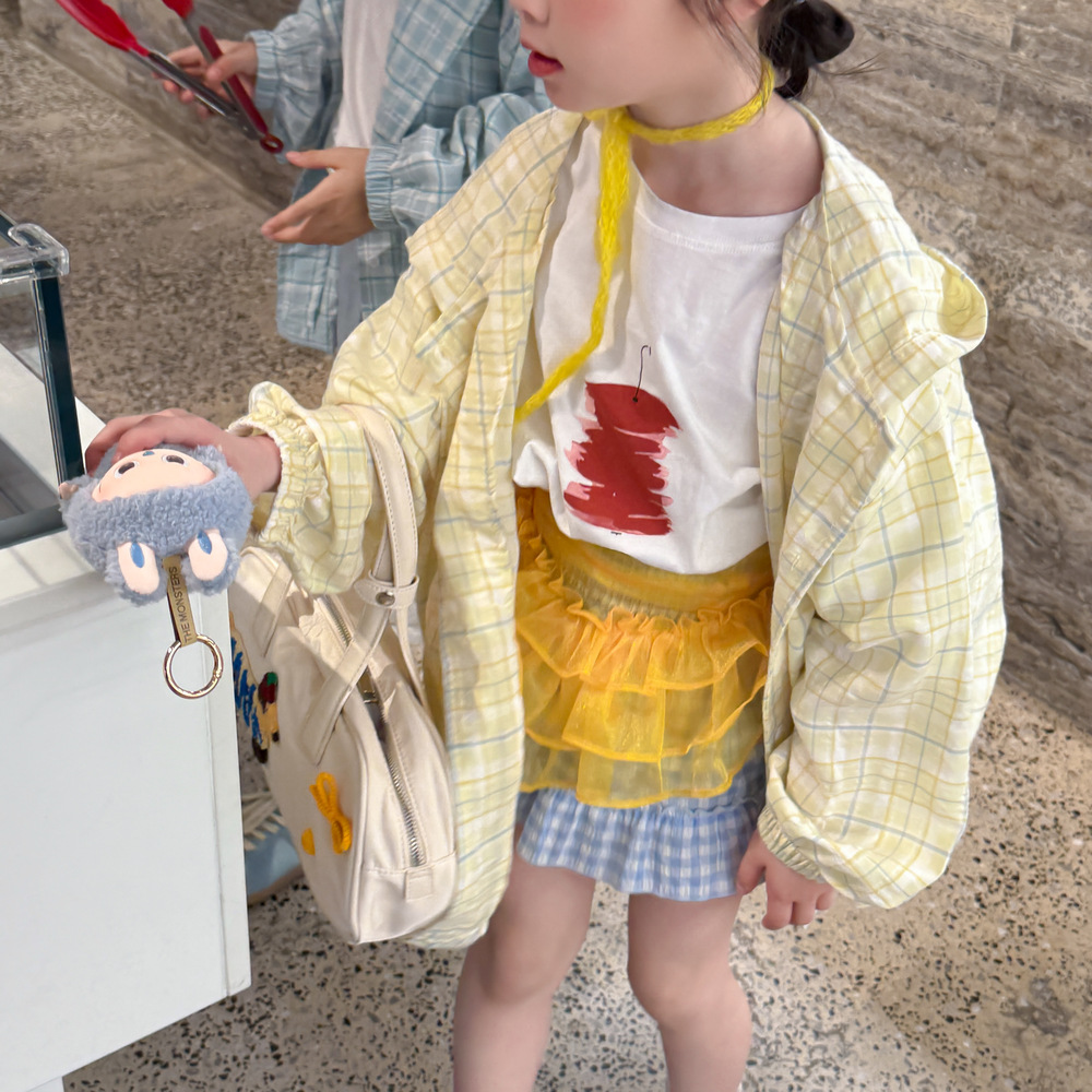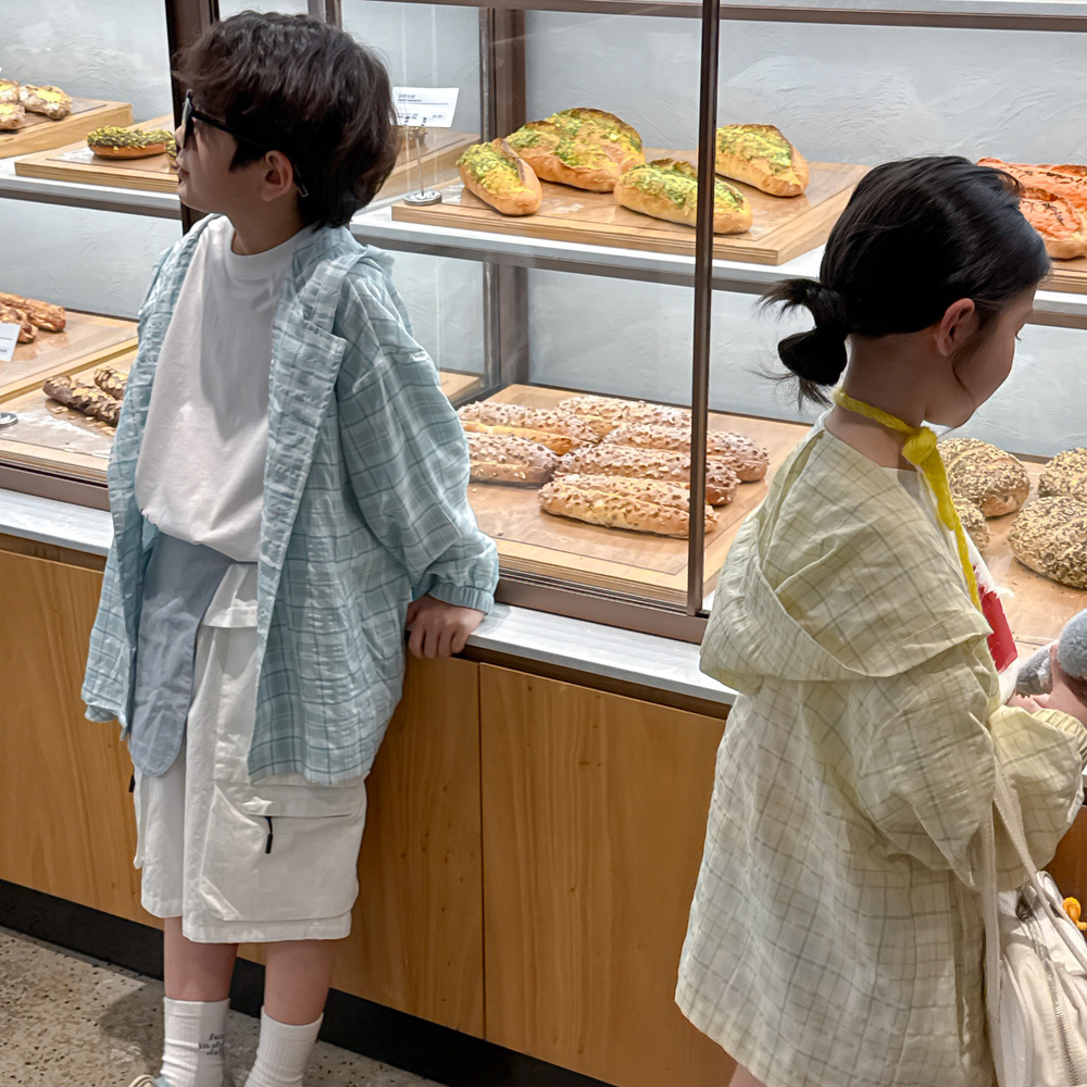 2025X122SE-夏季男女童韓版格紋連帽防曬衣