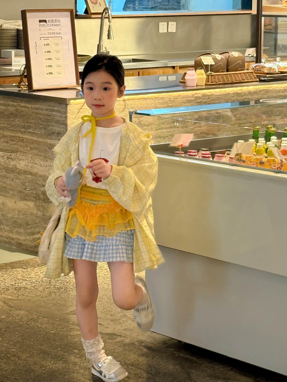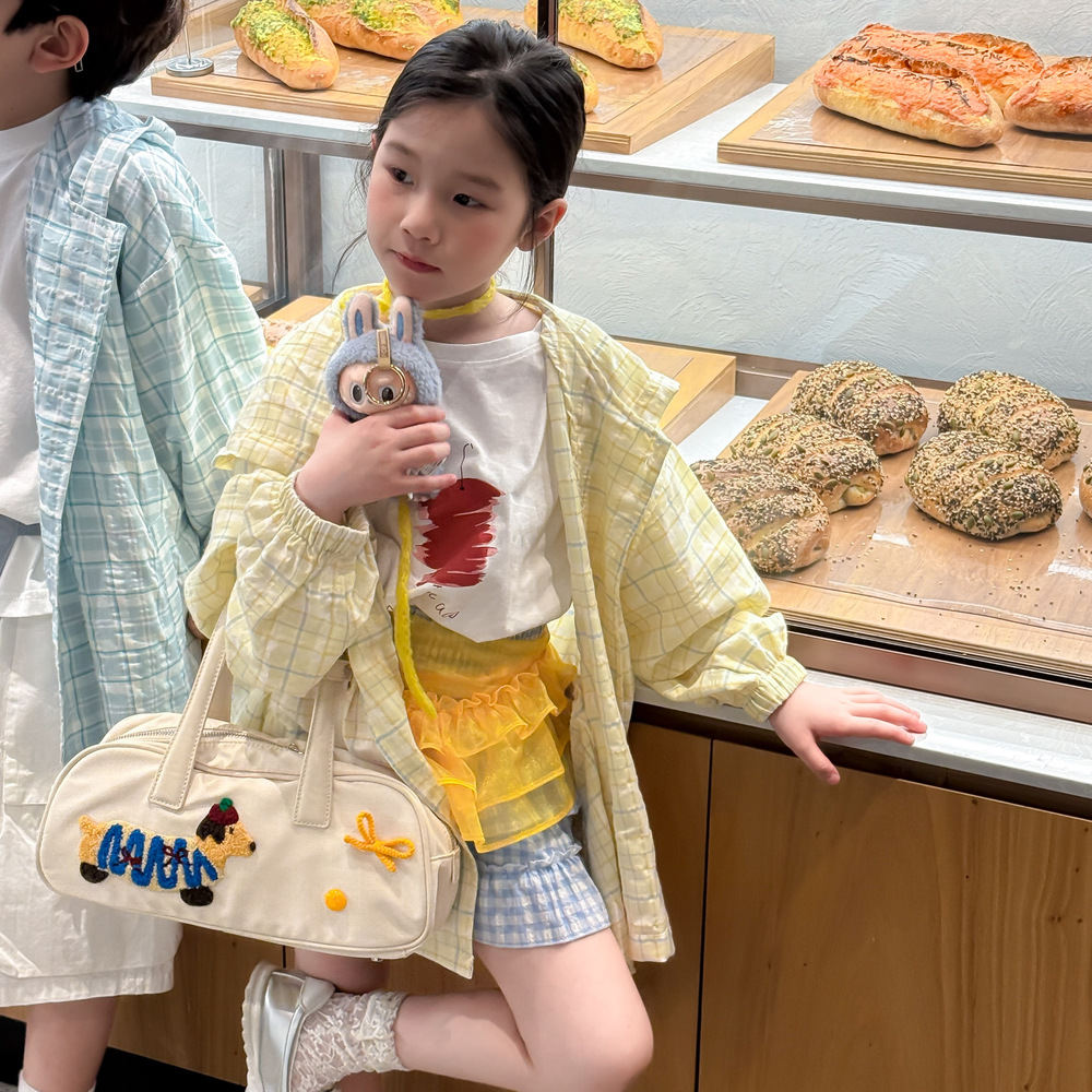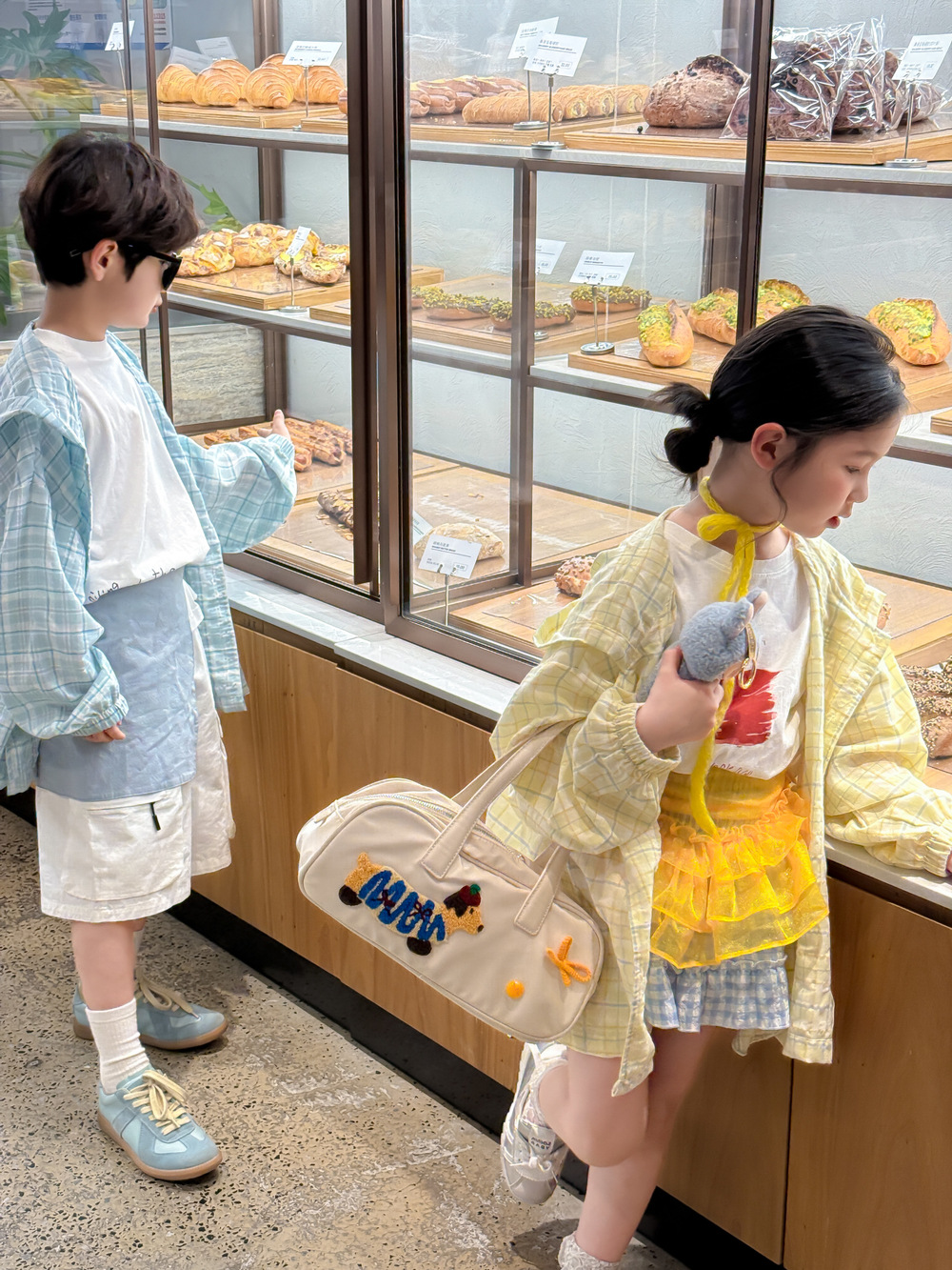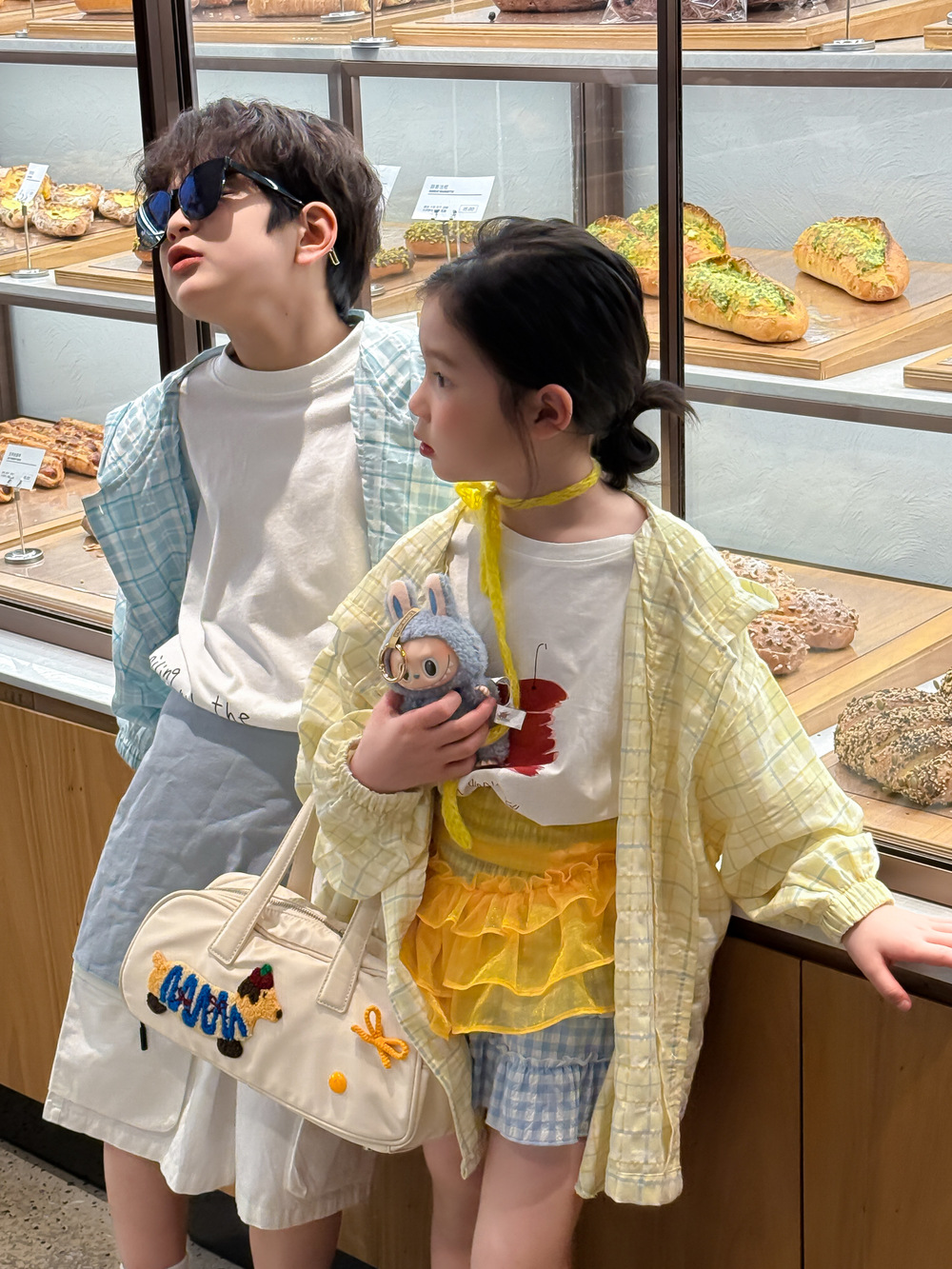 2025X122SE-夏季男女童韓版格紋連帽防曬衣
