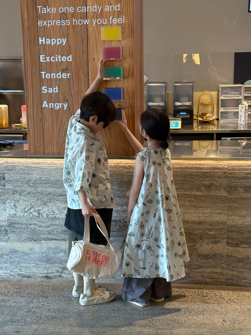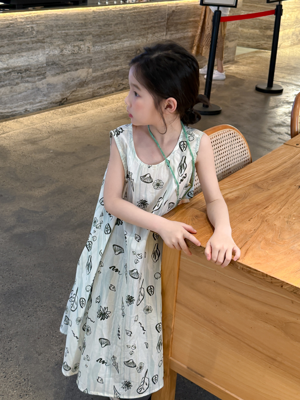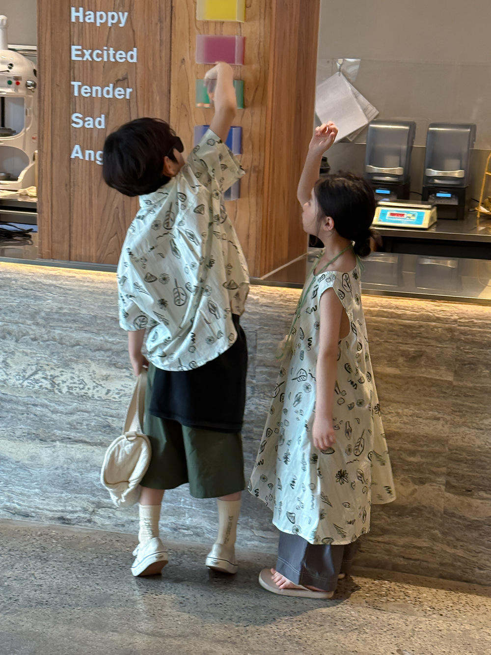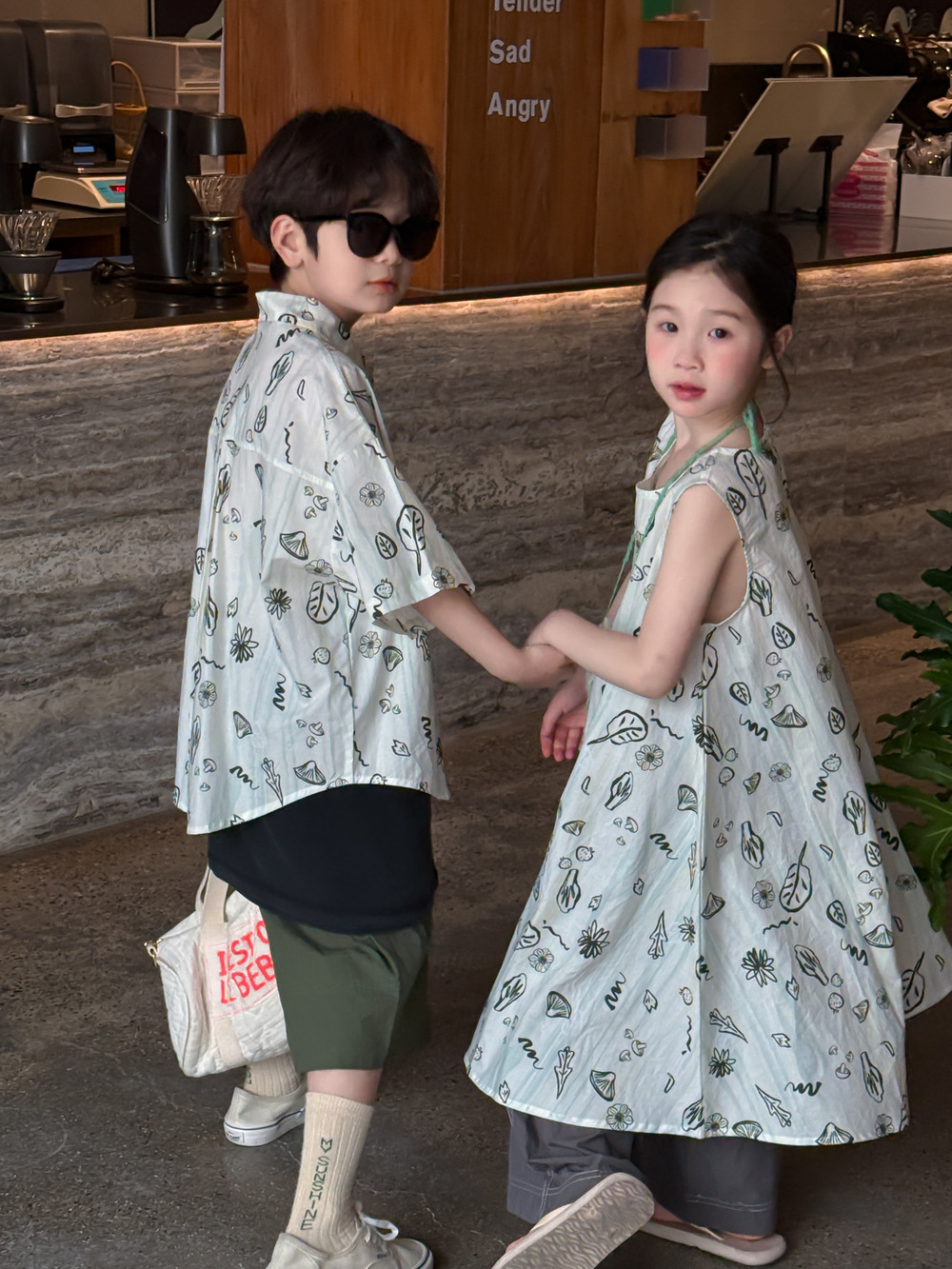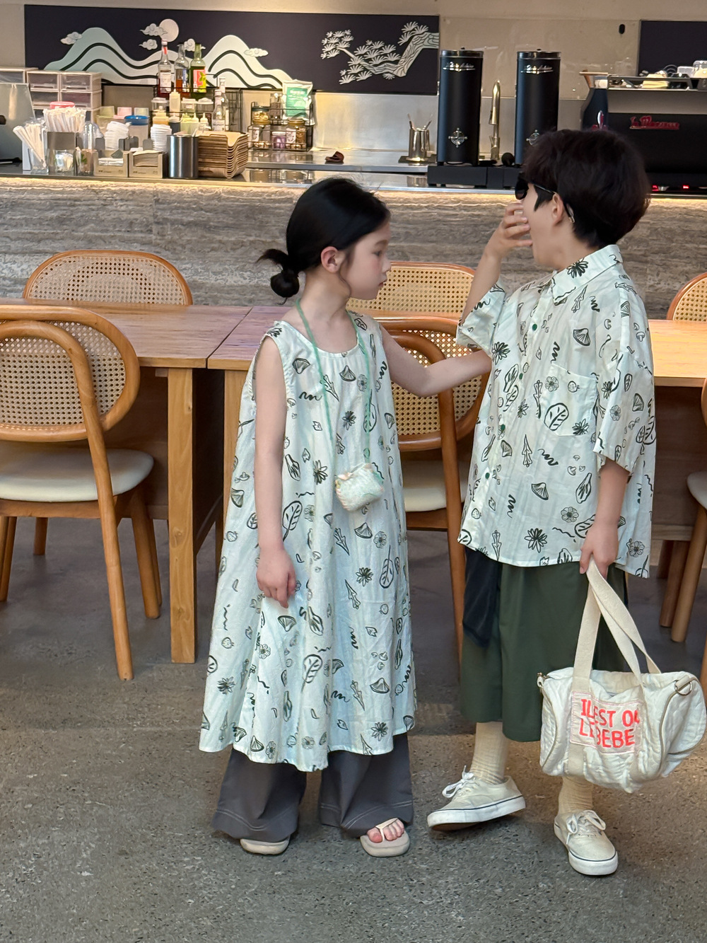 2025X123TG-夏季男女童韓版滿印短袖襯衫短褲套裝&休閒背心洋裝