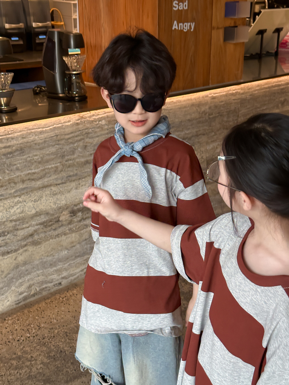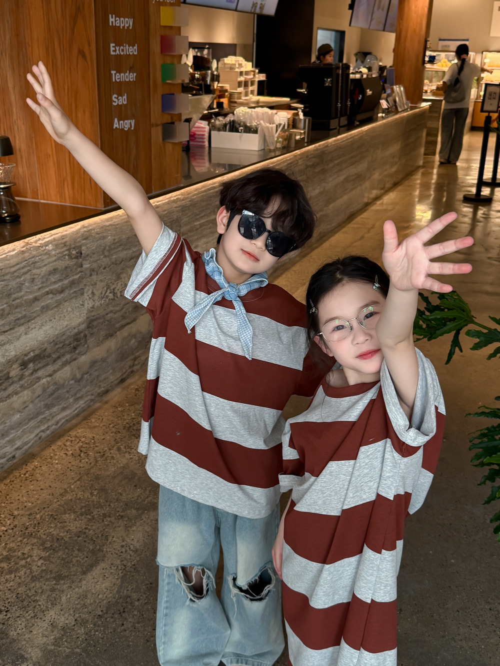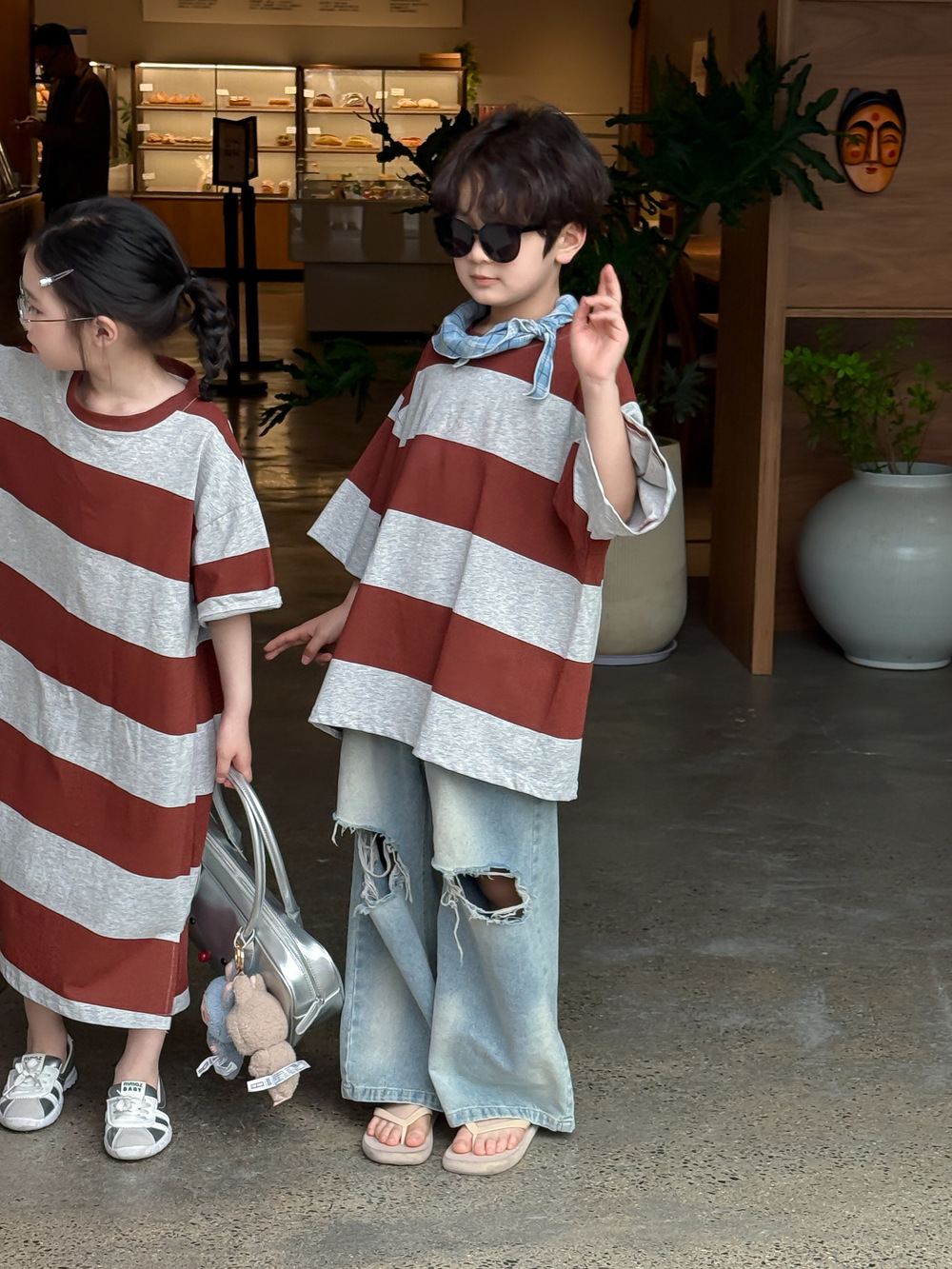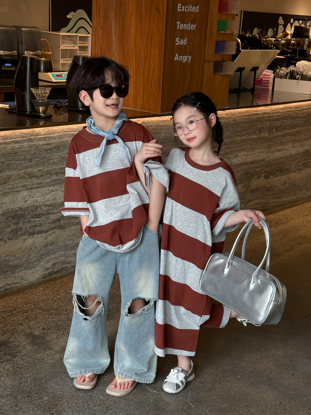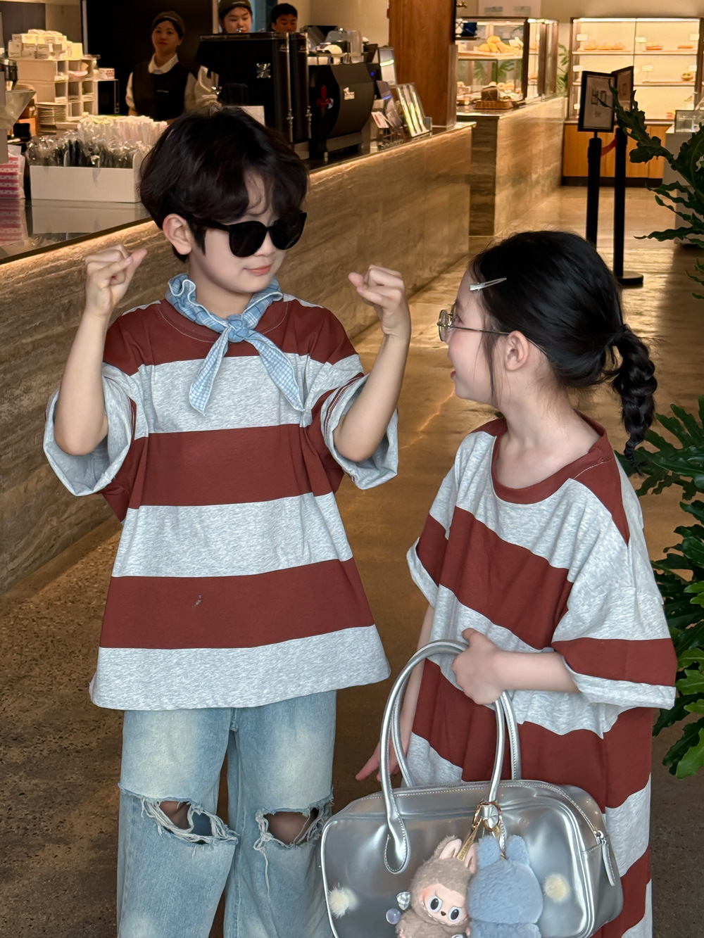 2025X127SE-夏季男女童韓版寬條紋休閒短袖兄妹裝