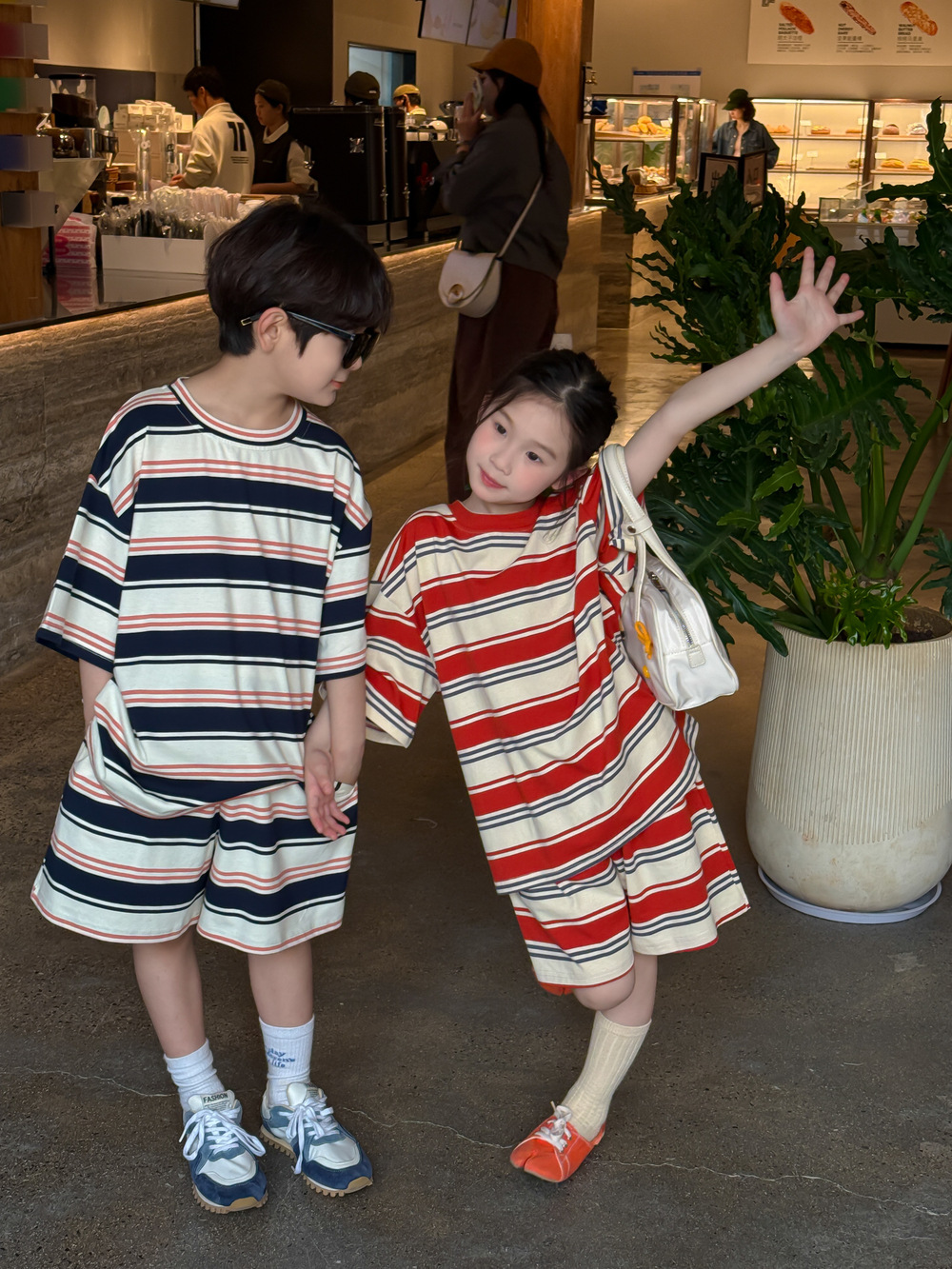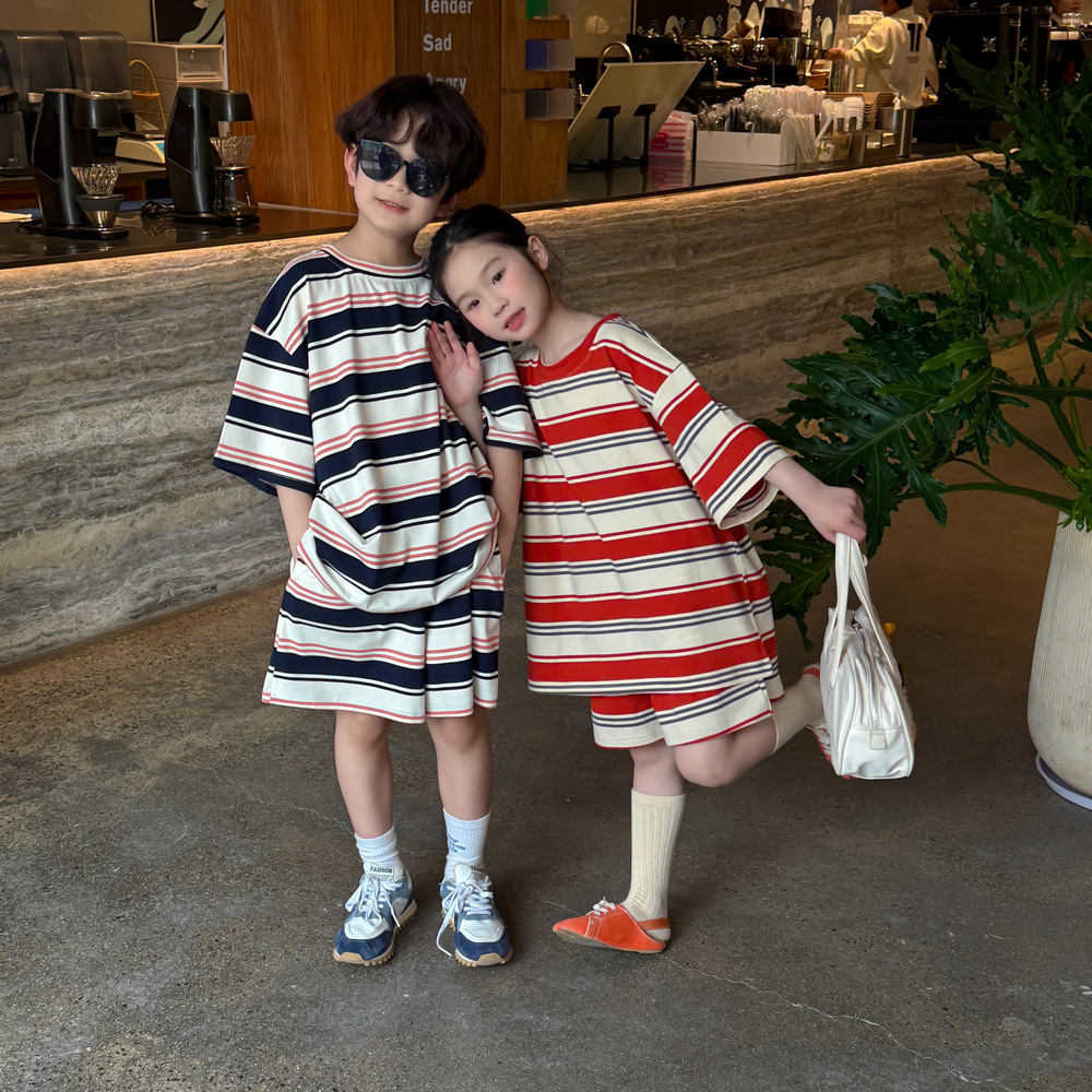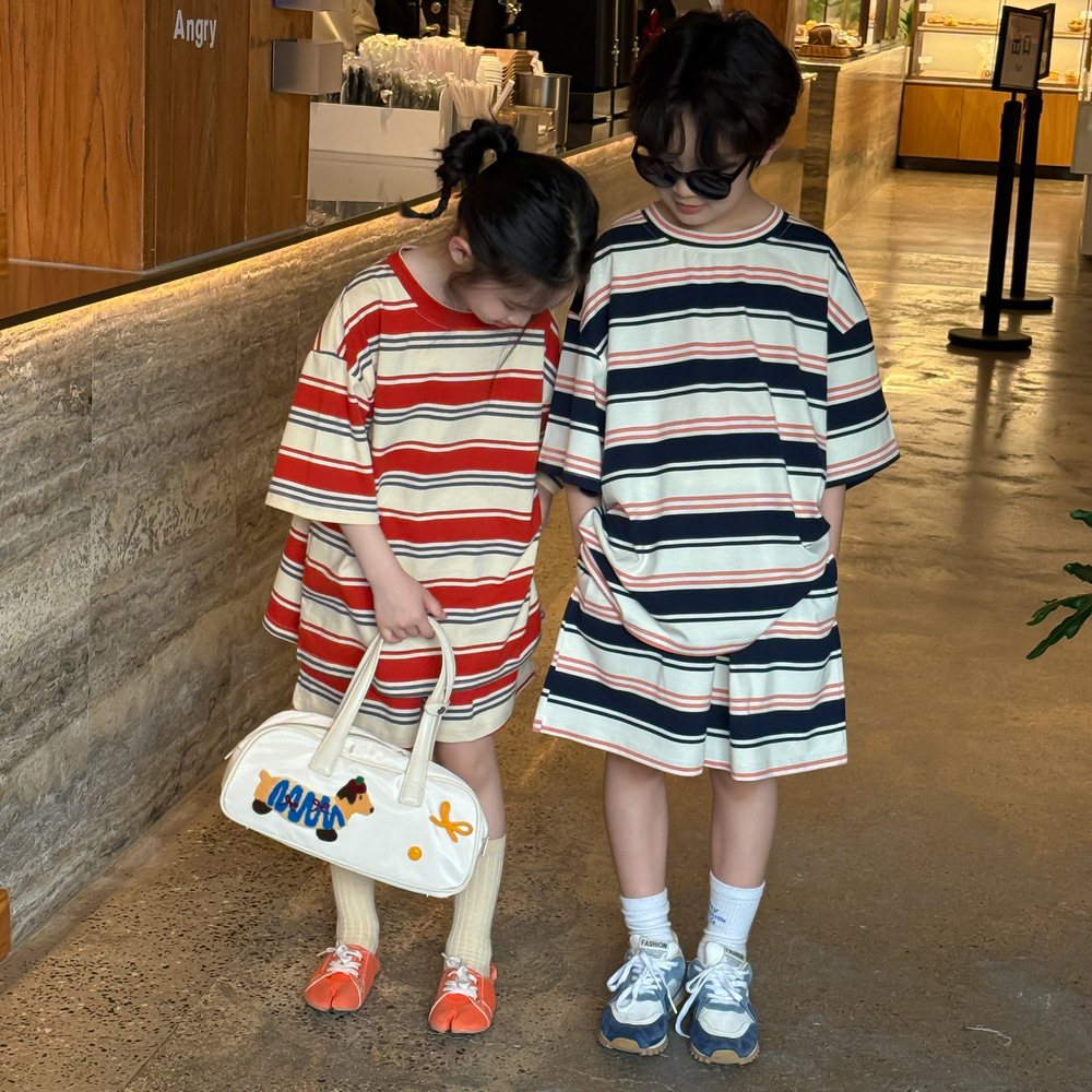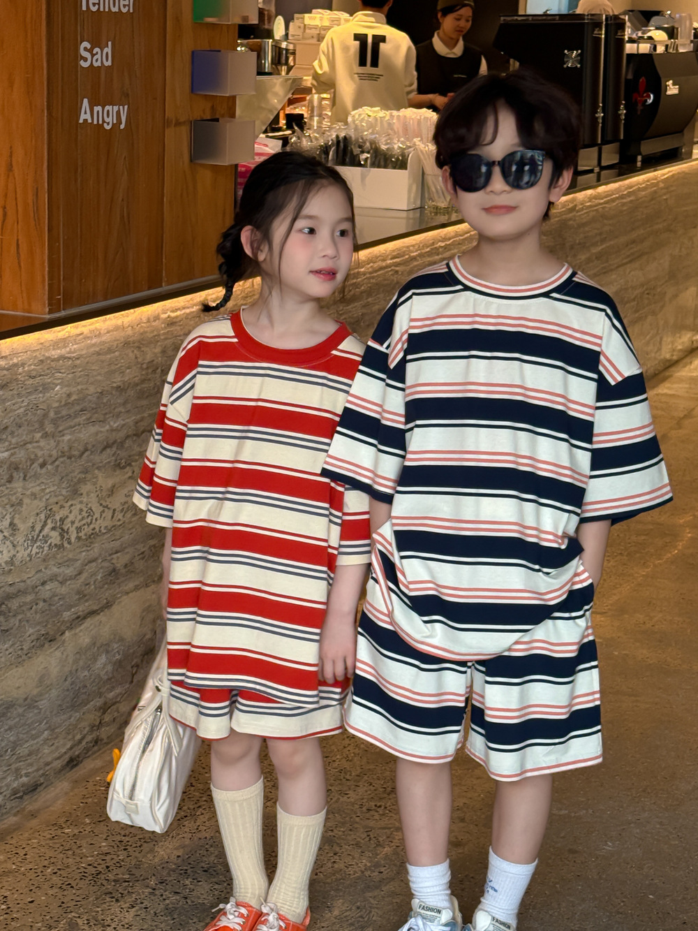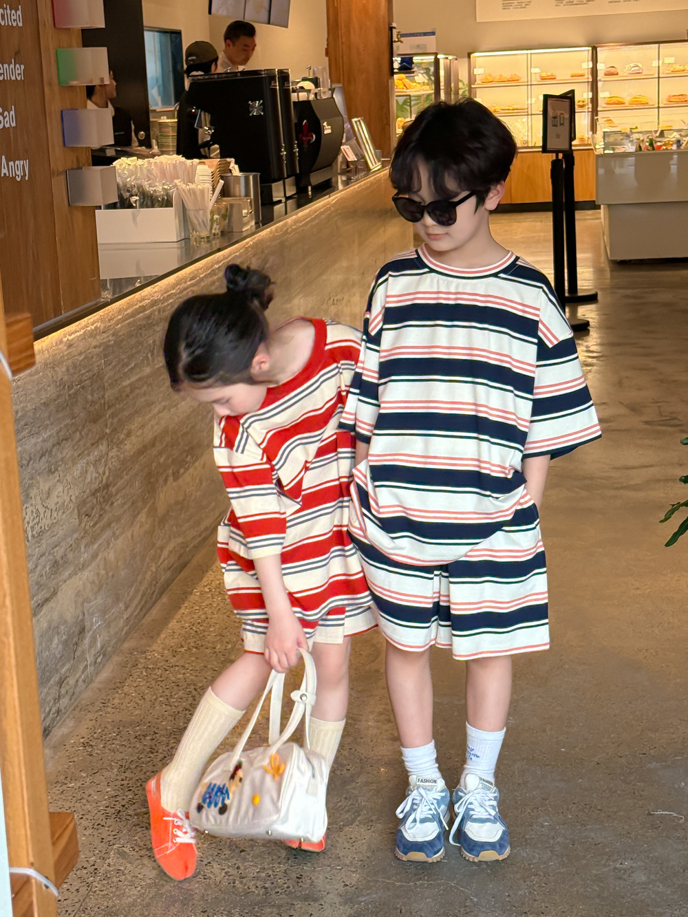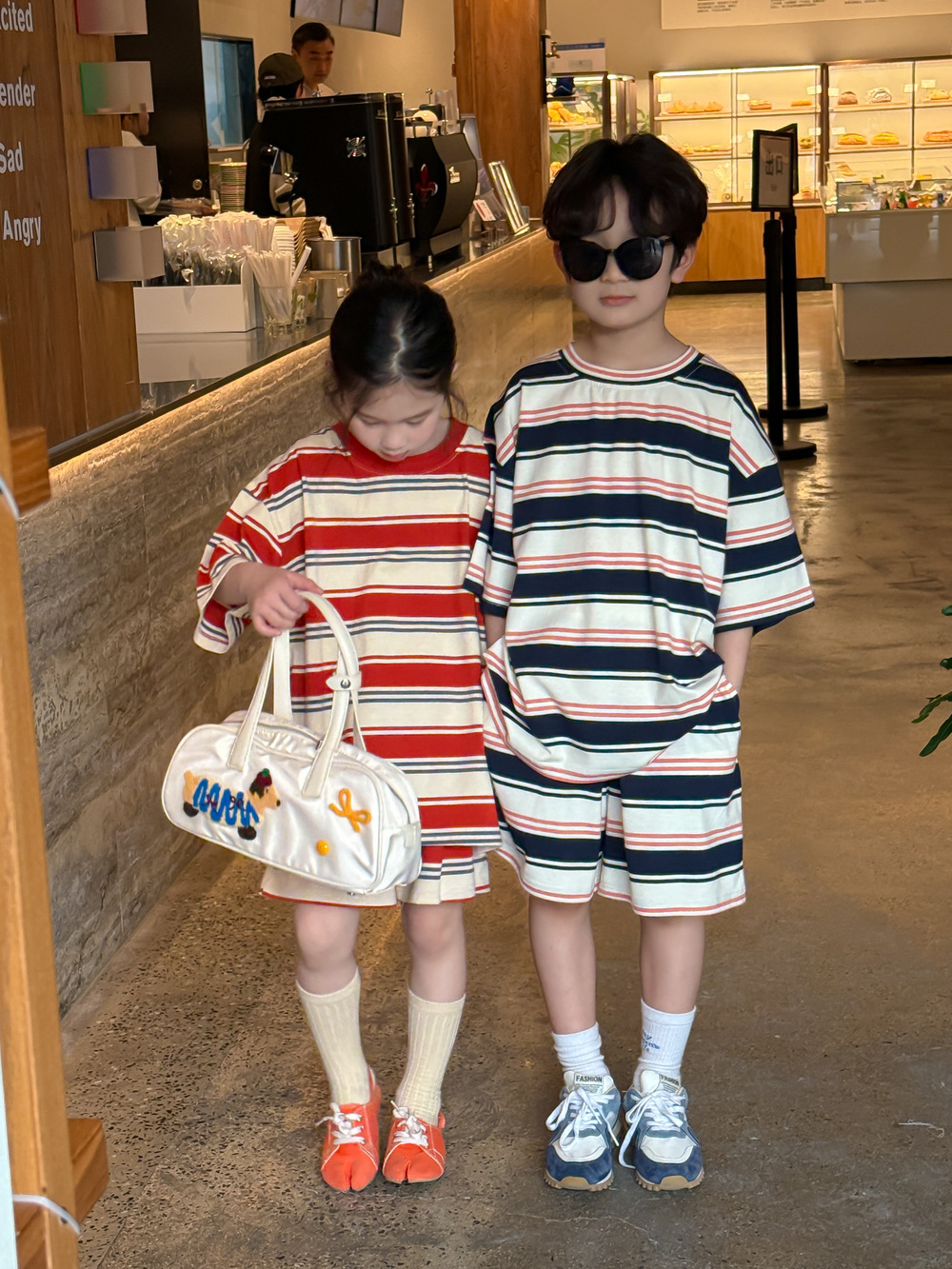 2025X130TG-夏季男女童韓版字母條紋短袖短褲兩件套