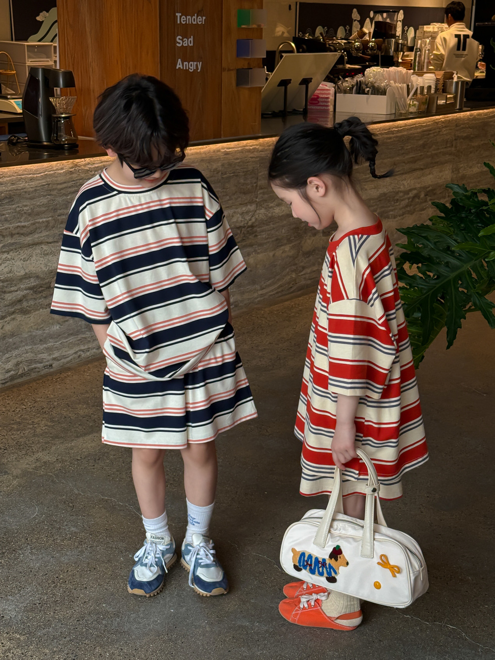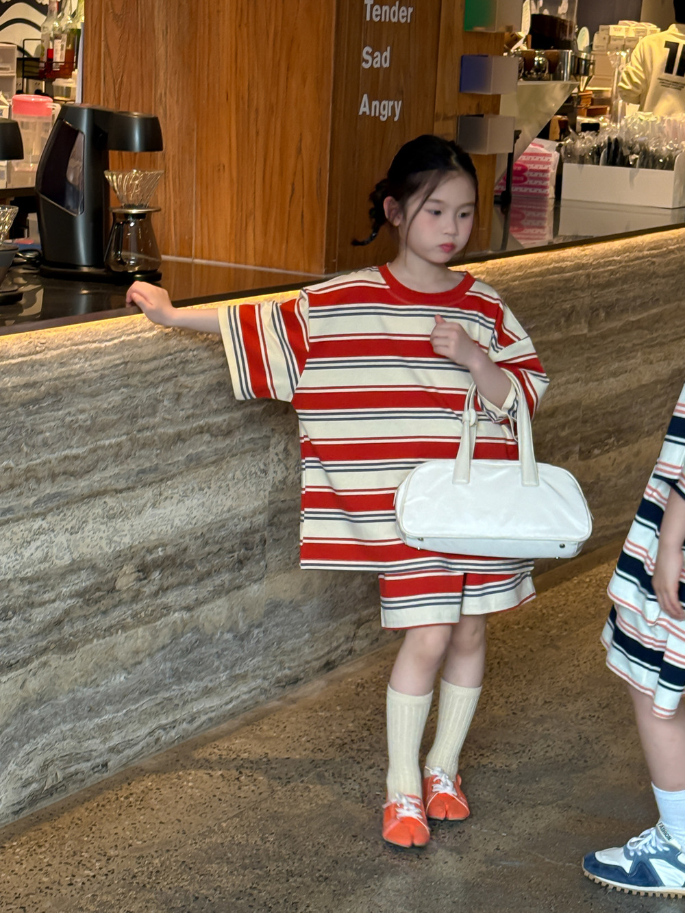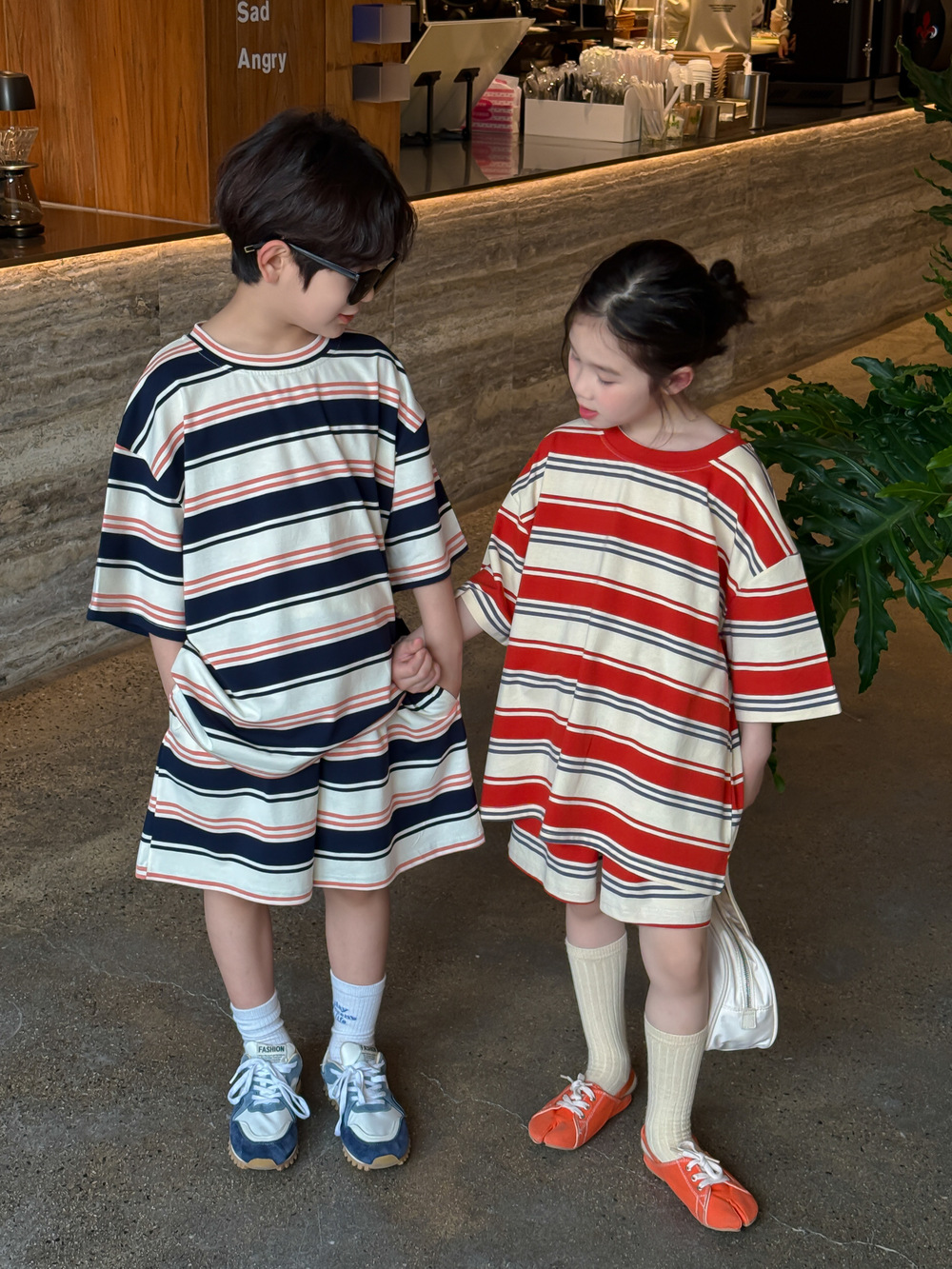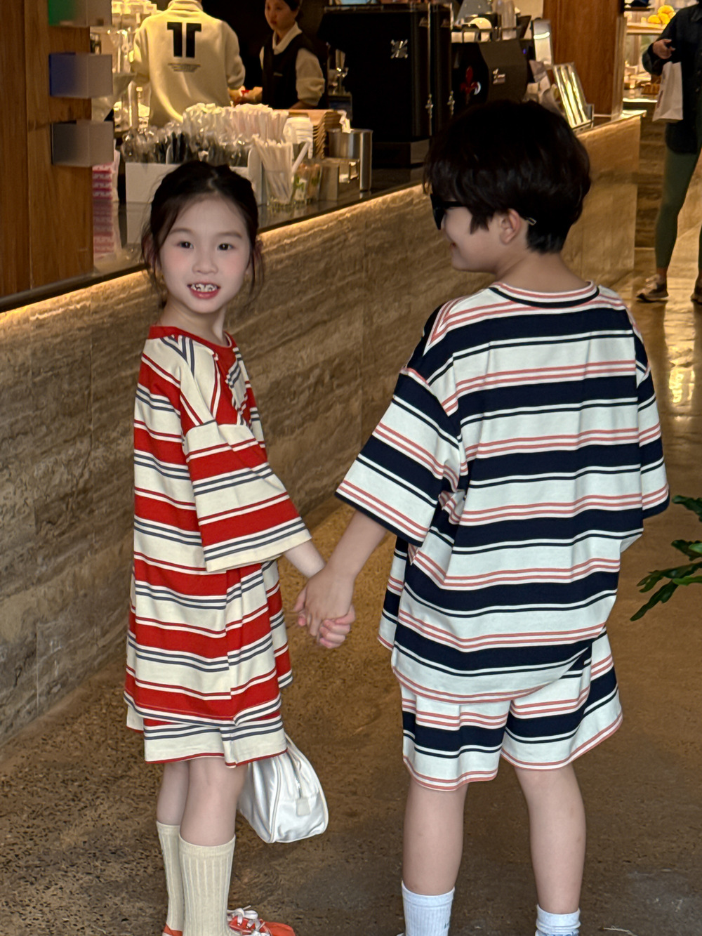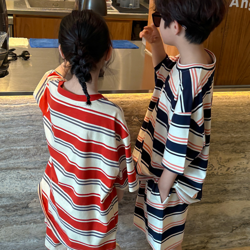 2025X130TG-夏季男女童韓版字母條紋短袖短褲兩件套