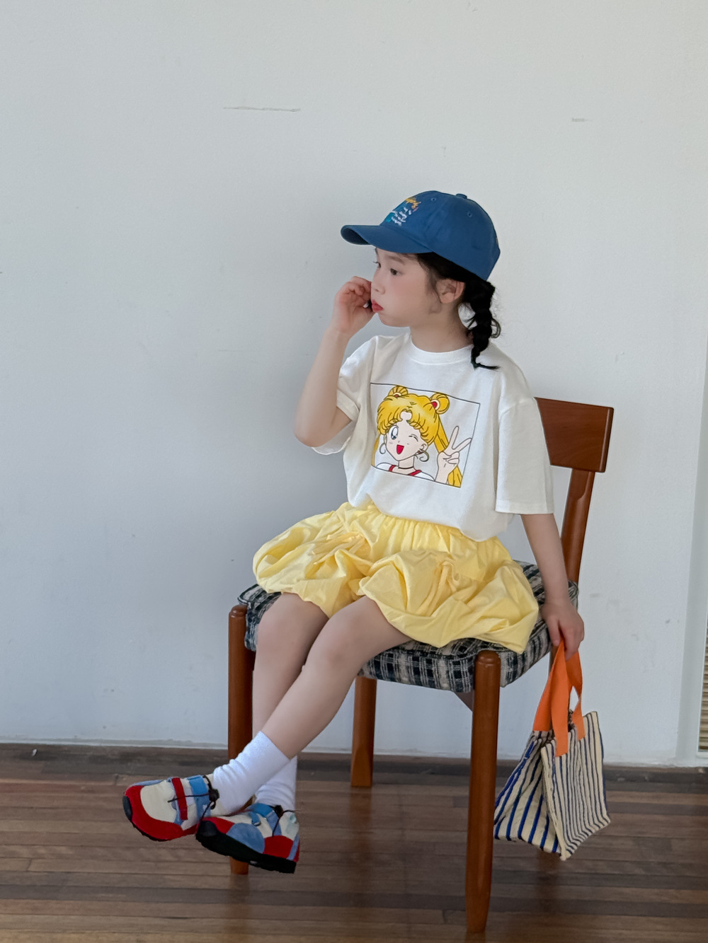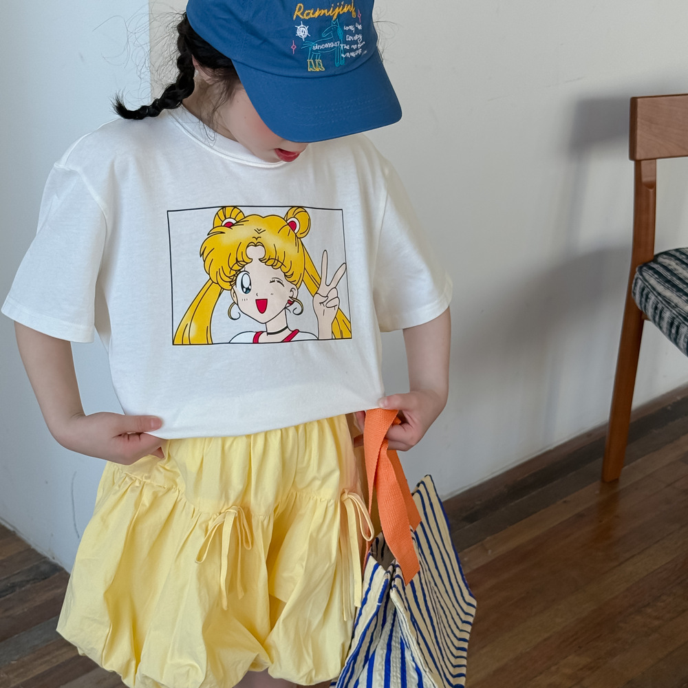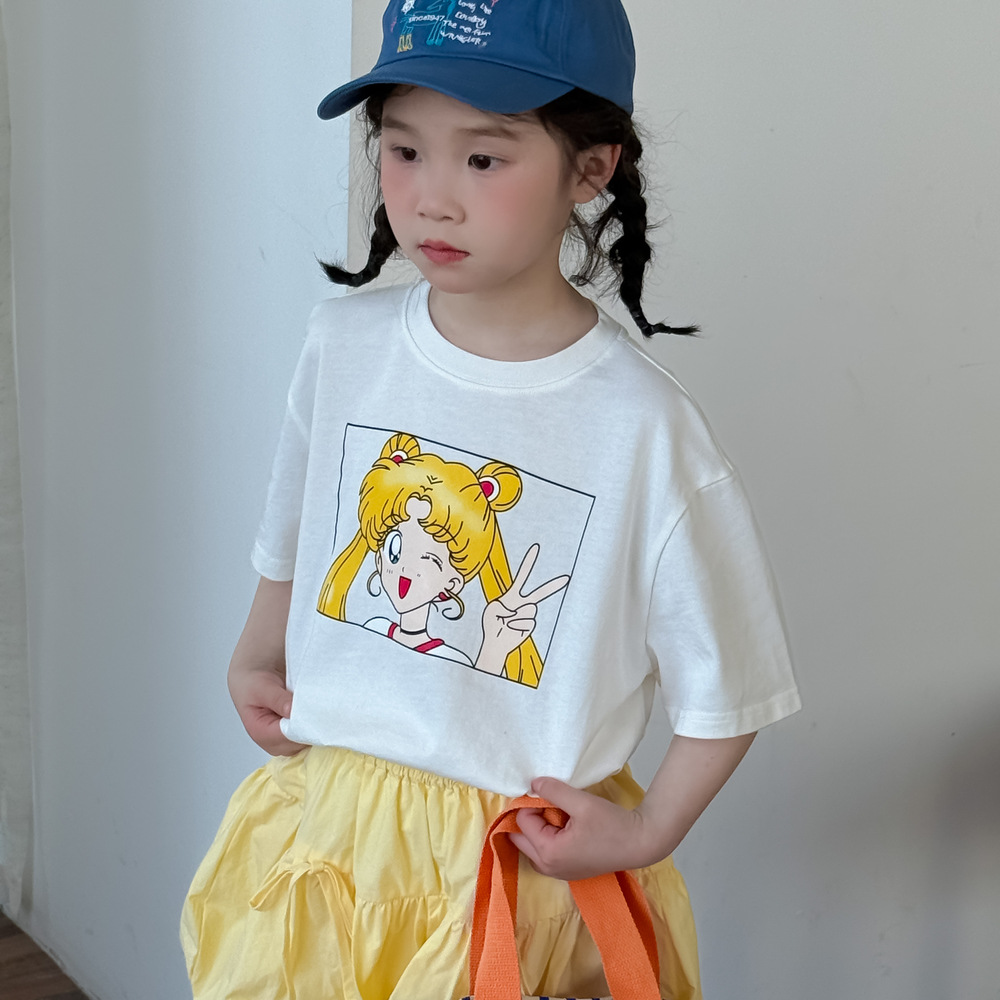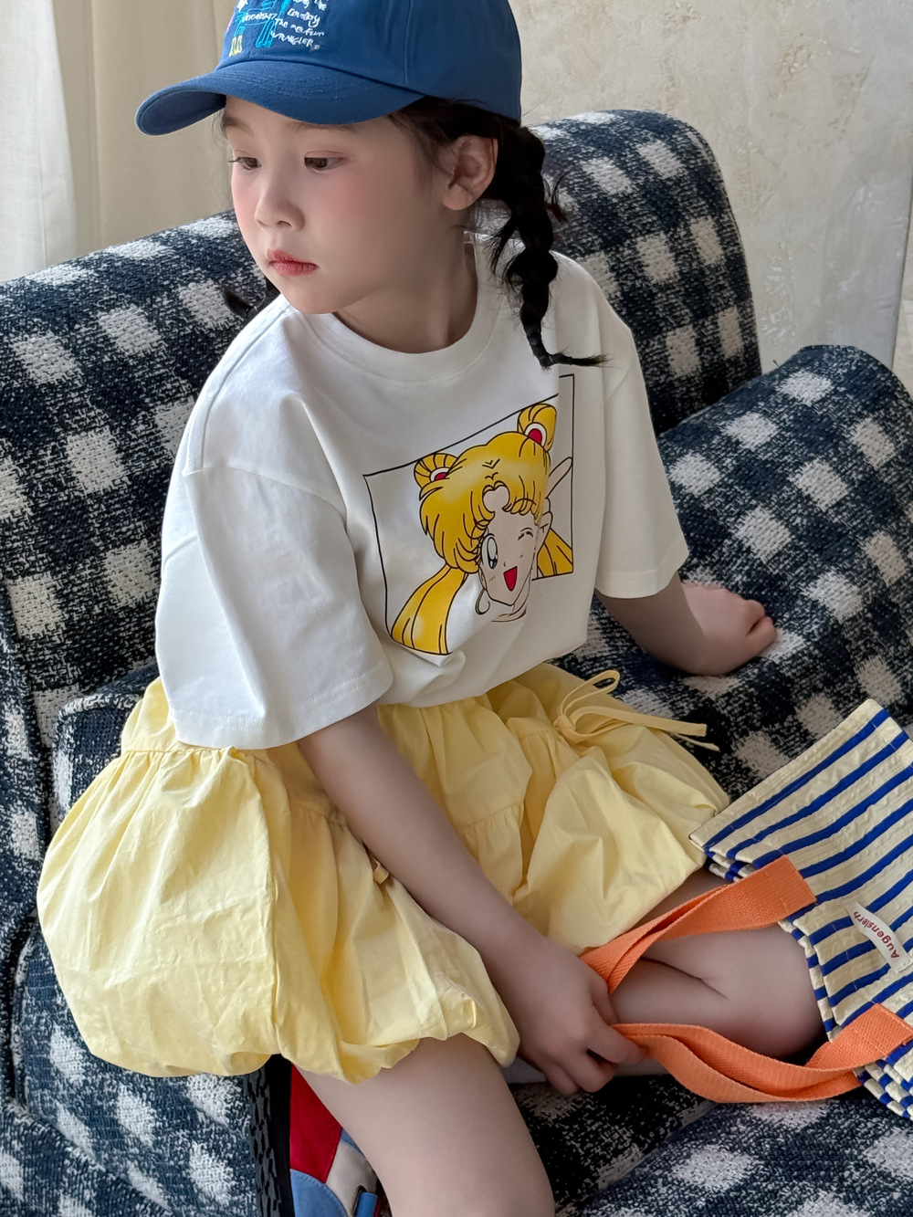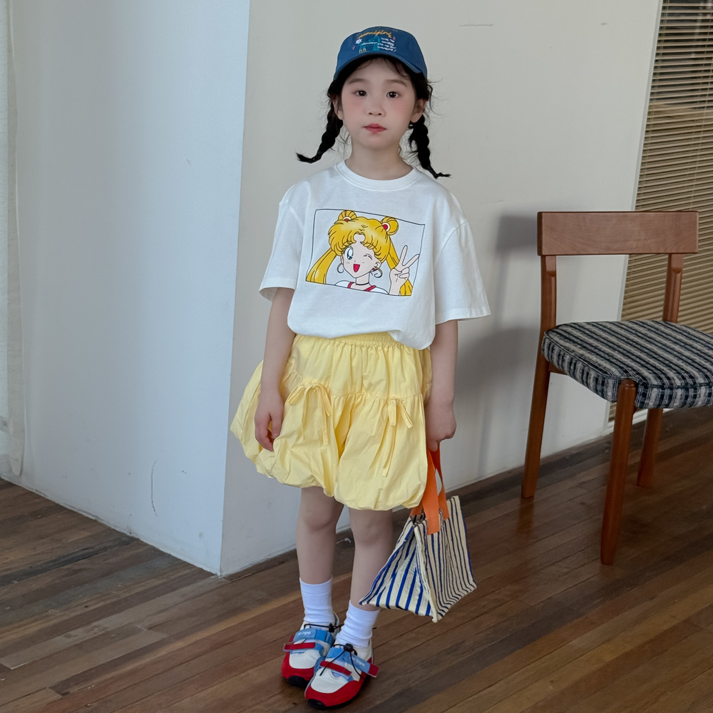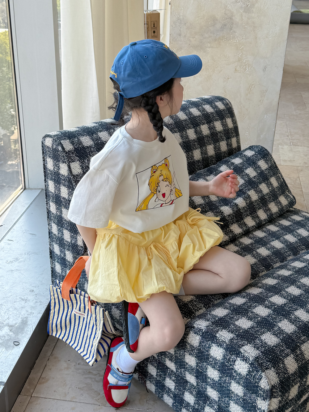 2025X70TG-夏季女童韓版圓領休閒短袖卡通上衣+純色泡泡闊腿短褲