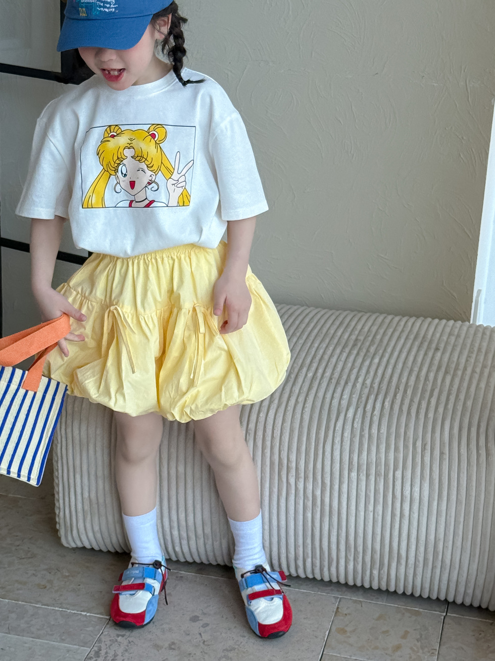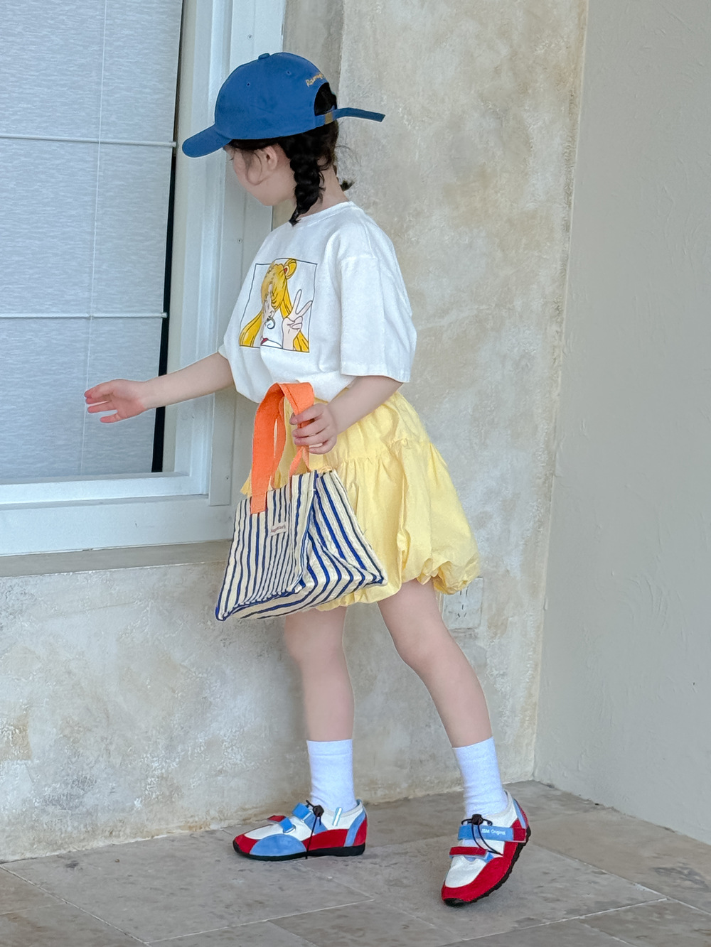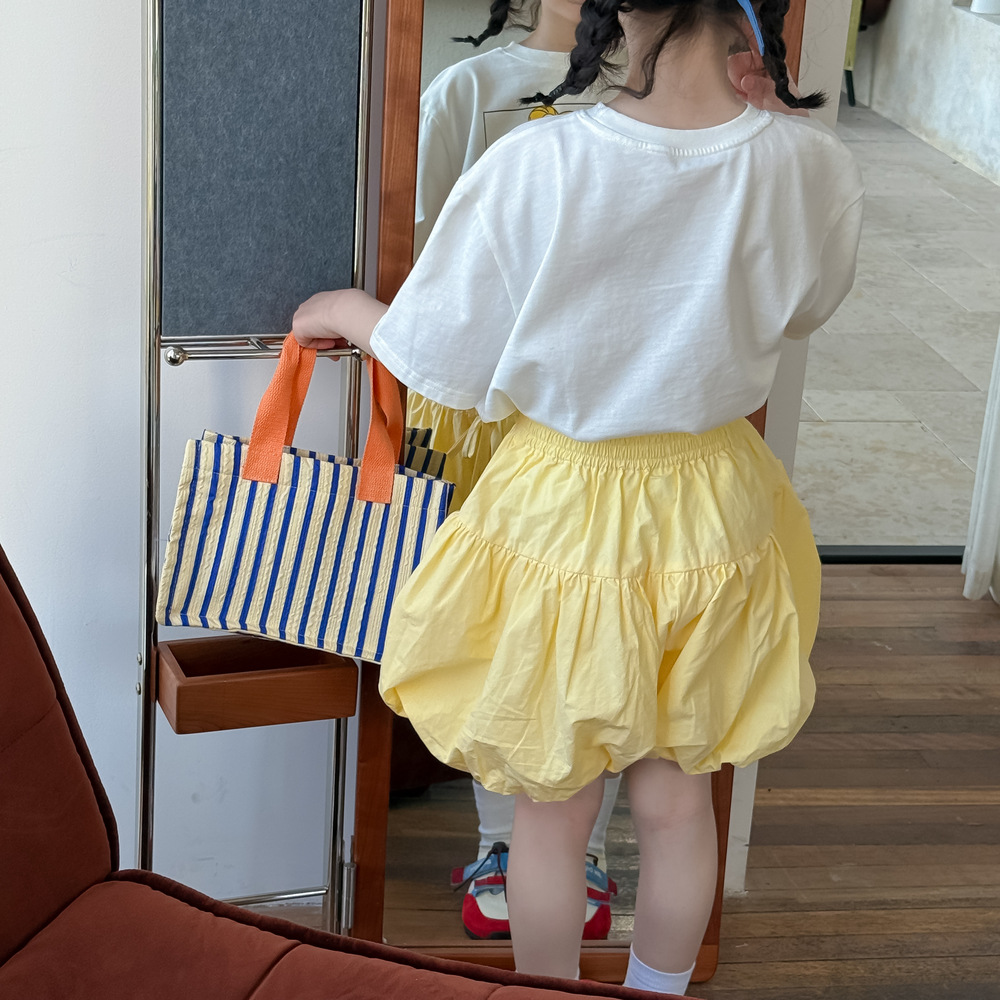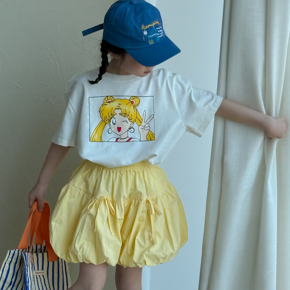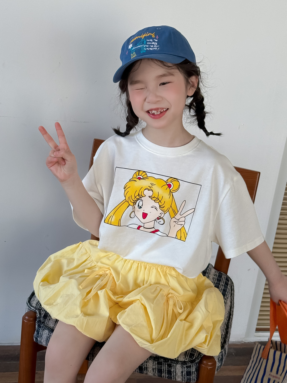 2025X70TG-夏季女童韓版圓領休閒短袖卡通上衣+純色泡泡闊腿短褲
