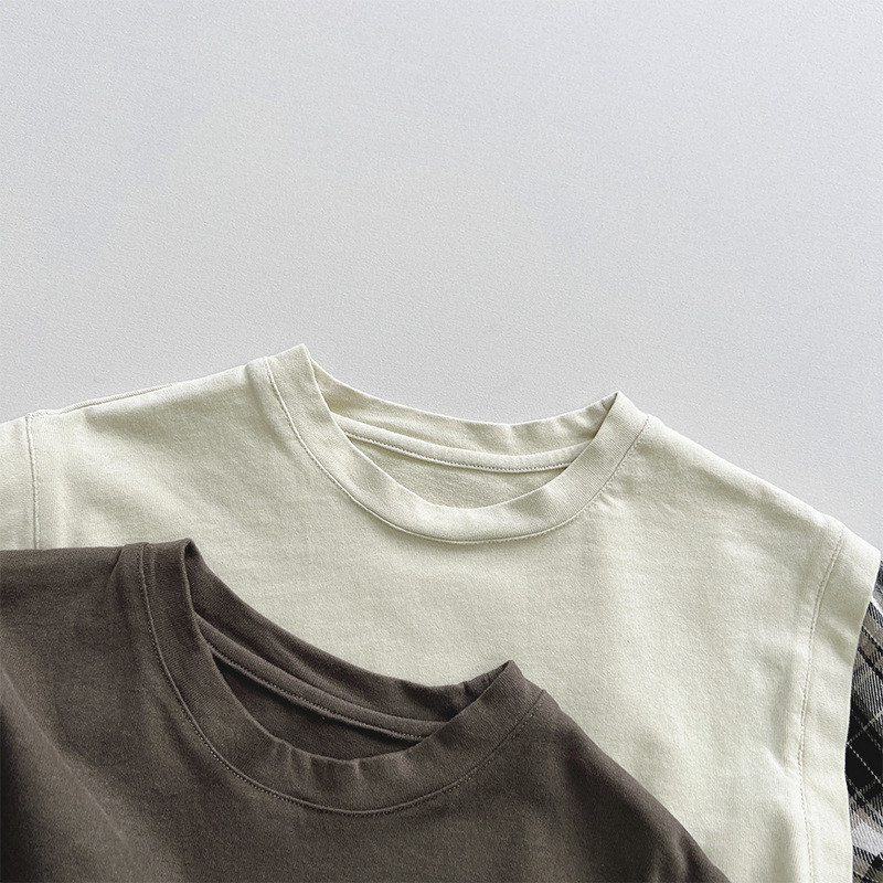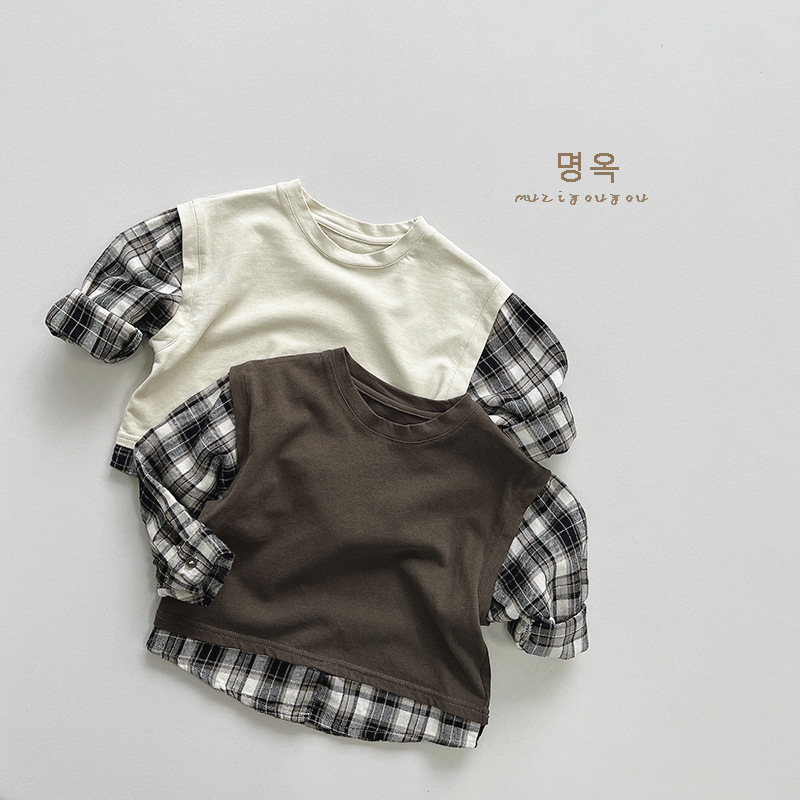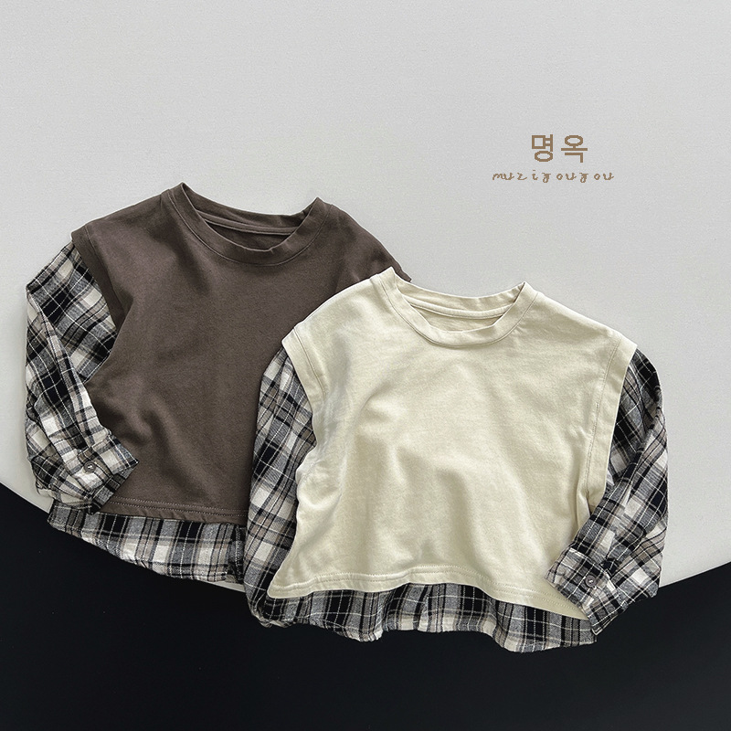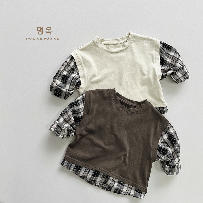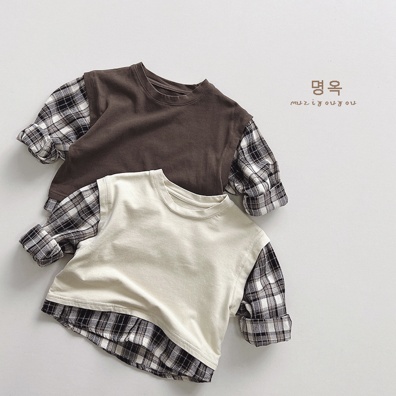 23103SE-秋季韓版森林系兒童格子拼色上衣