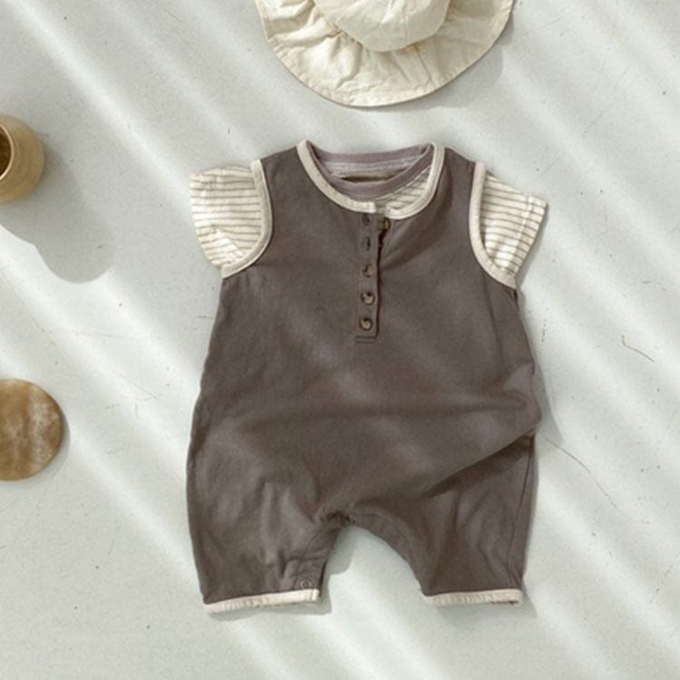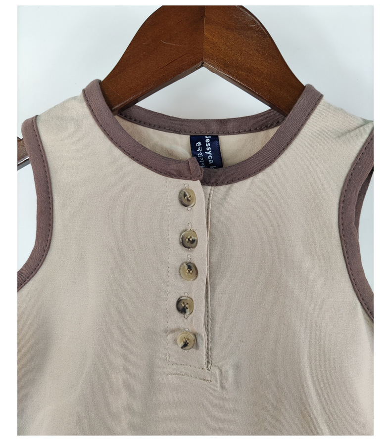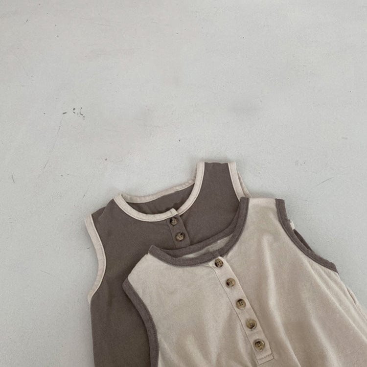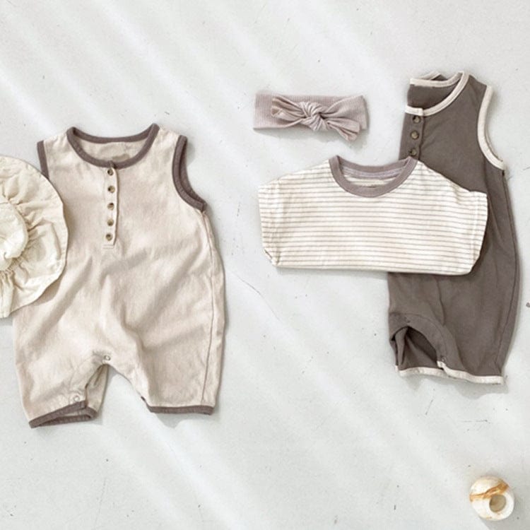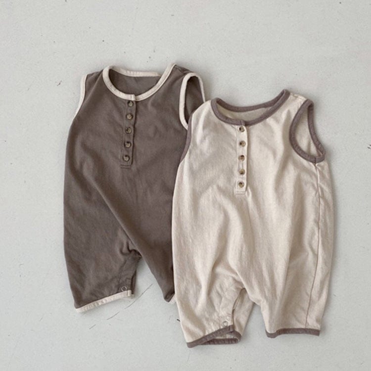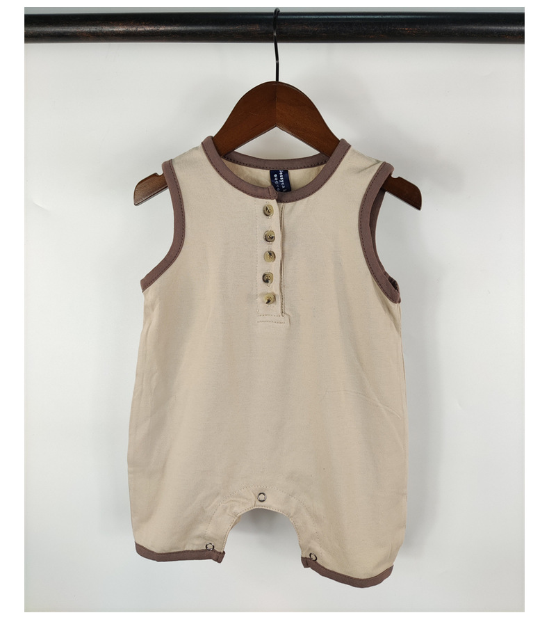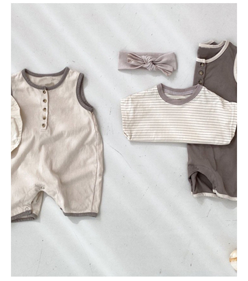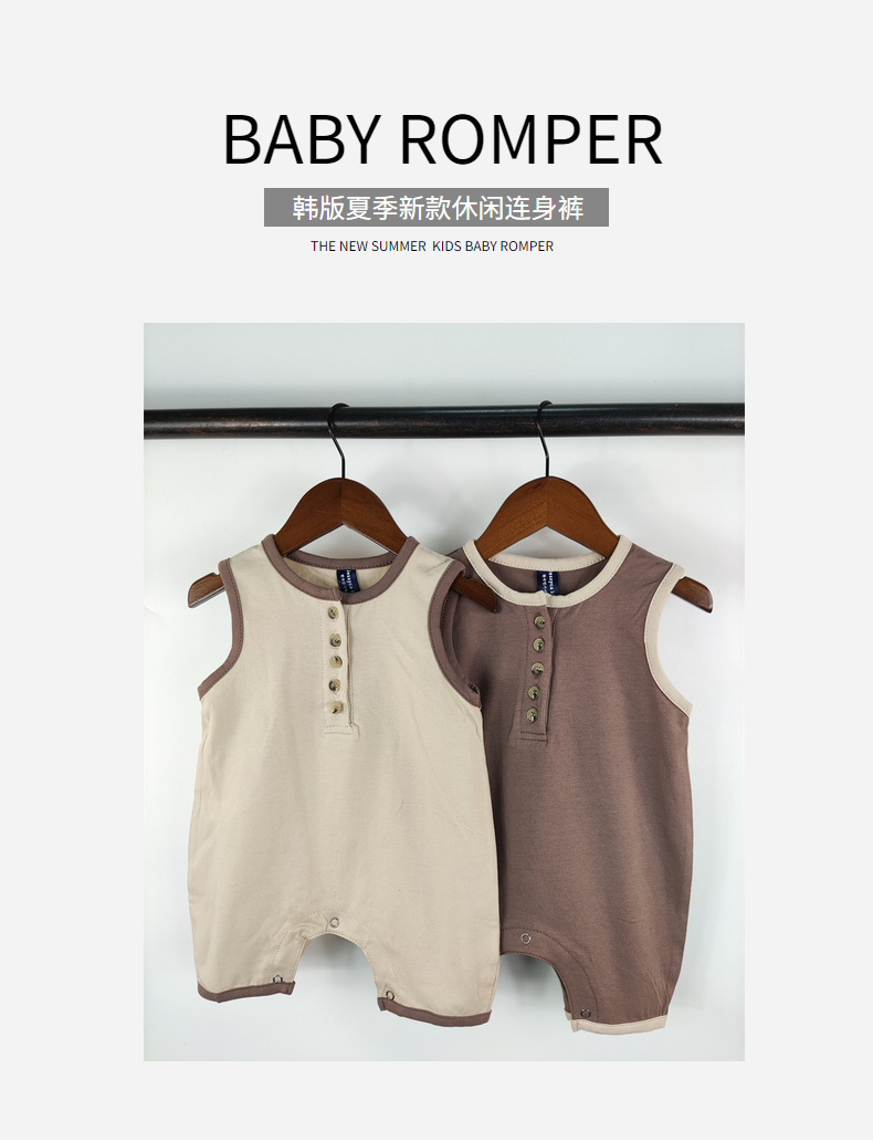 23D774LS-兒童韓版新款夏裝連身衣男女嬰幼寶寶休閒舒適圓領無袖哈衣爬服