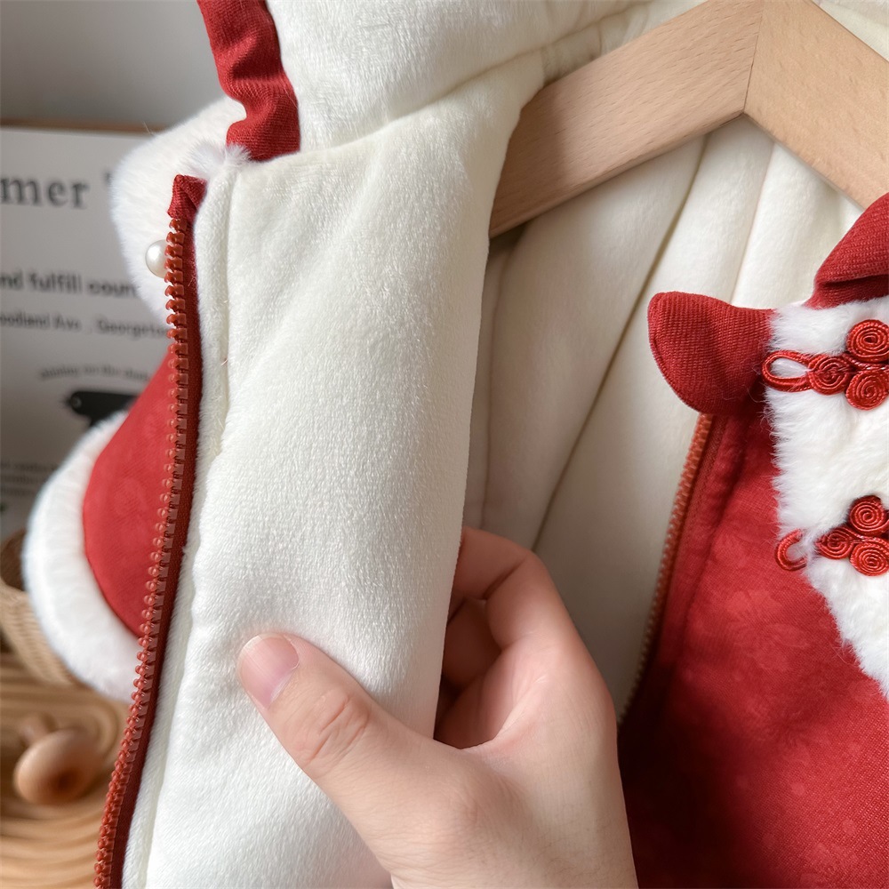 2454087LS-冬裝喜慶夾棉加厚保暖連帽拜年爬服