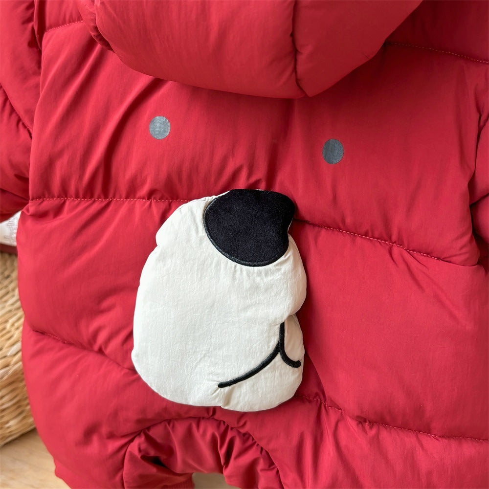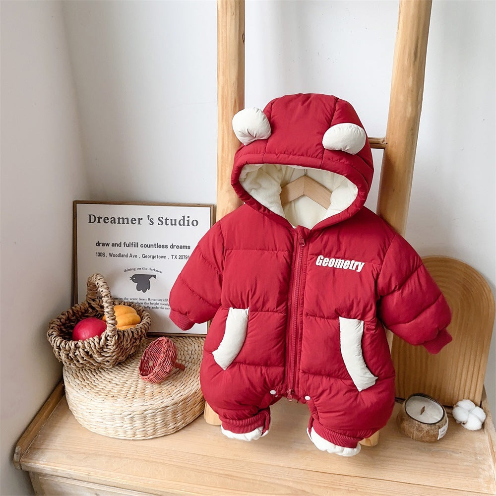 2457019LS-冬裝韓系加絨字母印花連帽拜年爬服