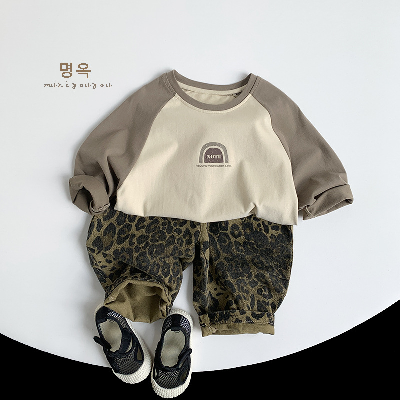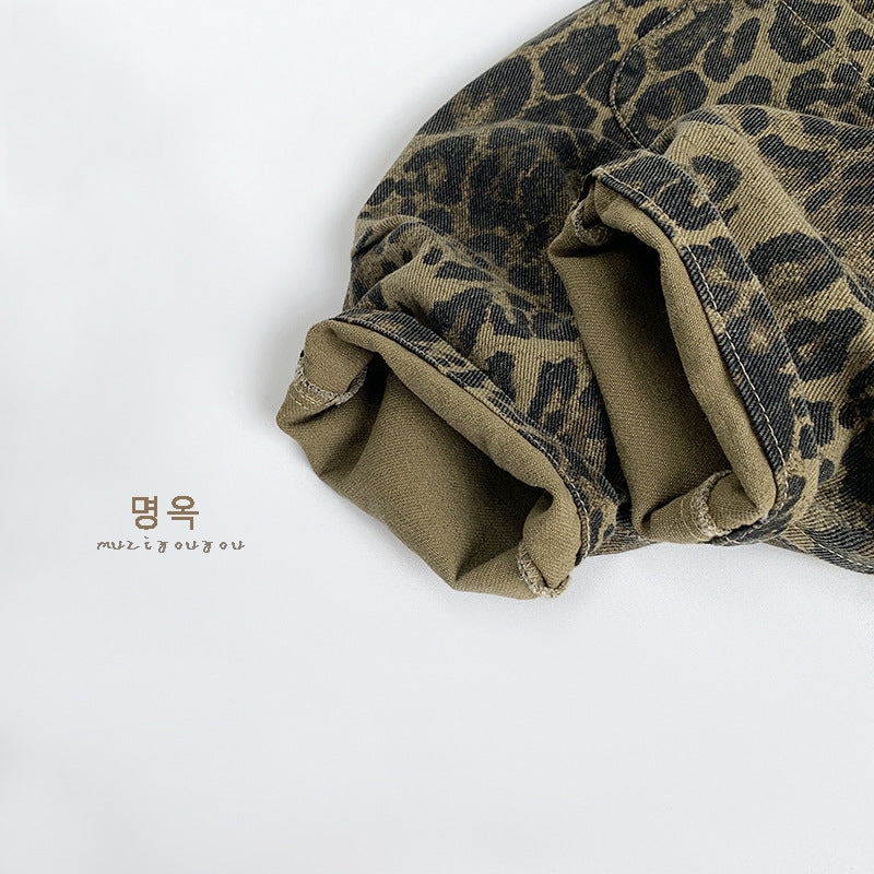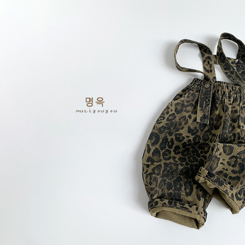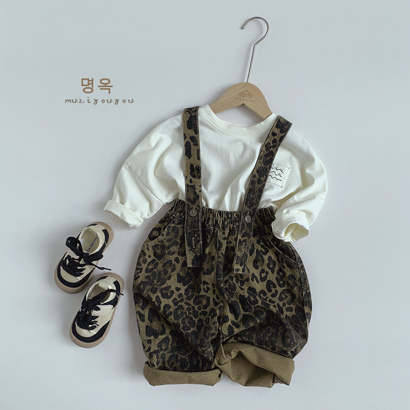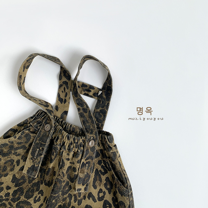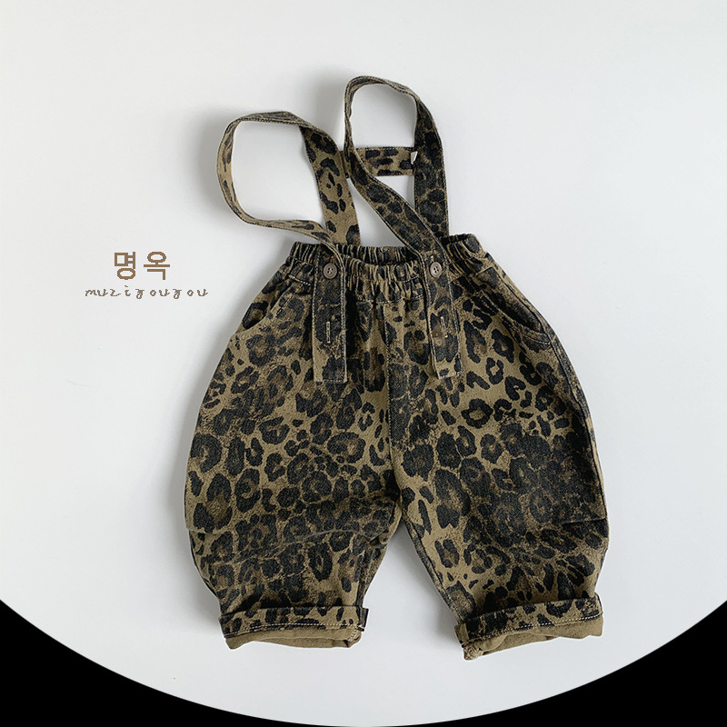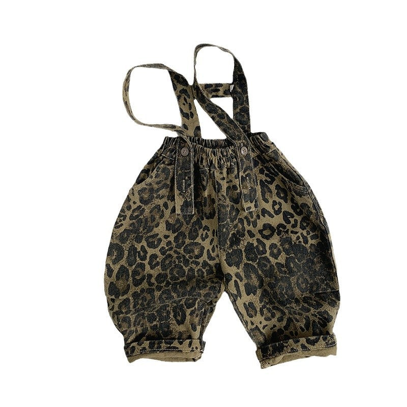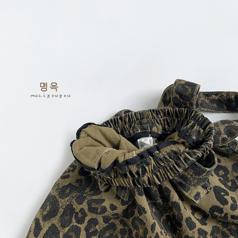 • 將圖片載入圖庫檢視器 25011LS-秋季韓版兒童休閒豹紋兩穿吊帶褲