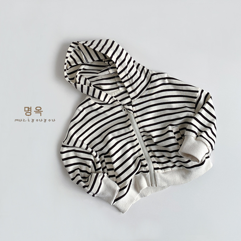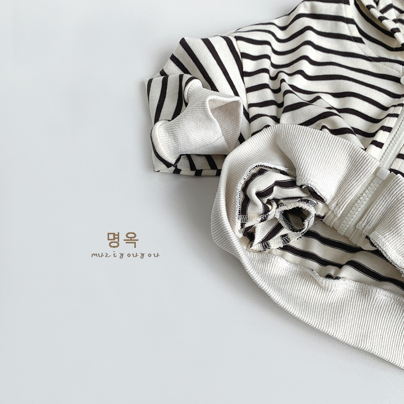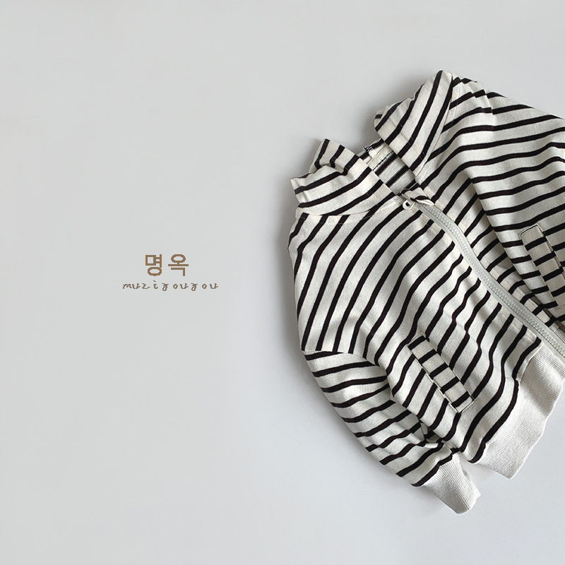25017SE-韓版黑白條紋休閒上衣外套