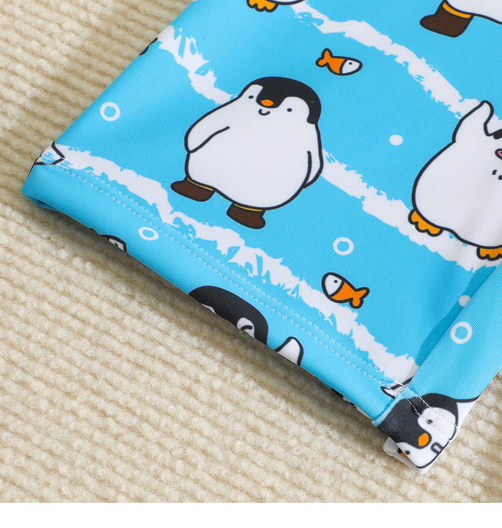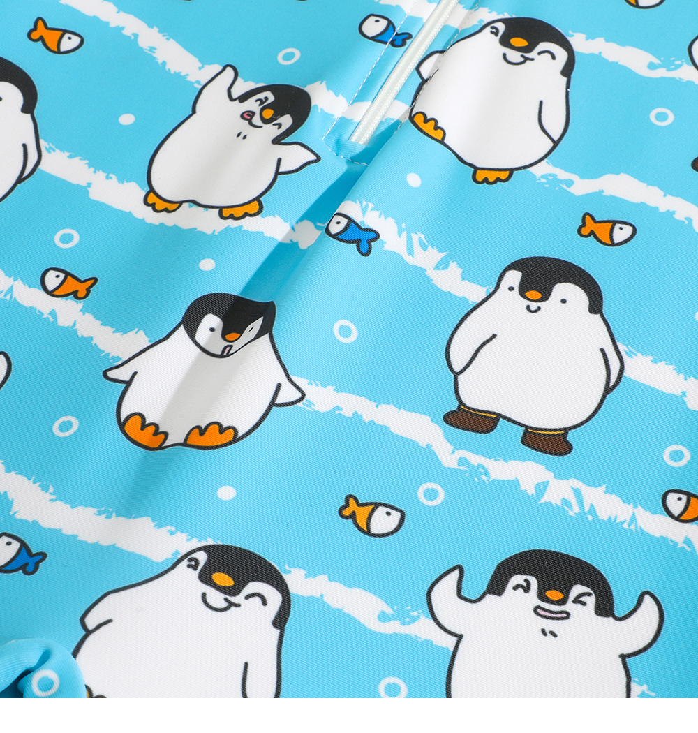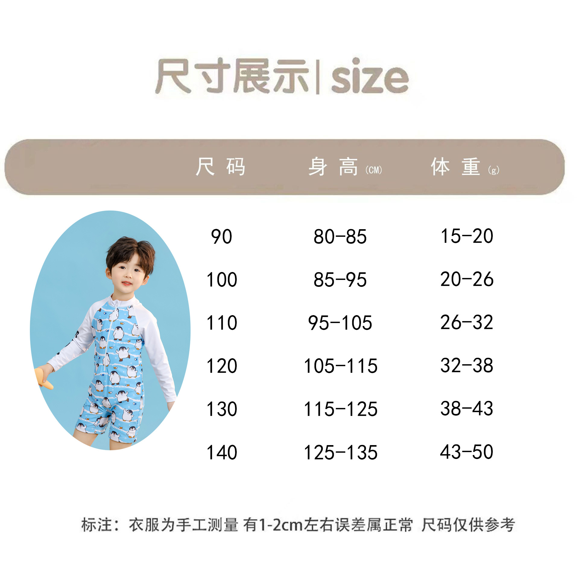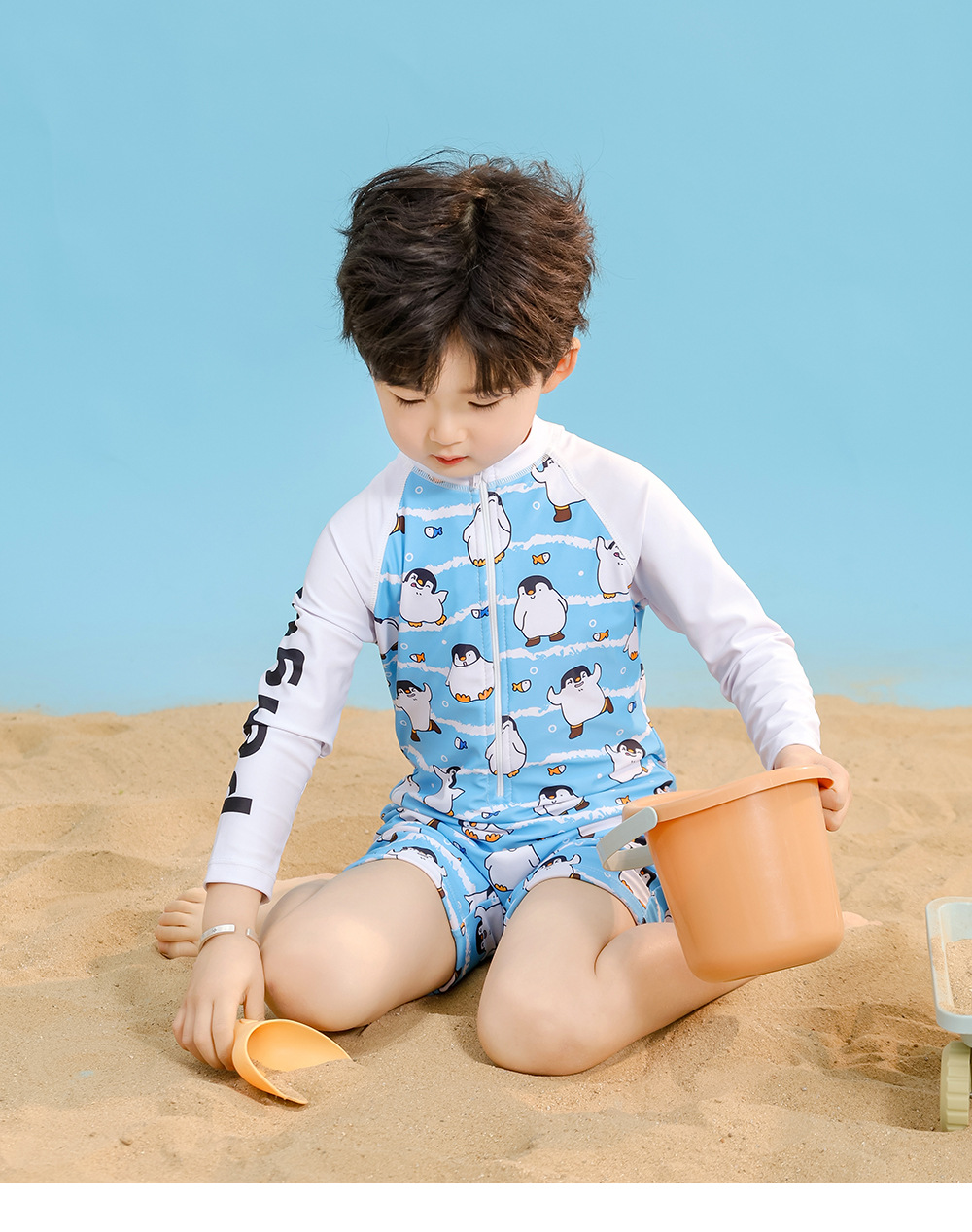 2507LS-夏季企鵝印花男童連體可愛泳衣+泳帽
