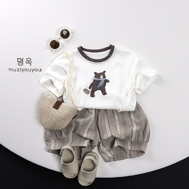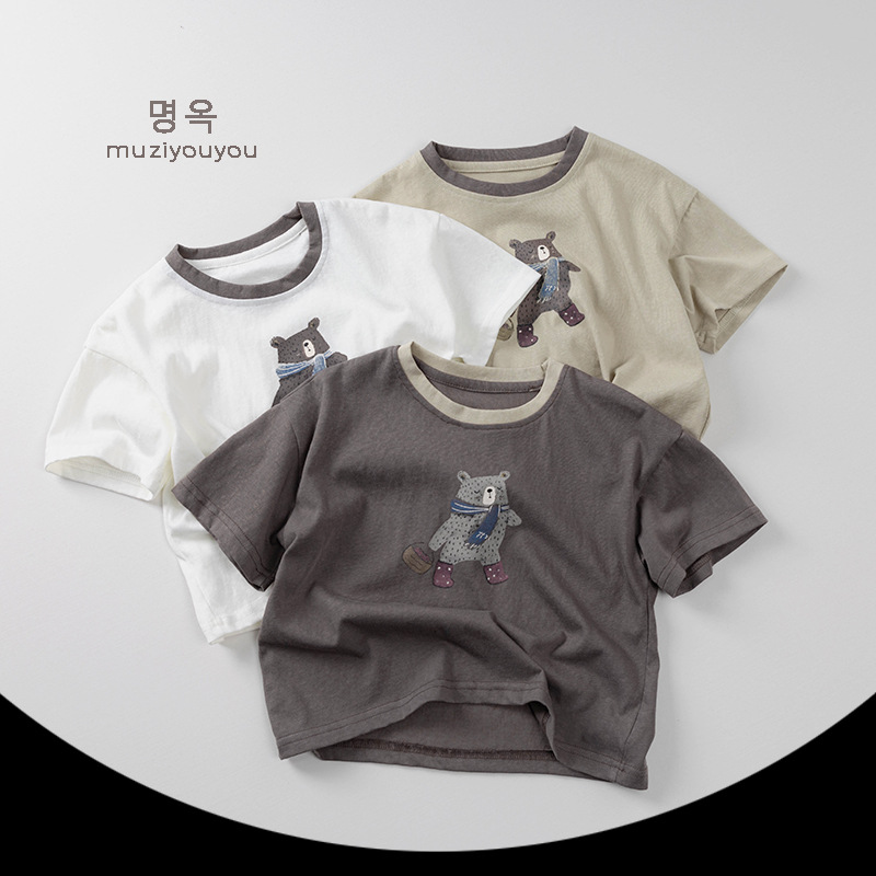 25106SE-夏季兒童短袖圍巾熊百搭休閒上衣