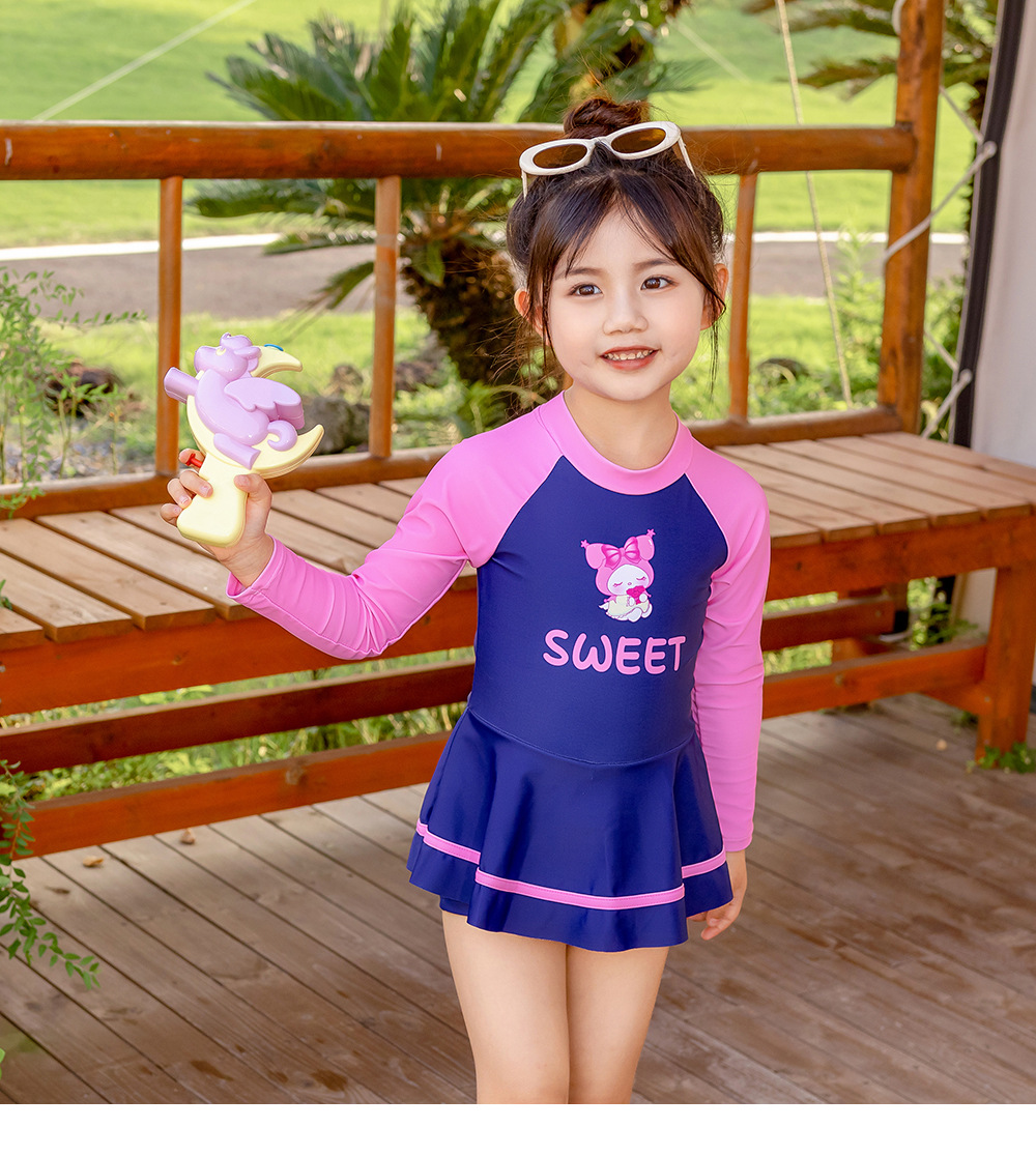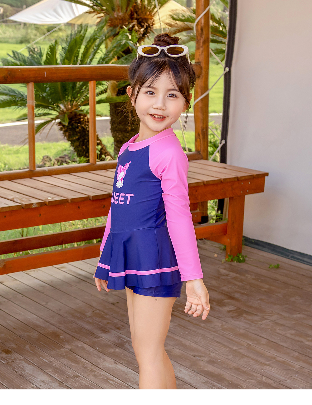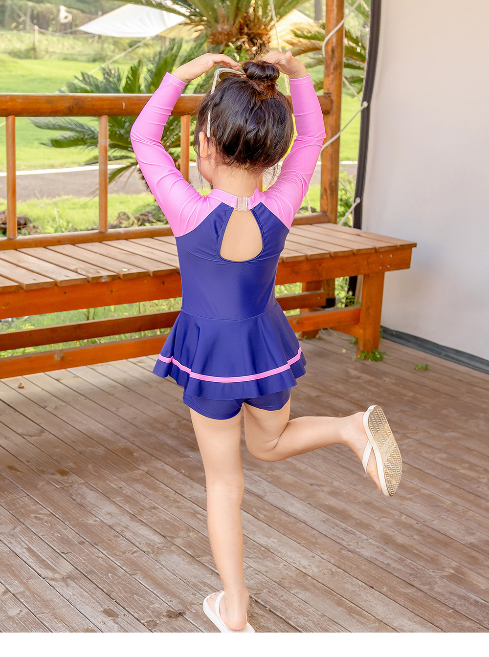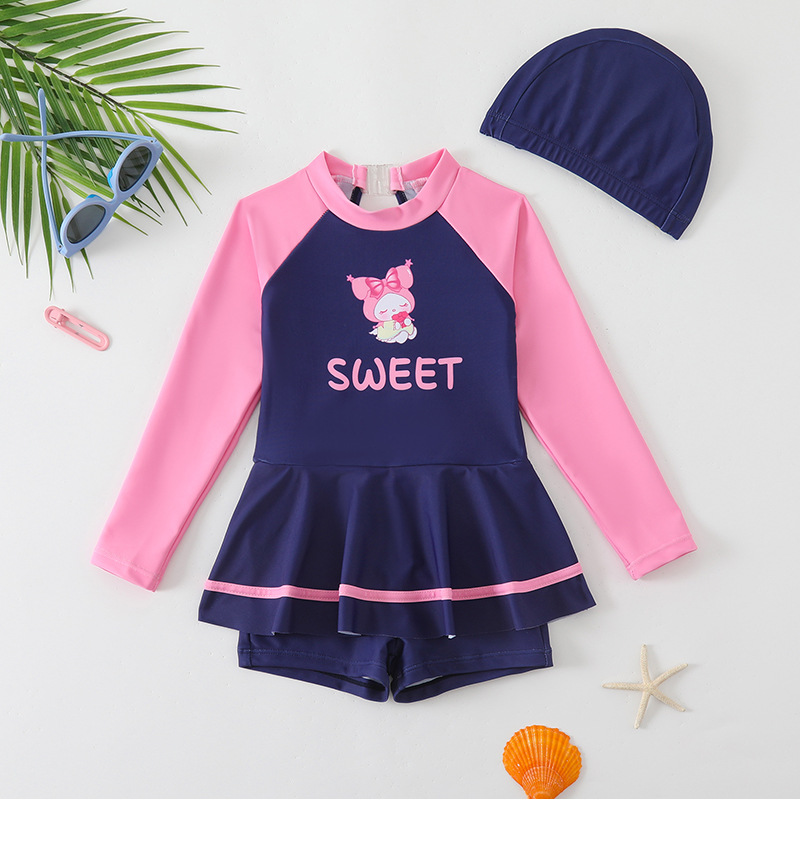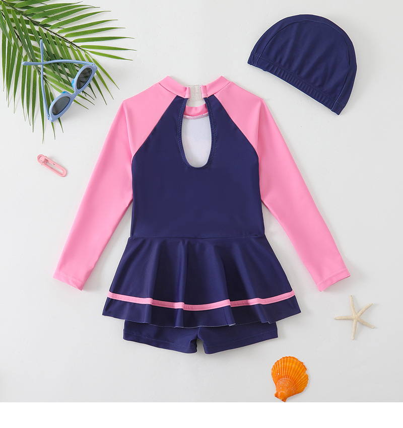 25110LS-夏季兒童長袖防曬平角連身泳衣+泳帽