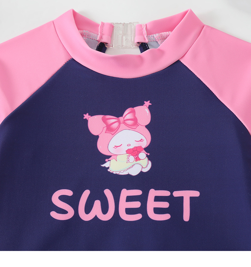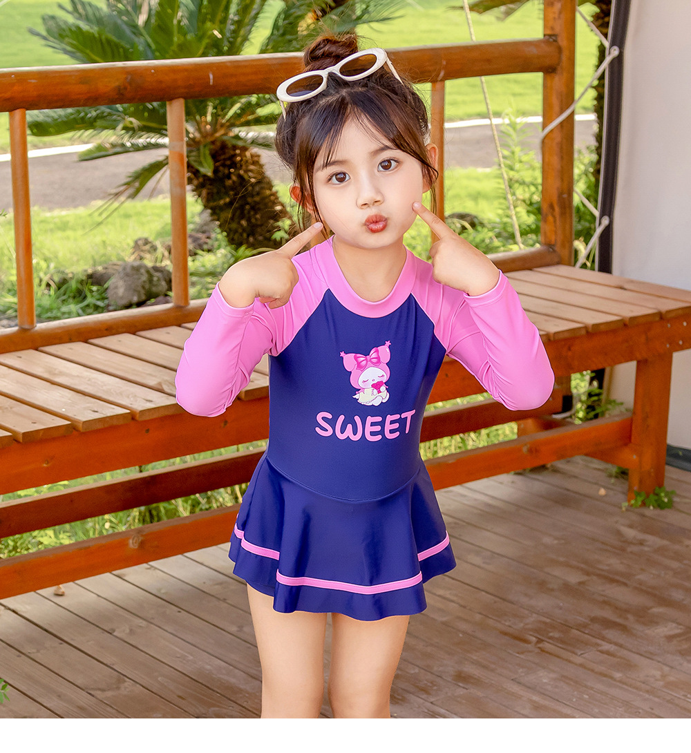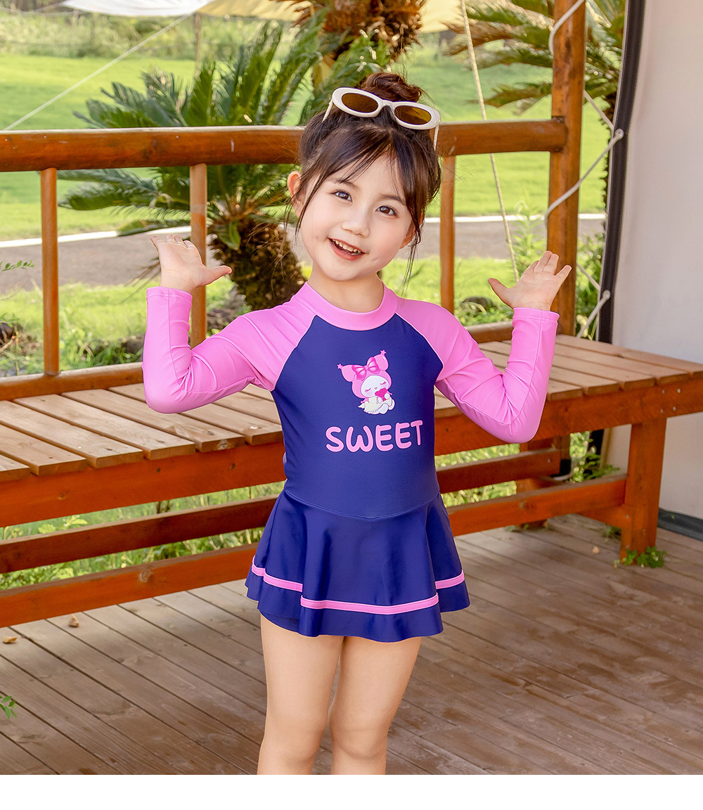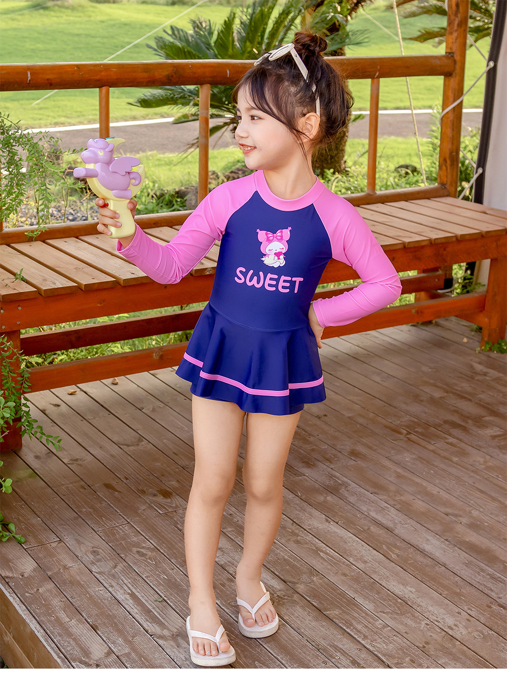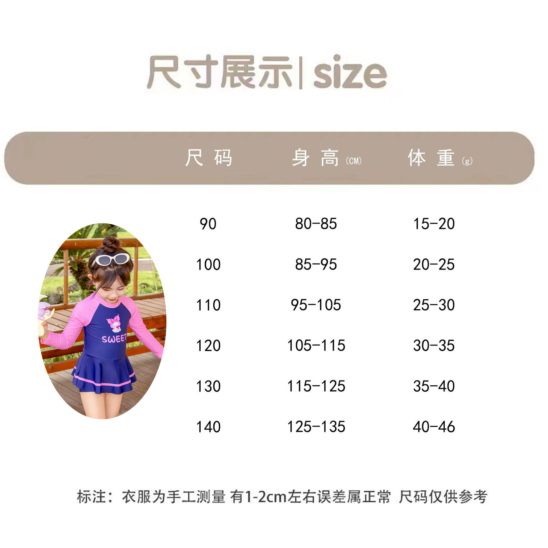 25110LS-夏季兒童長袖防曬平角連身泳衣+泳帽