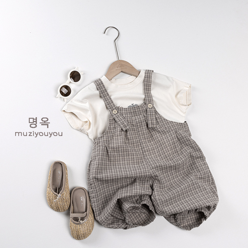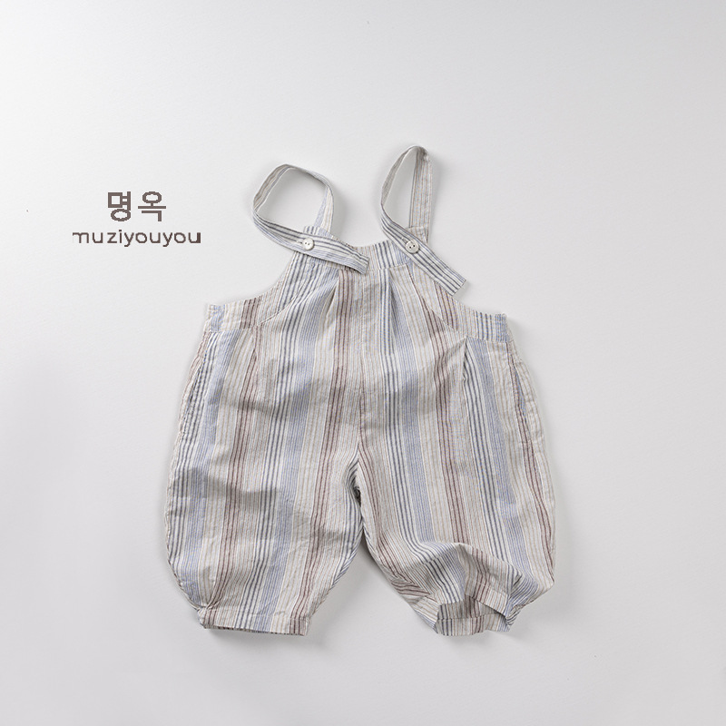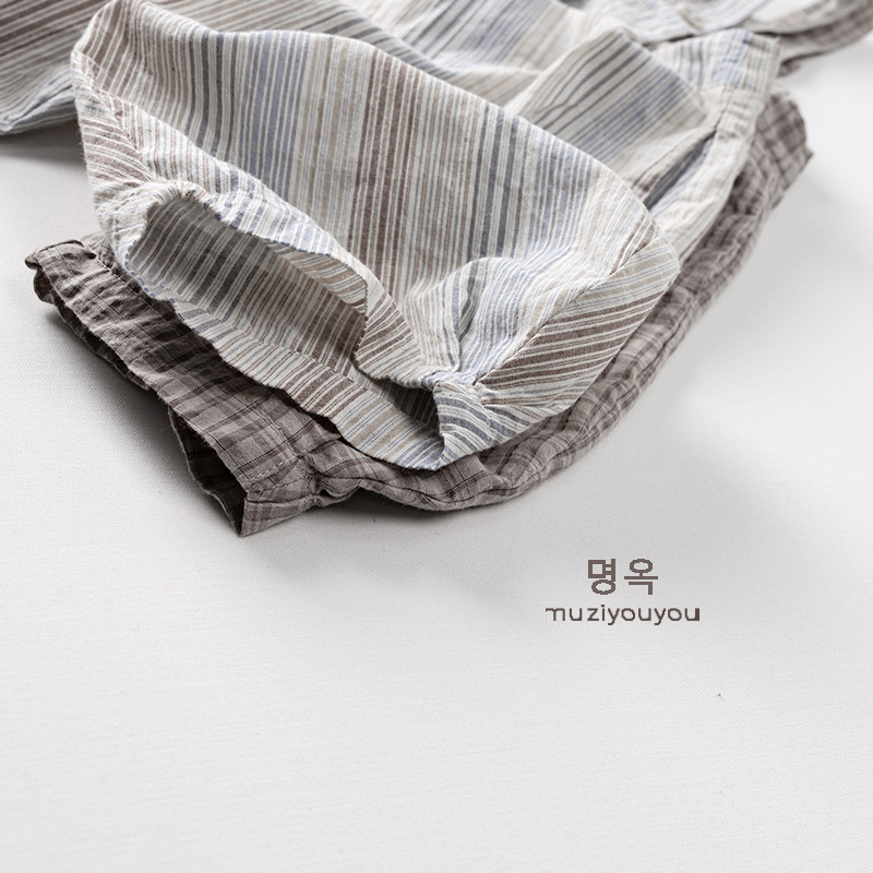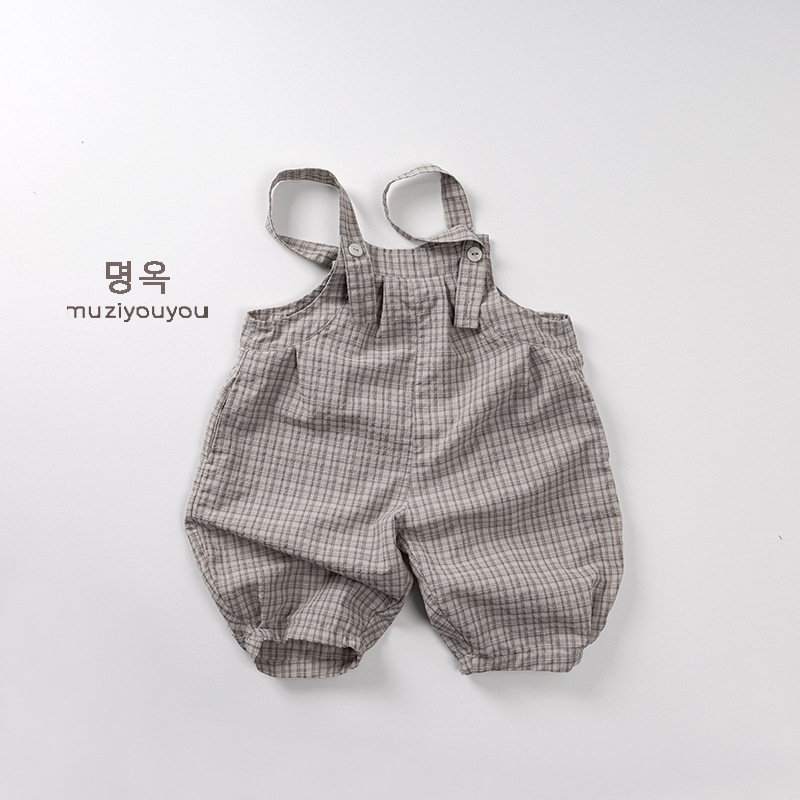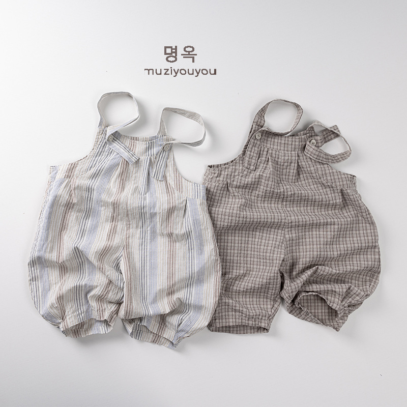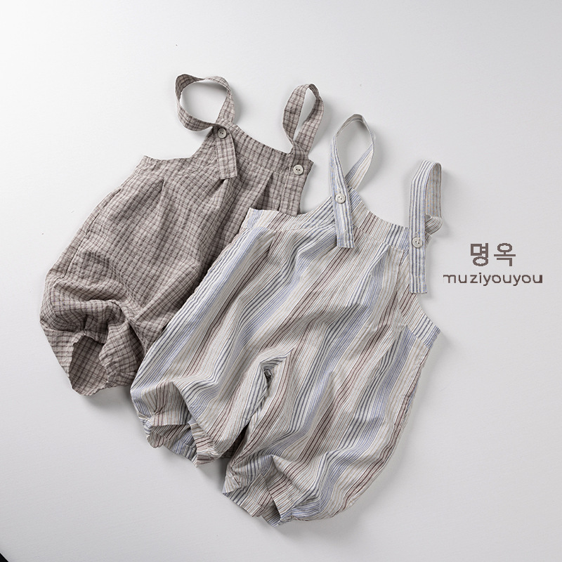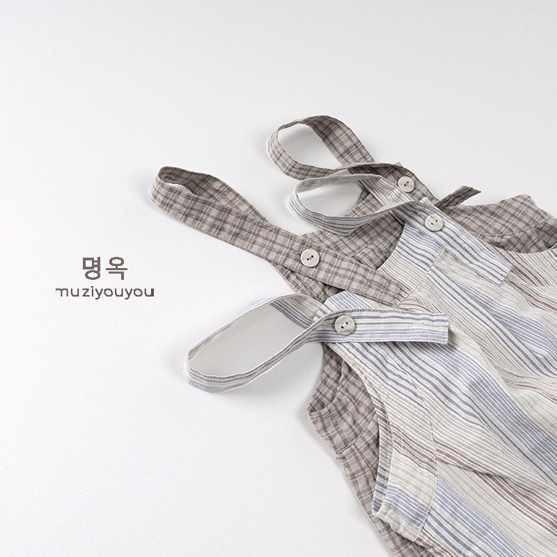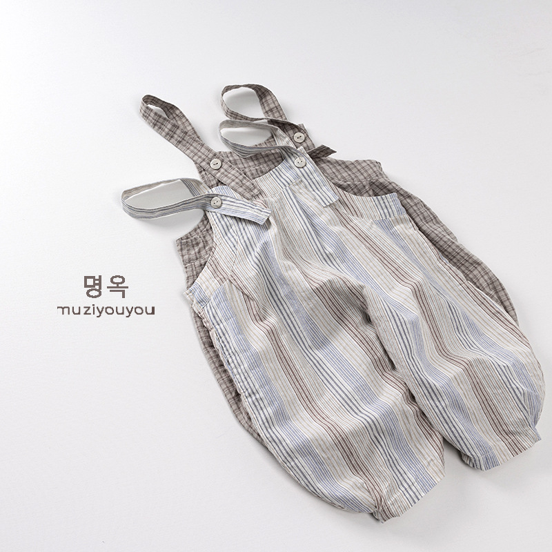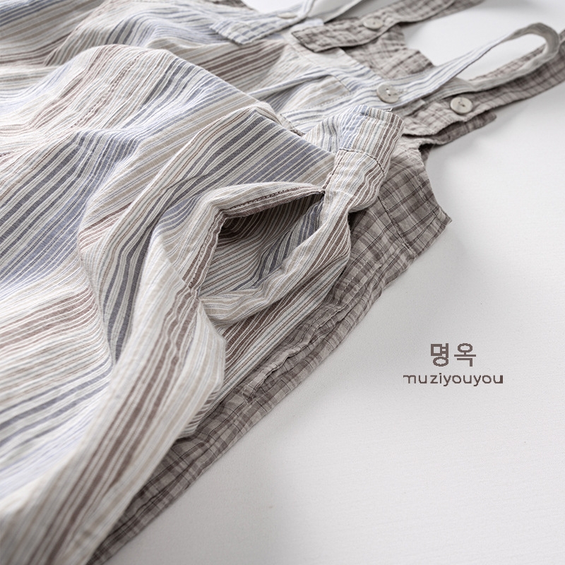 25115LS-夏季薄款韓版格紋條紋背帶褲