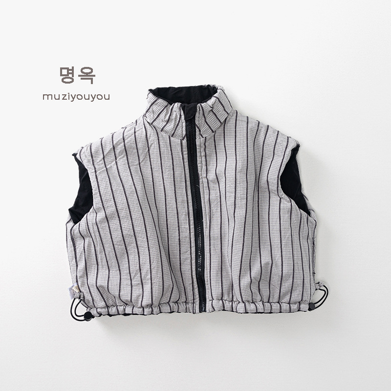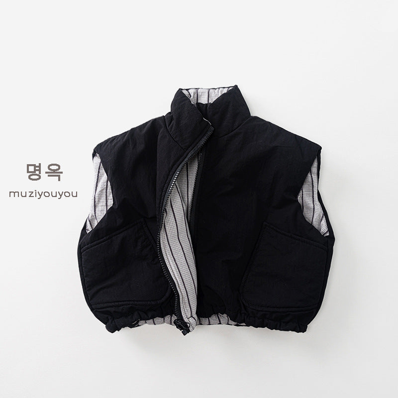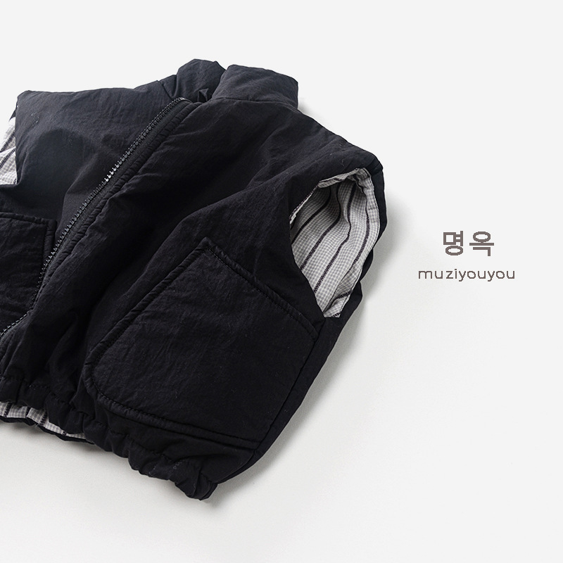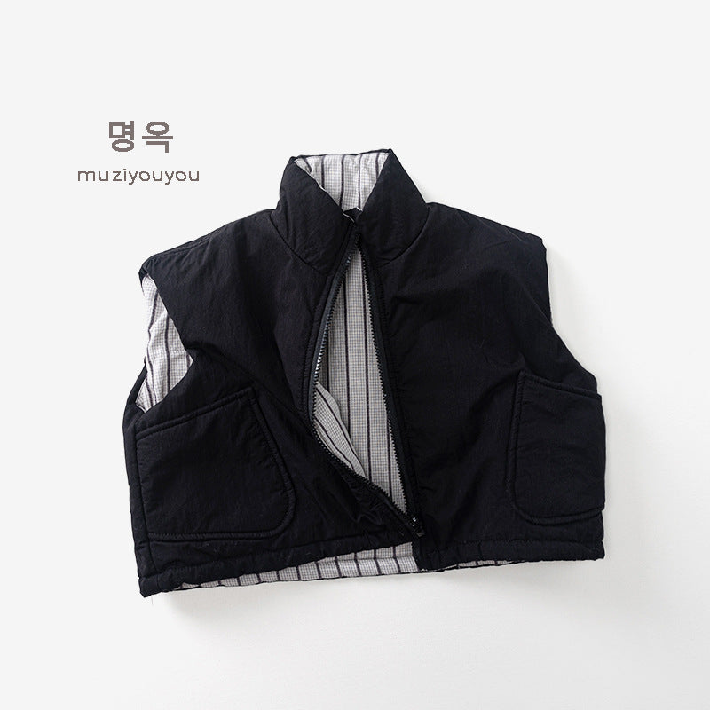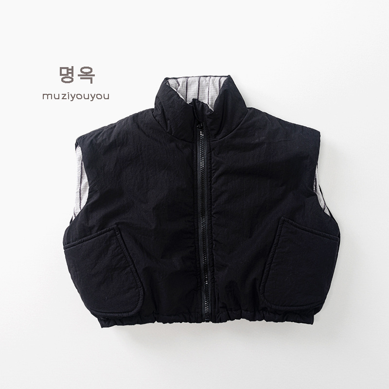 25226SE-冬季韓版個性兩面穿夾棉拉鍊馬甲背心