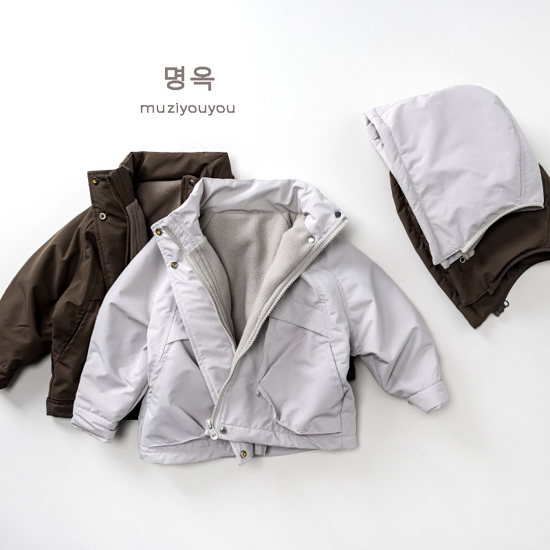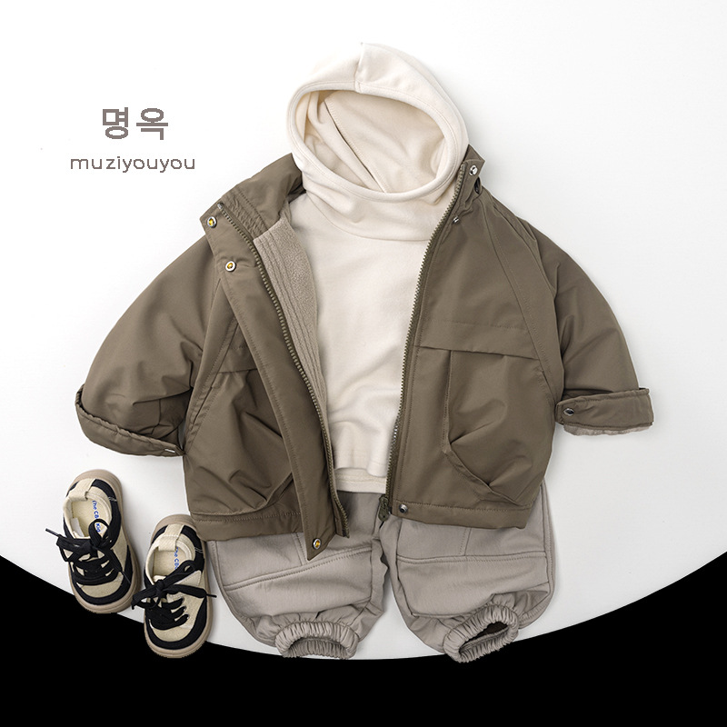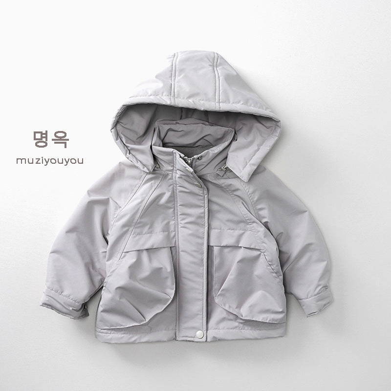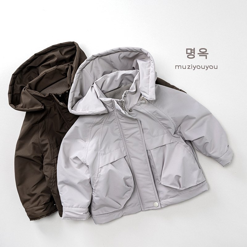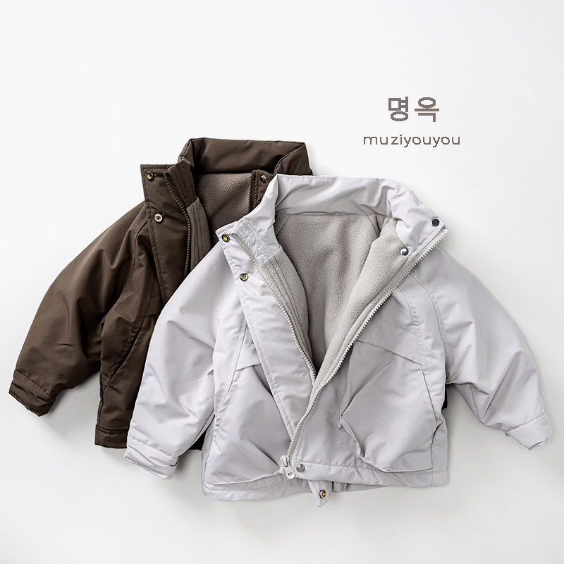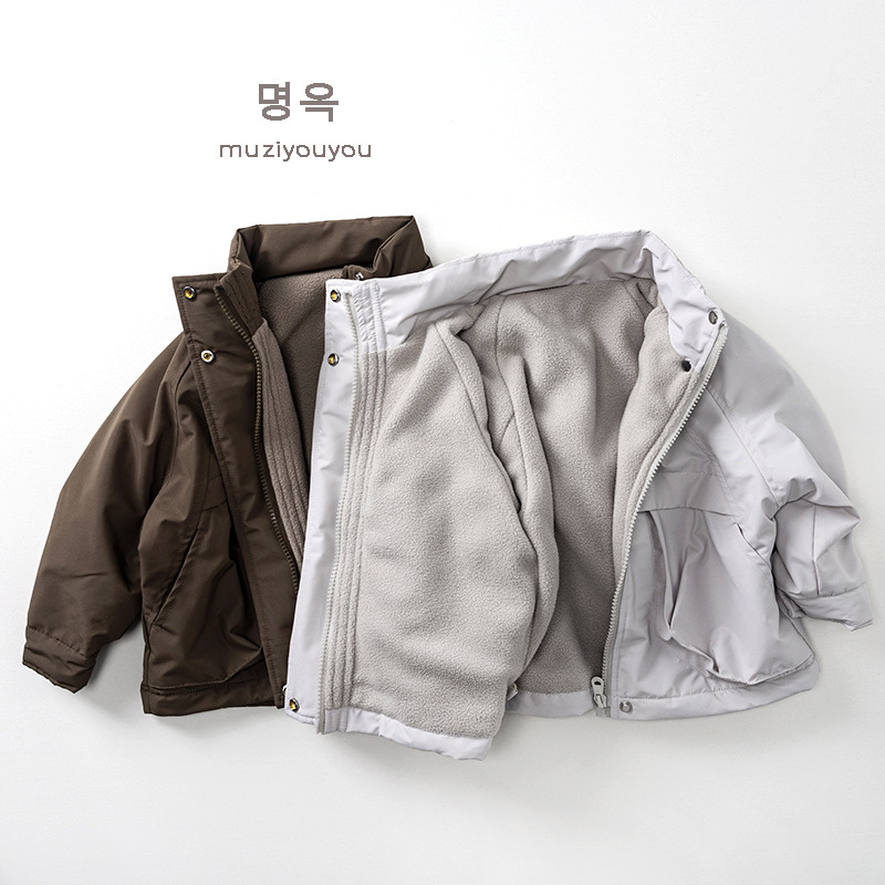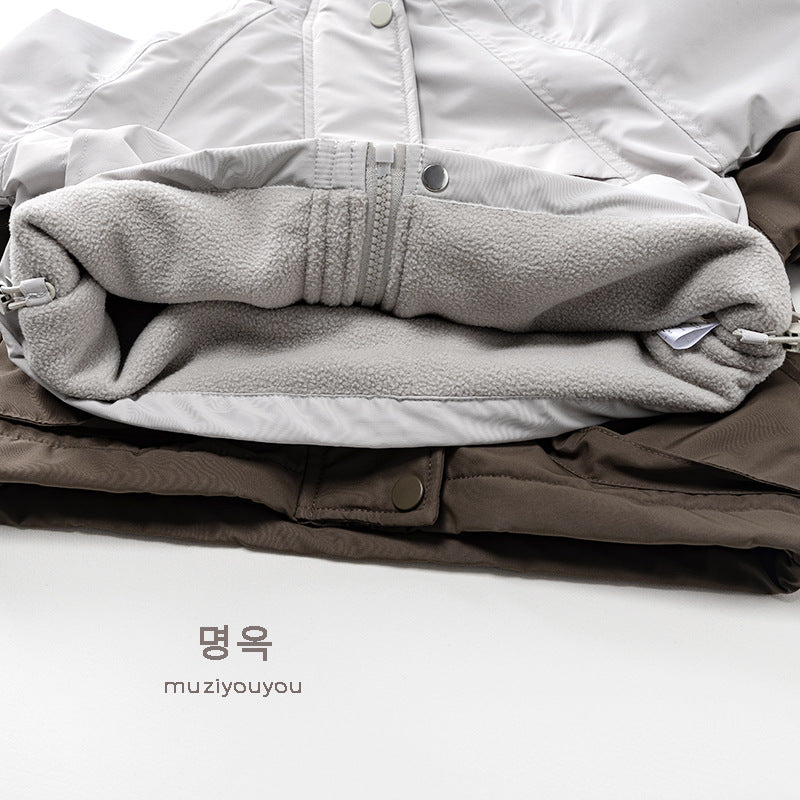 25233SE-冬季兒童加絨拉鍊可拆帽戶外衝鋒衣